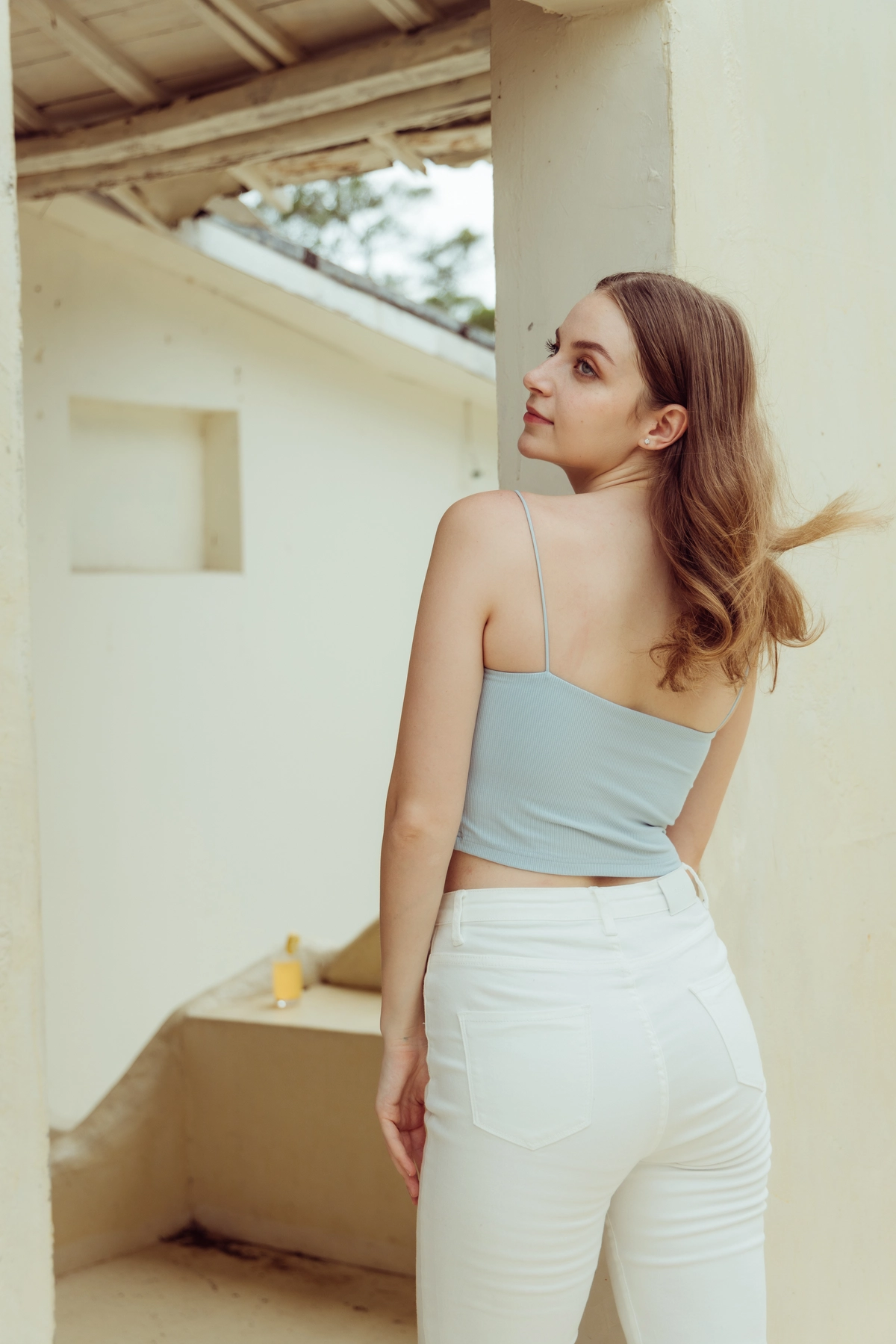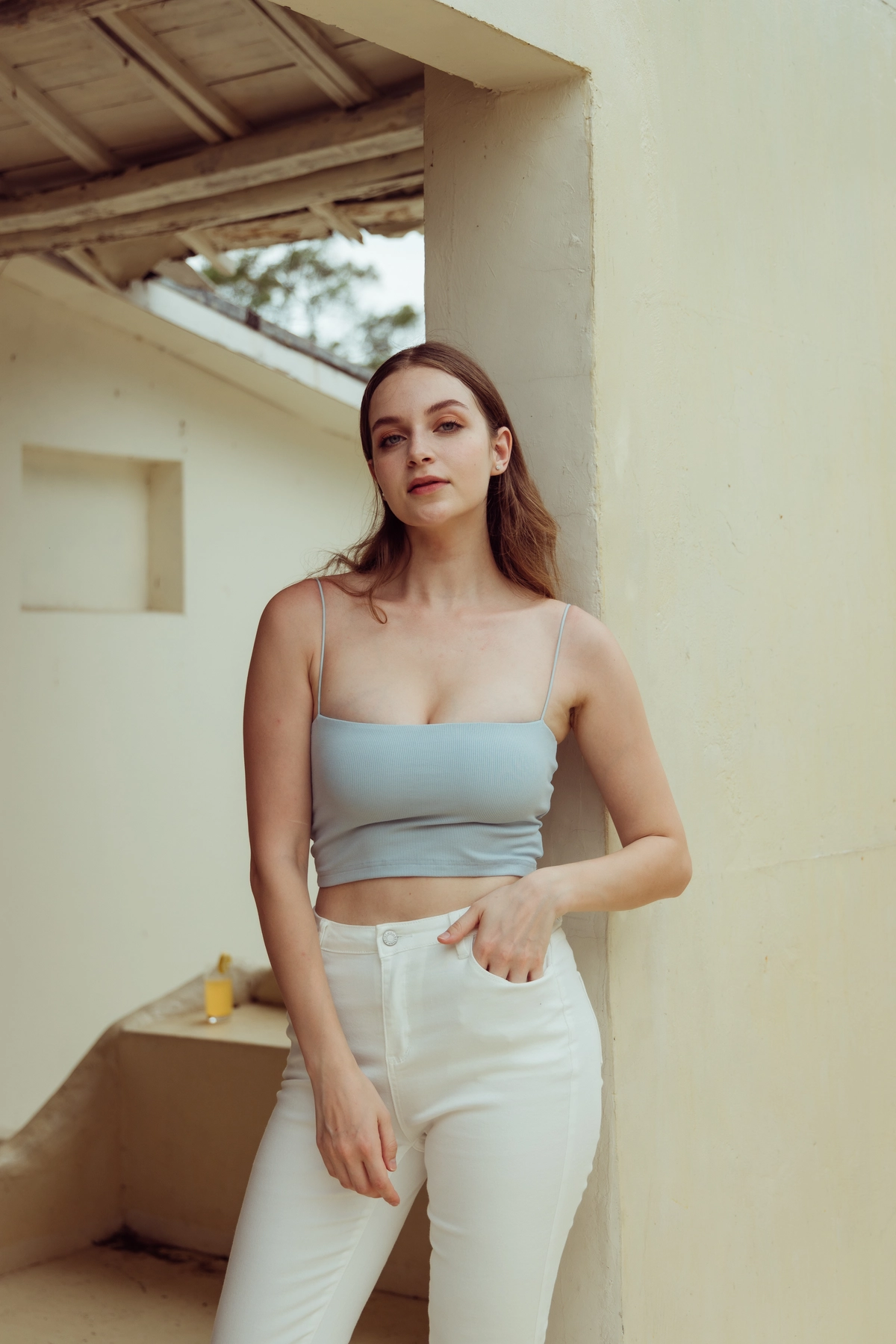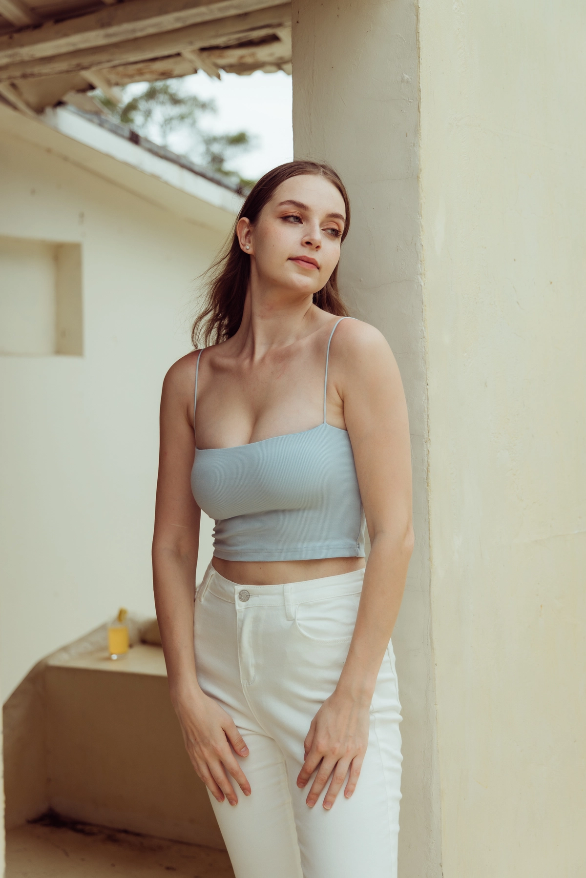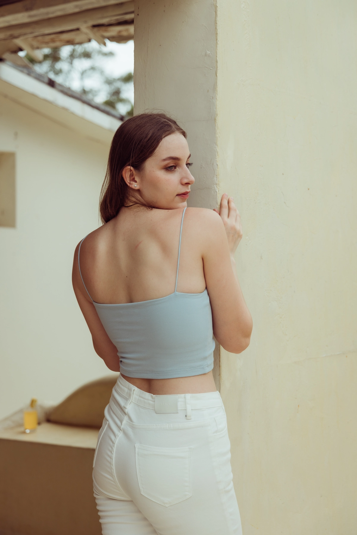 極細肩坑條平口Bra Top-寶寶藍