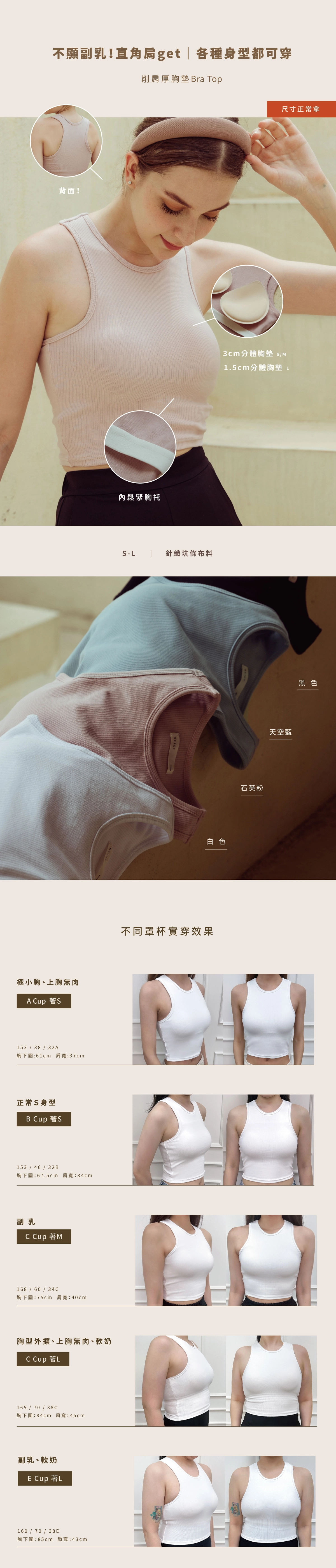 BRA TOP尺寸選購除了要參考罩杯外也需參考身高、體重