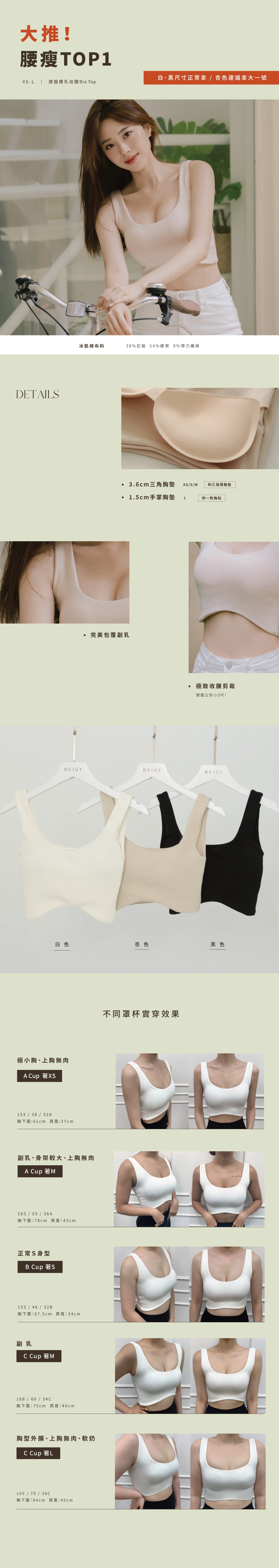 BRA TOP尺寸選購除了要參考罩杯外也需參考身高、體重