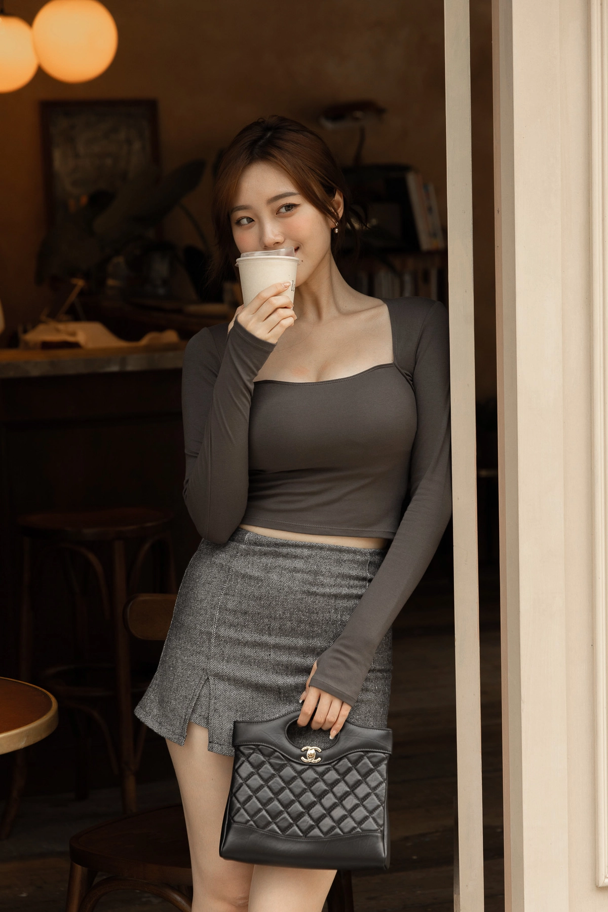 ▲為呈現胸型集中效果,本品牌版型較貼身。