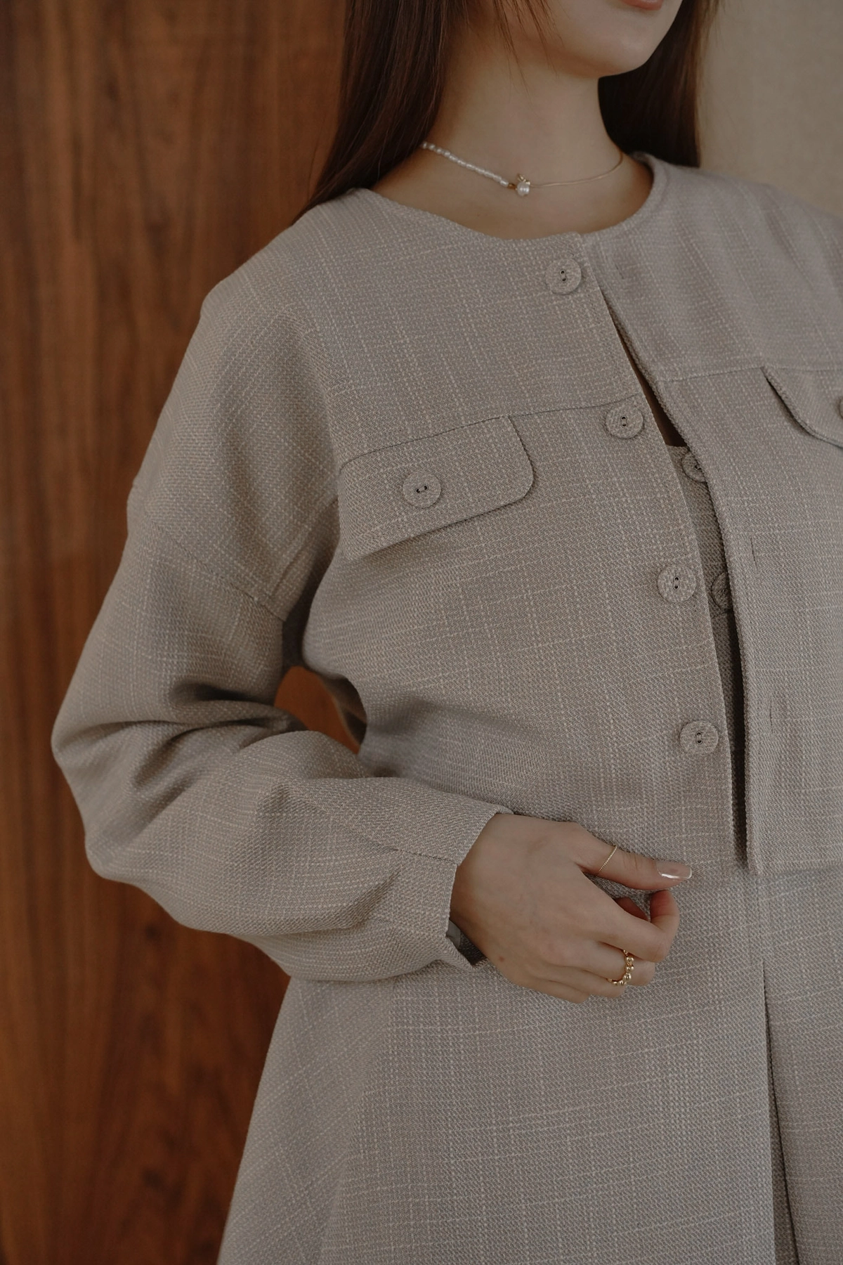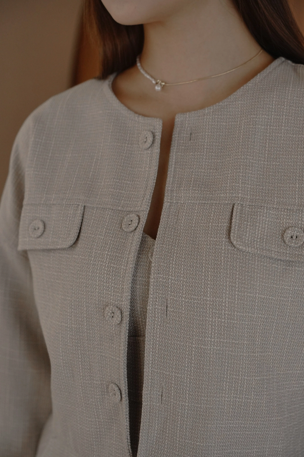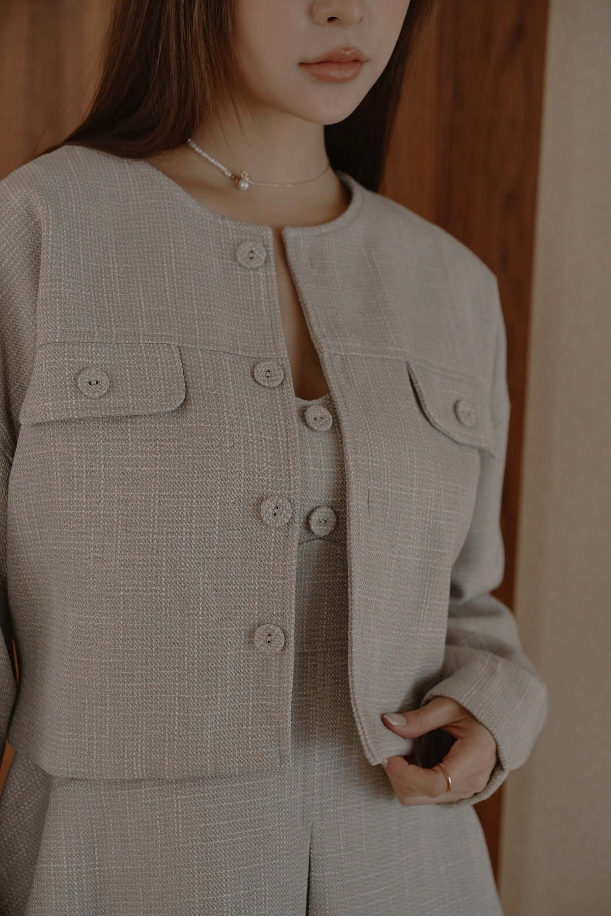 小香花呢無領短版外套-灰