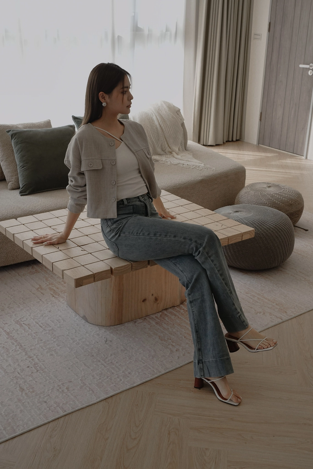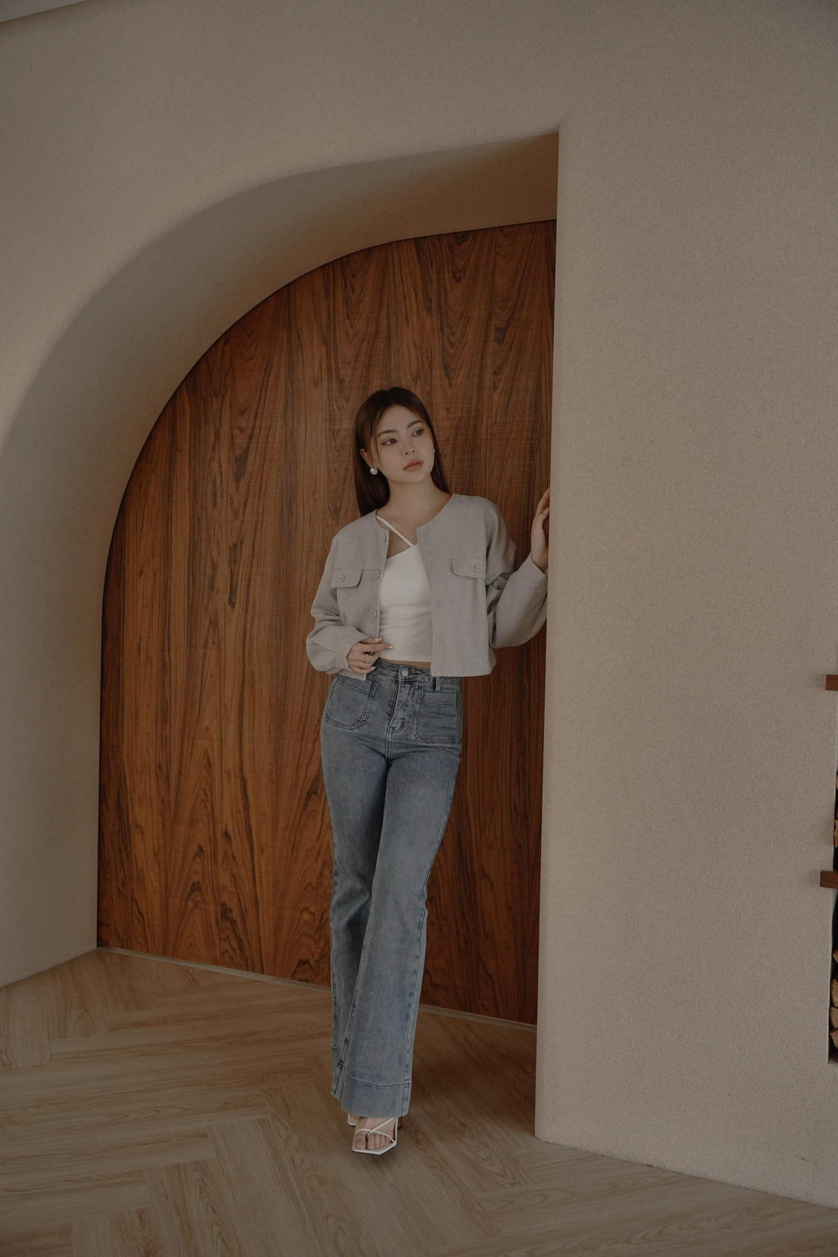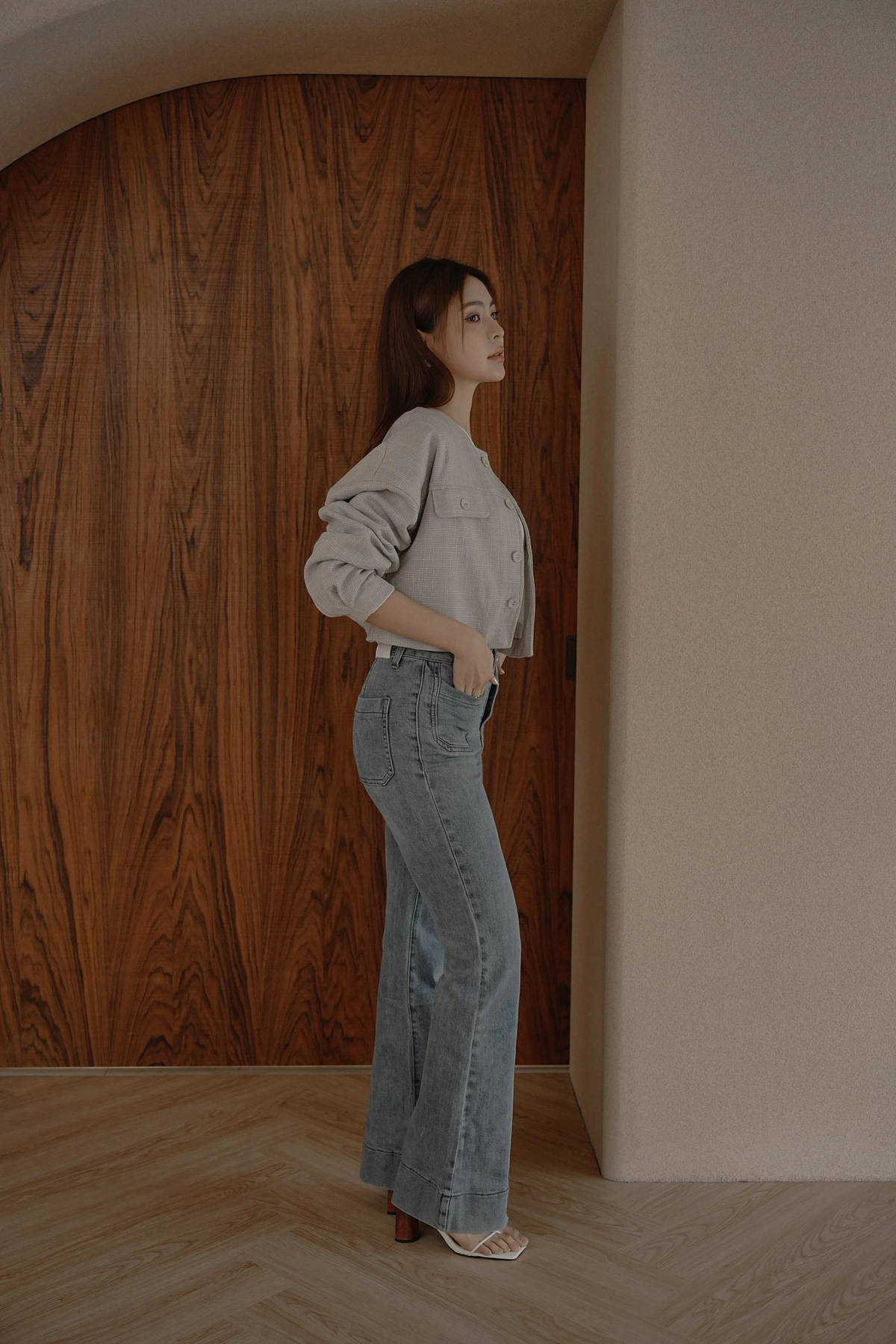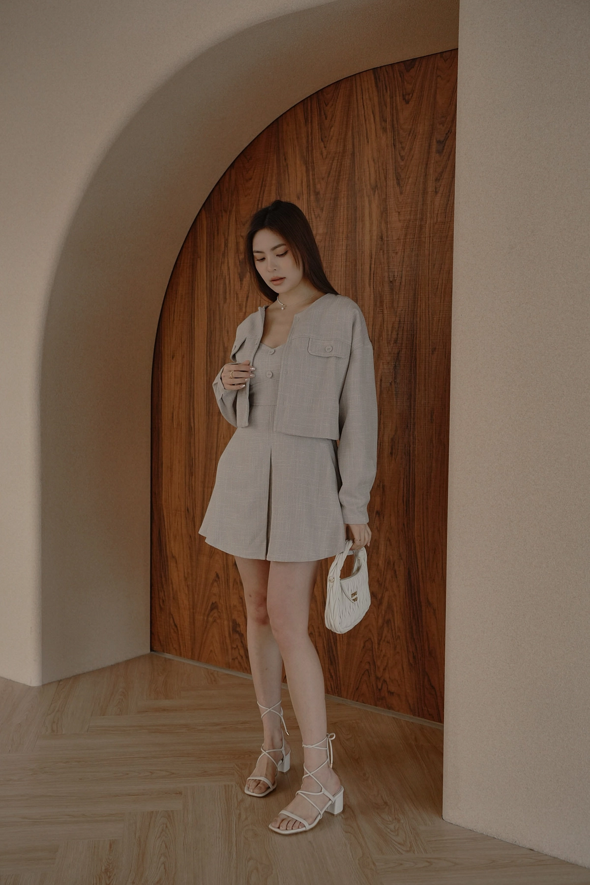 小香花呢無領短版外套-灰