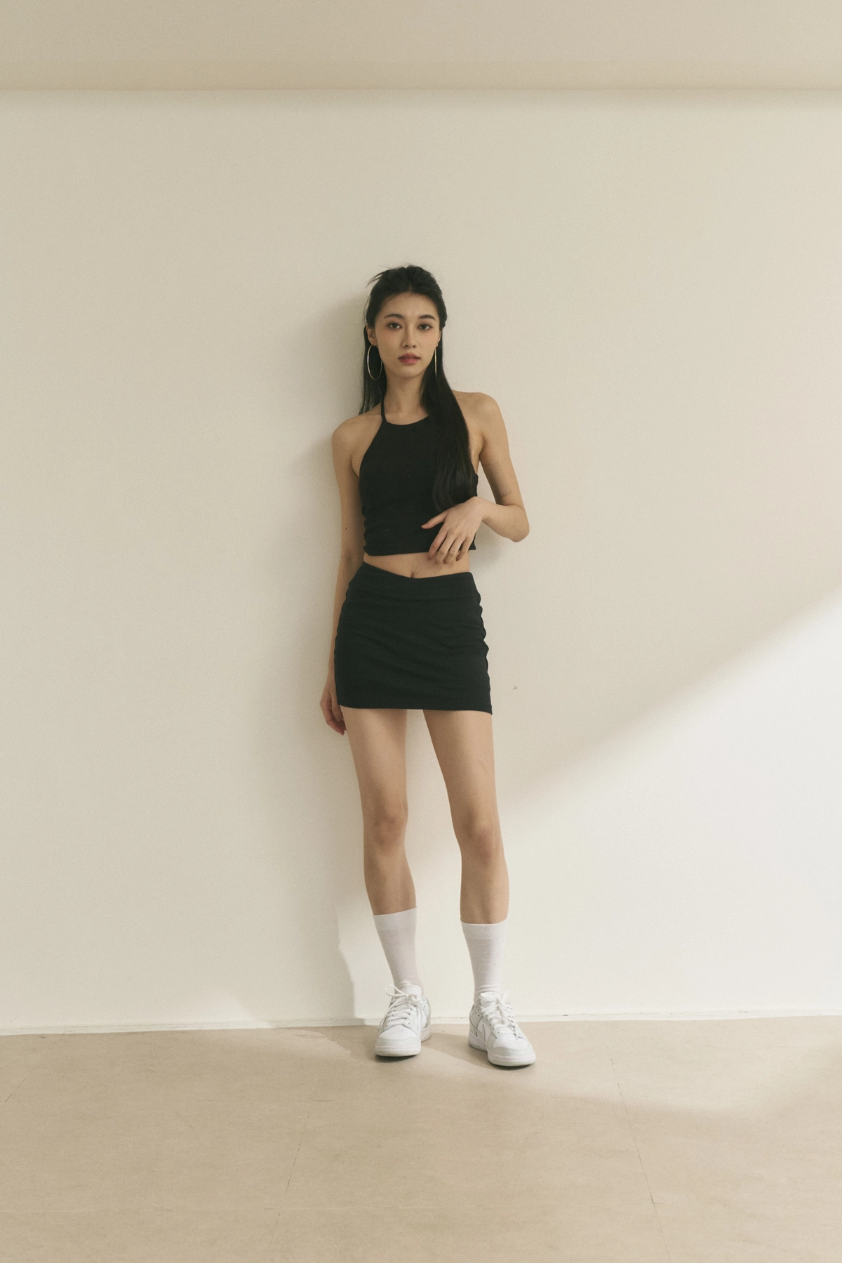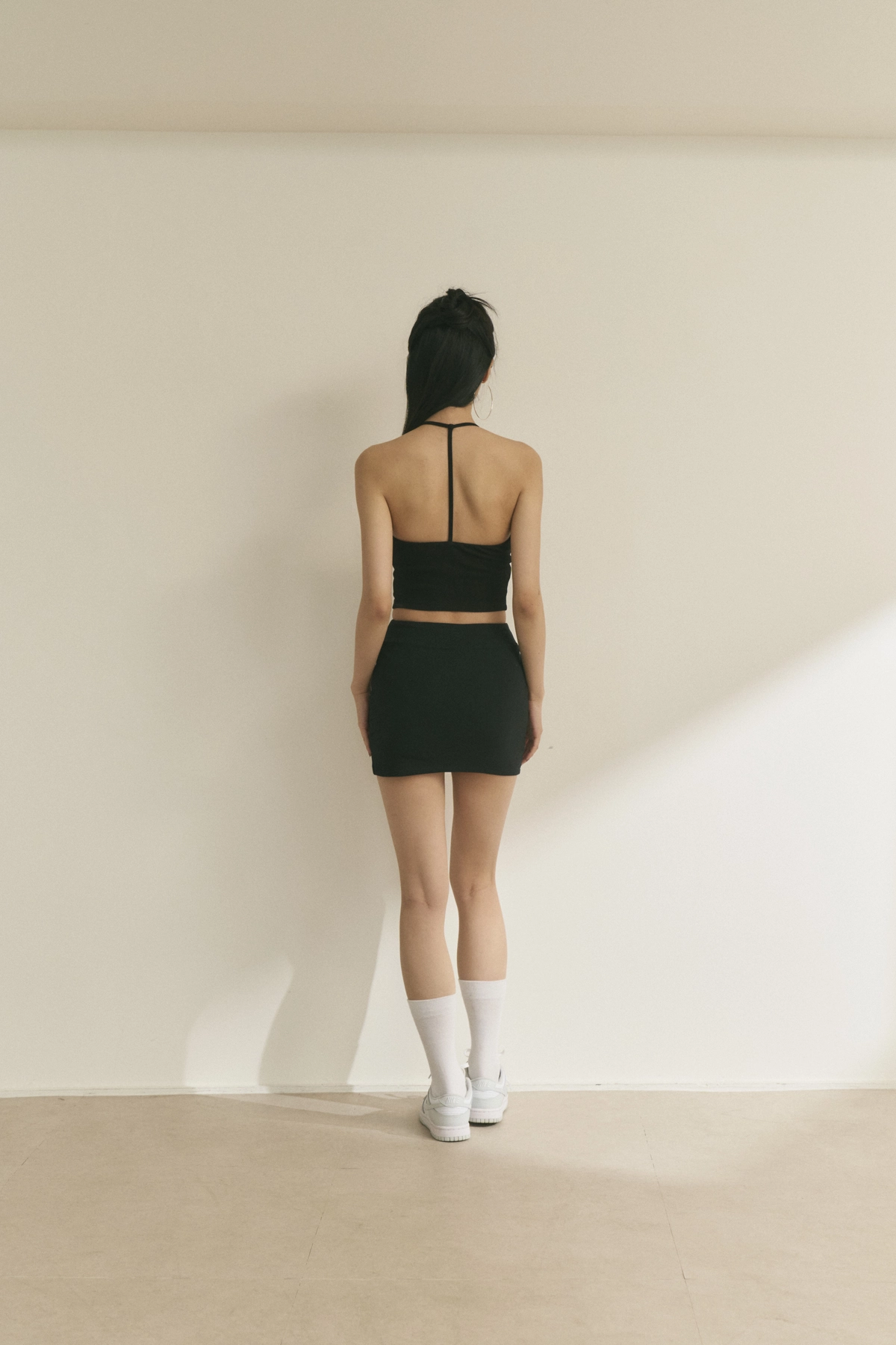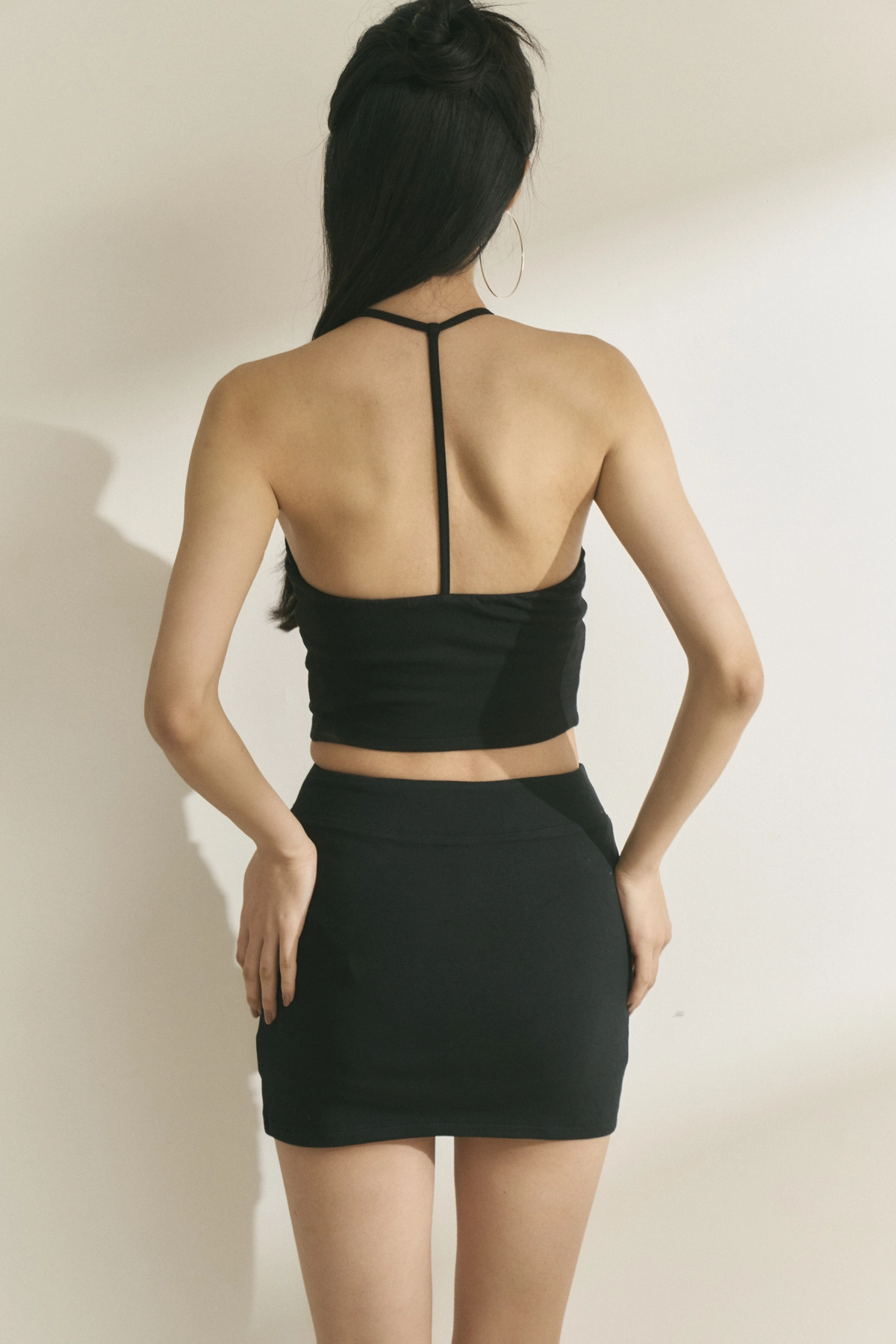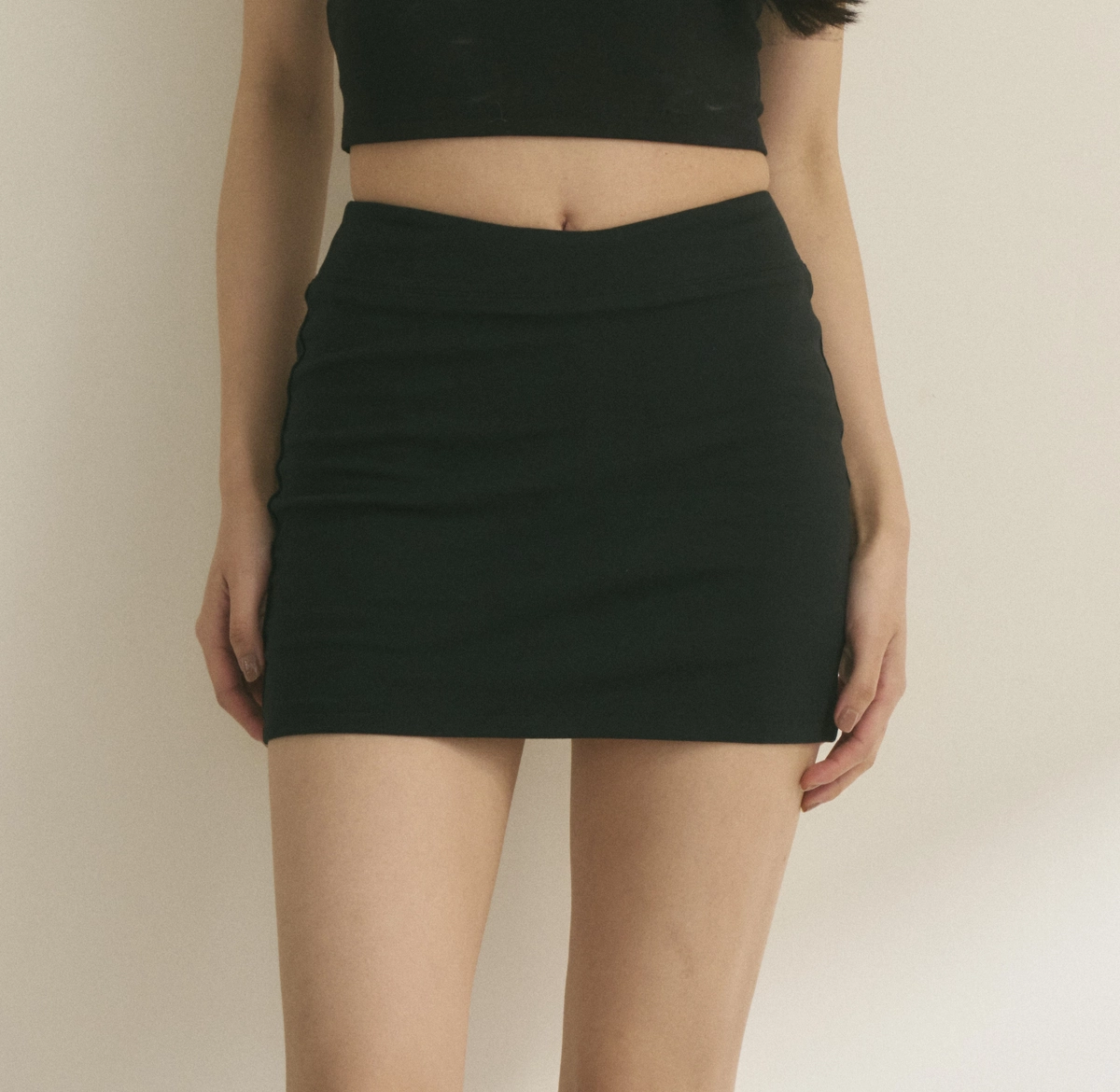 V型腰瘦彈力貼身短褲裙-黑