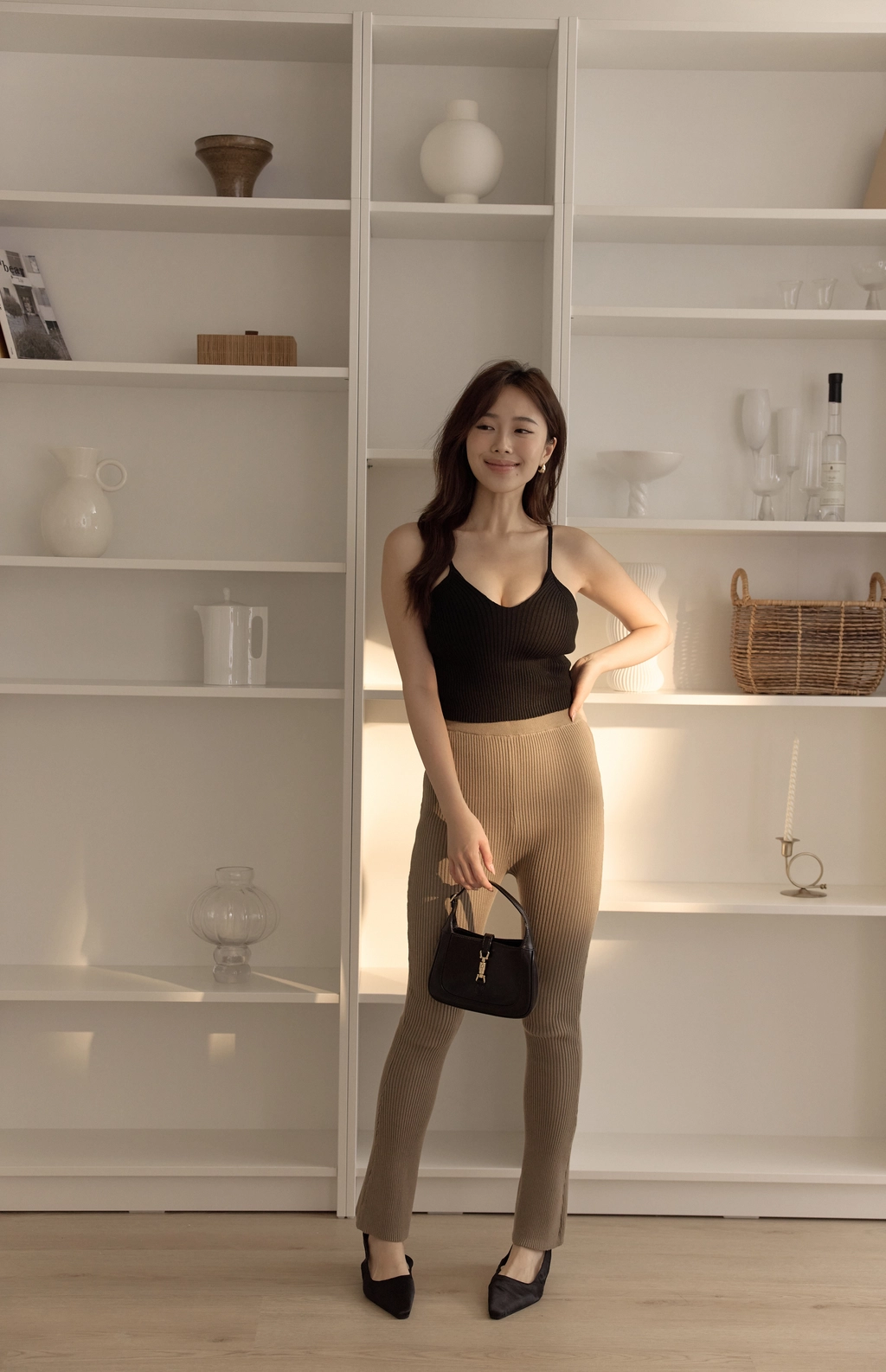 質感針織瘦瘦褲-咖