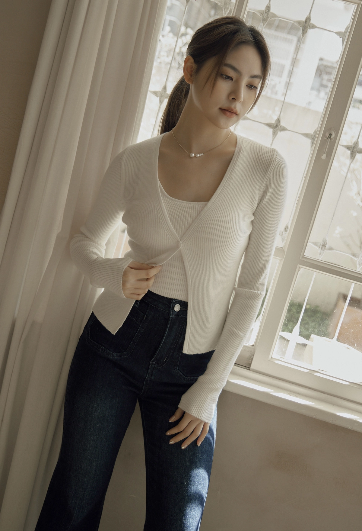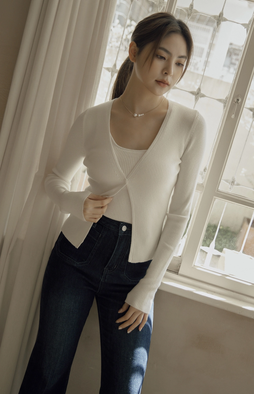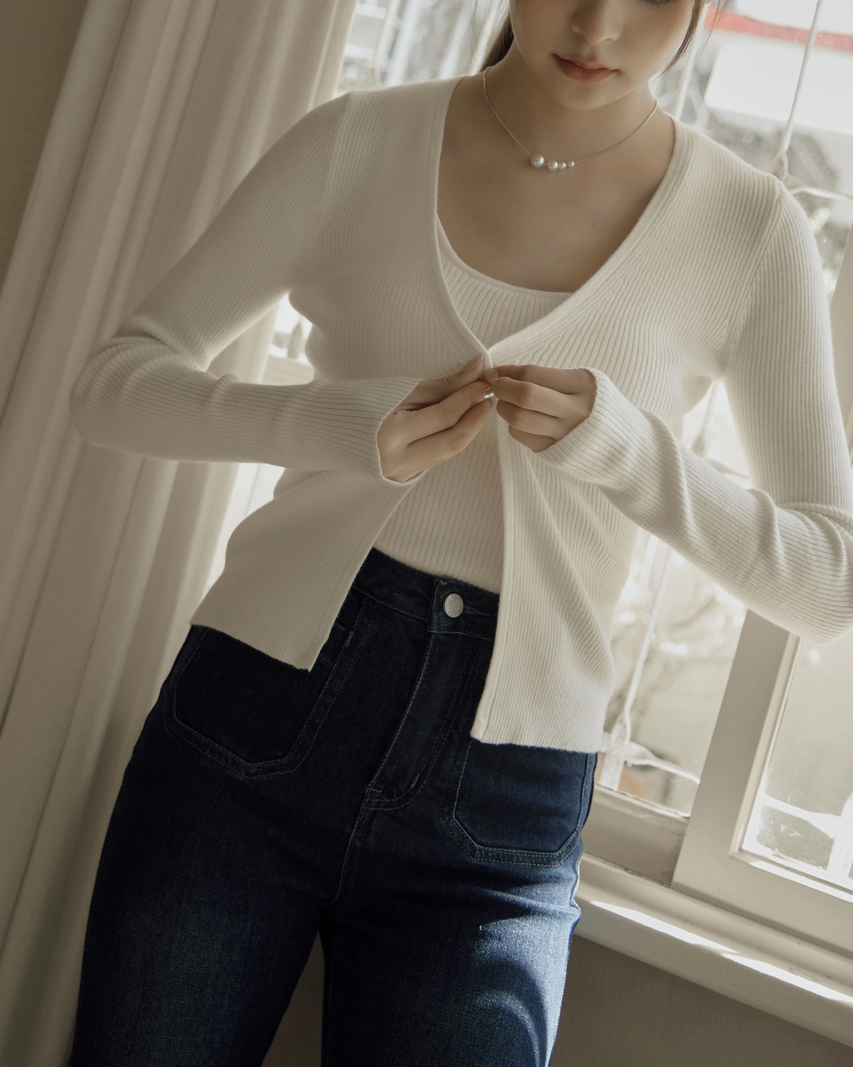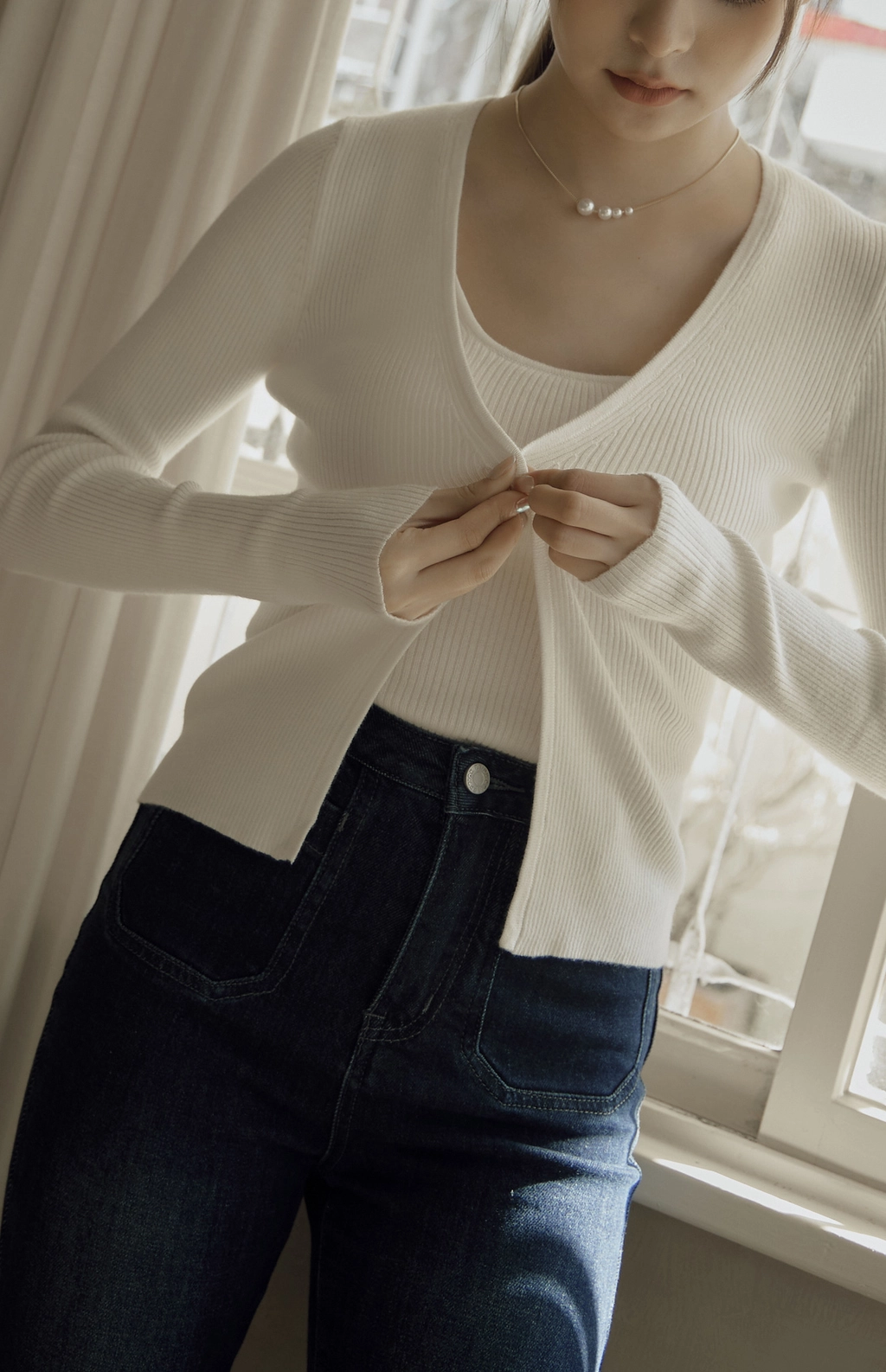 日常開襟針織外套-白