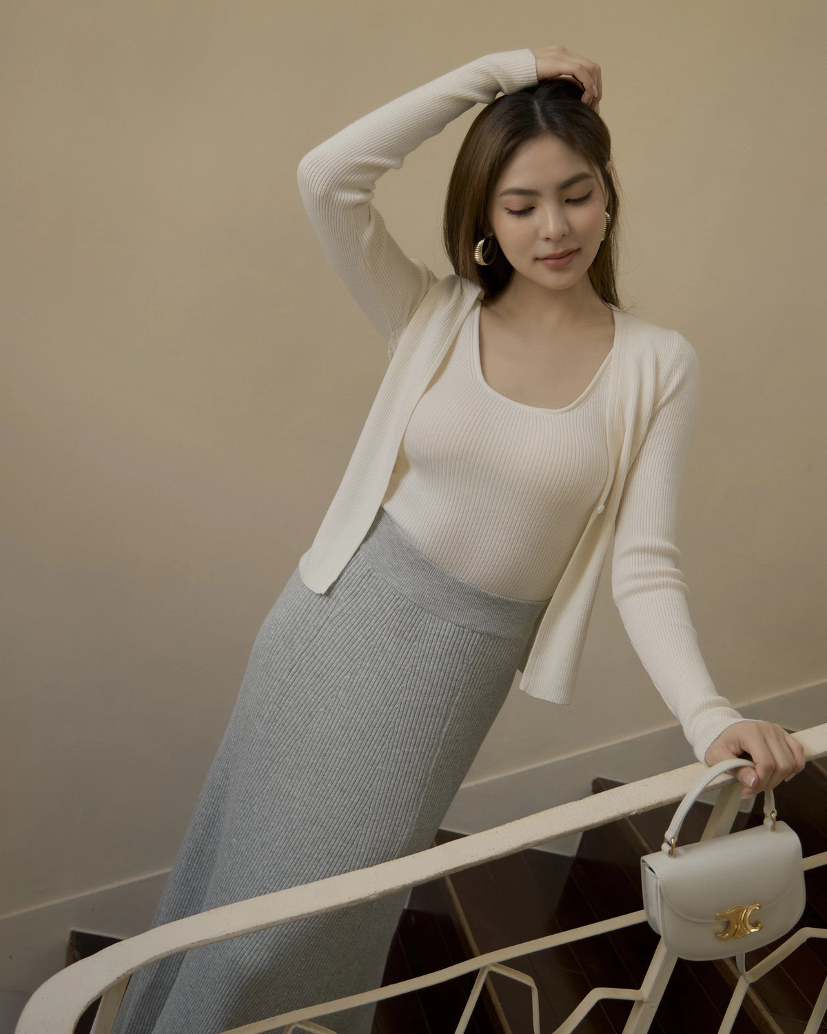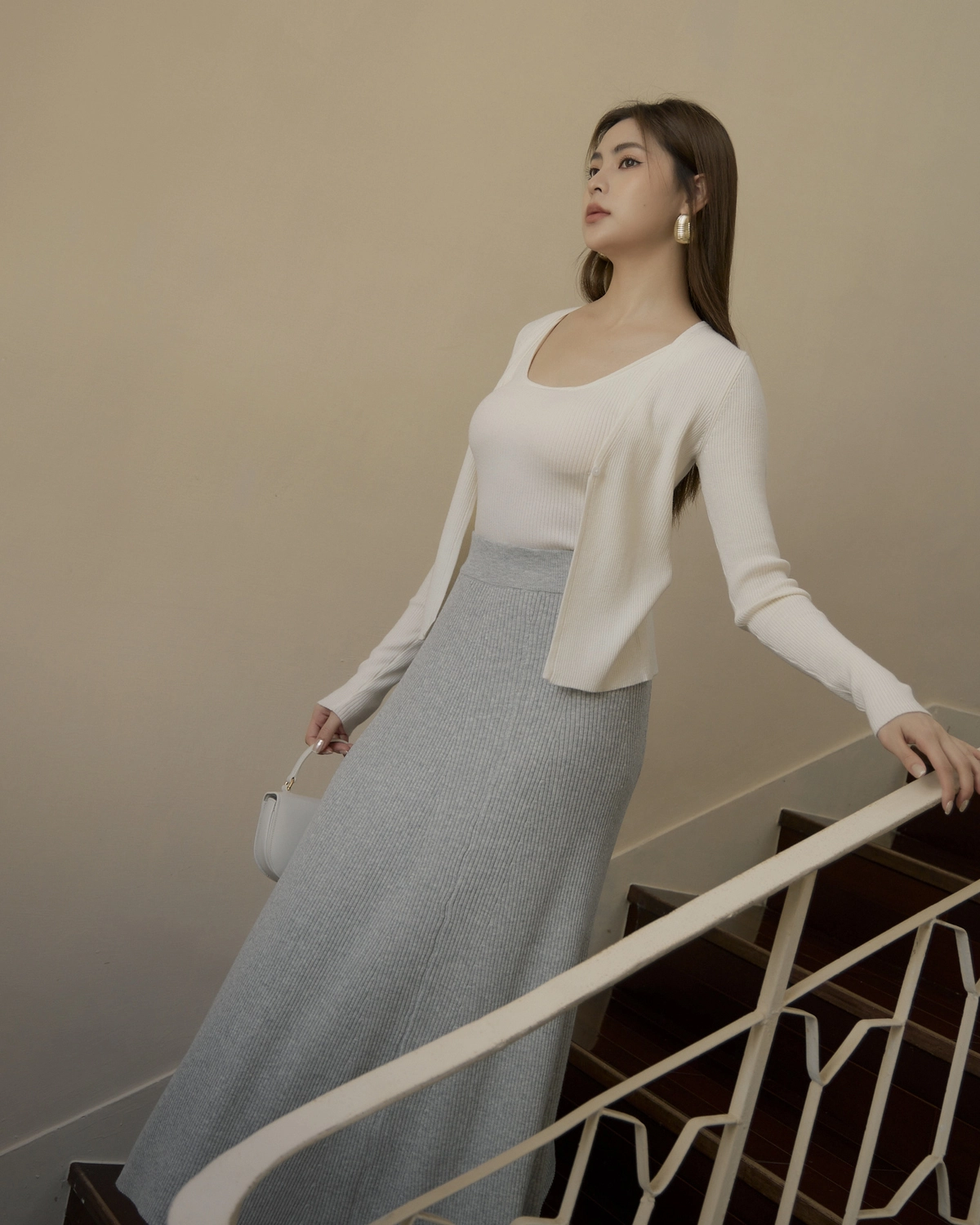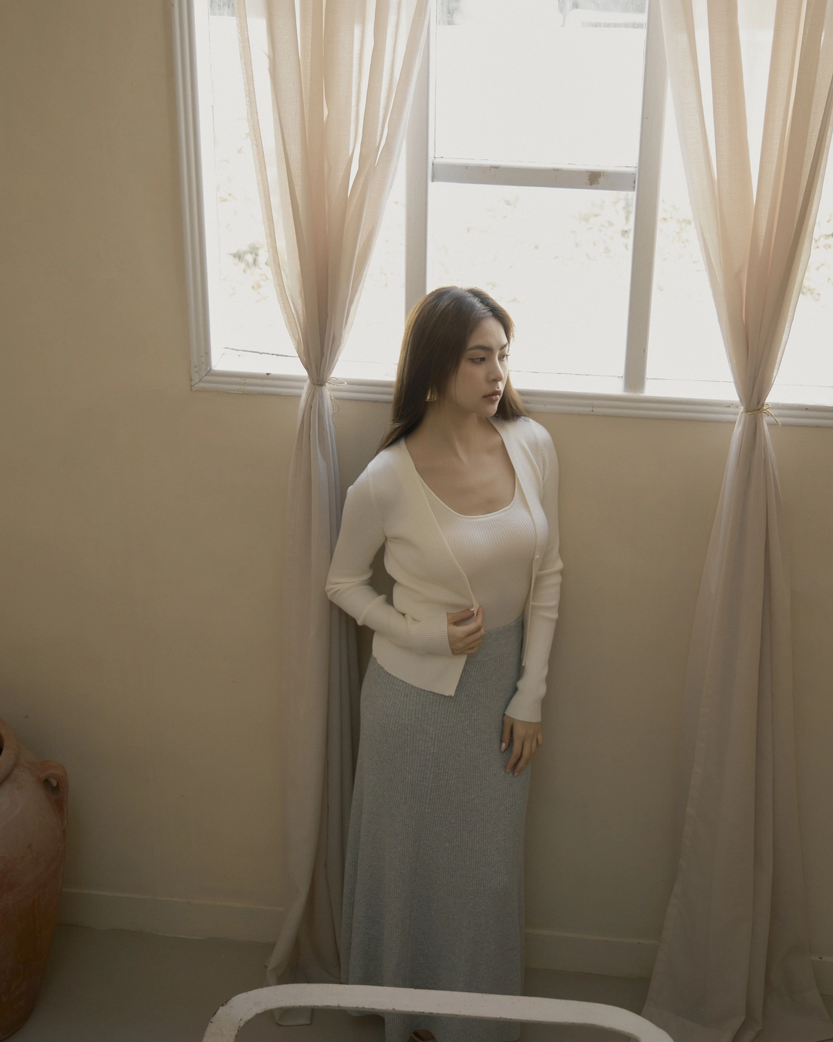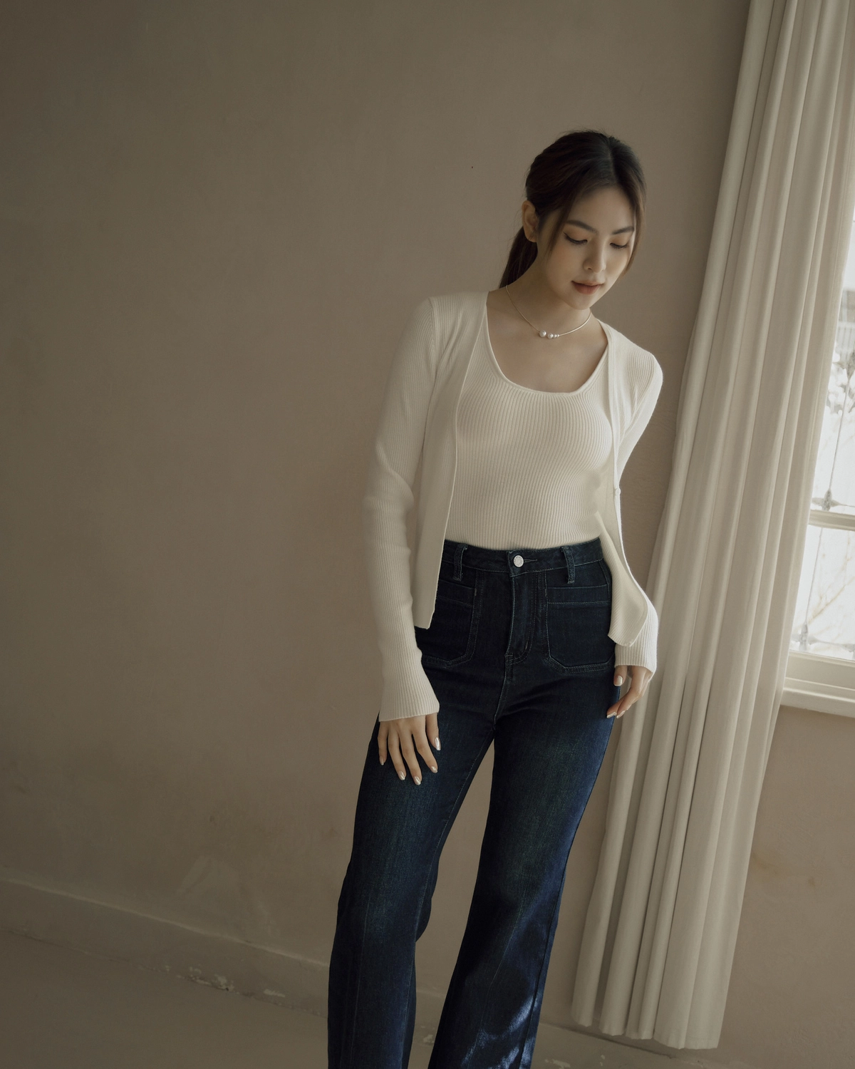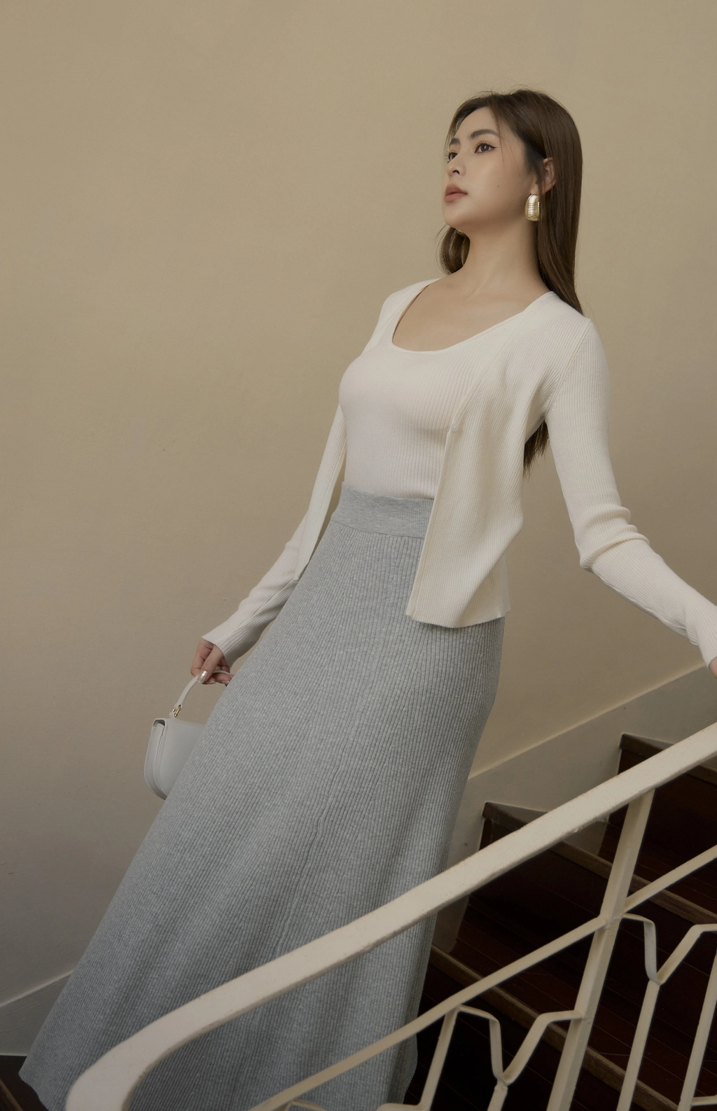 日常開襟針織外套-白