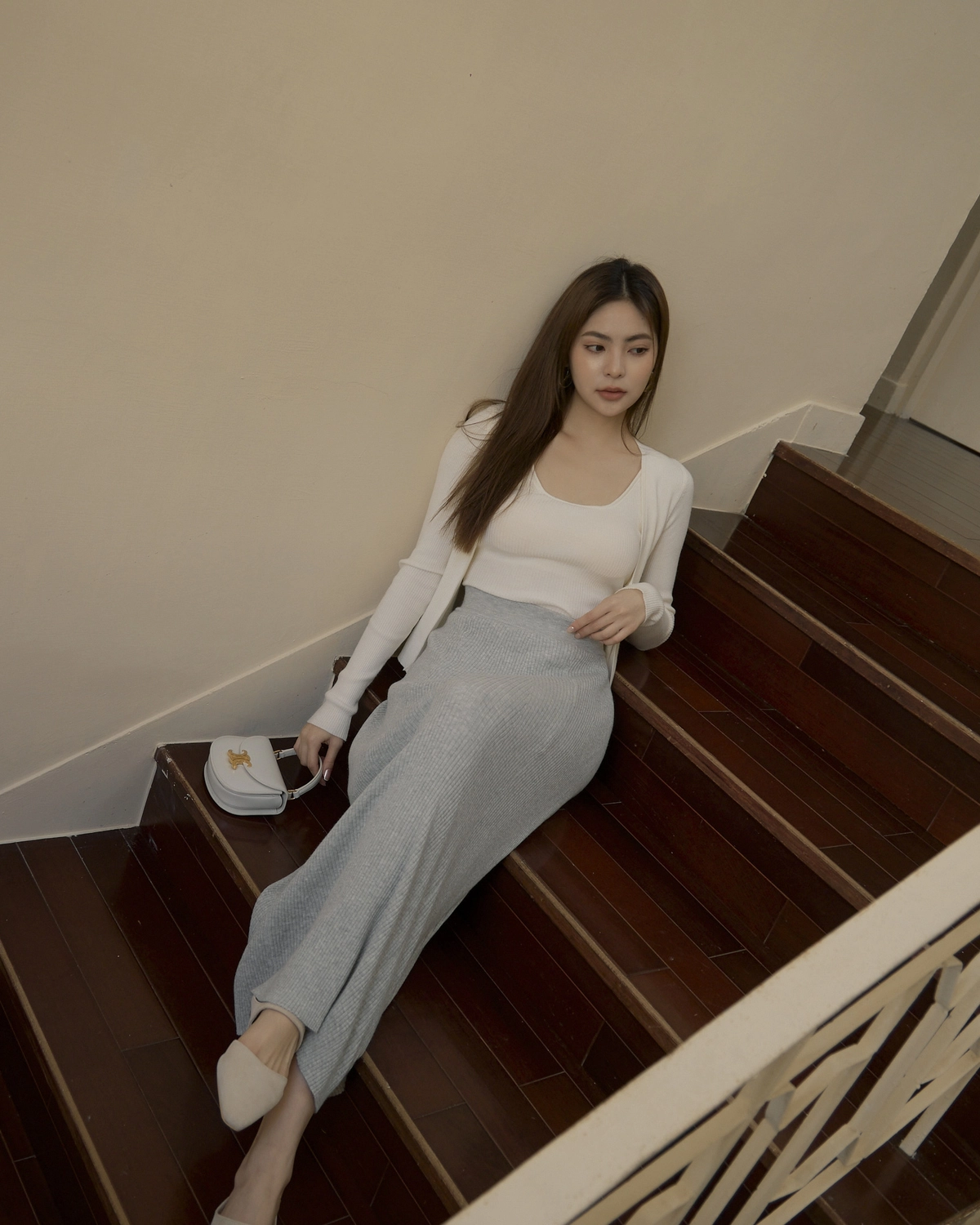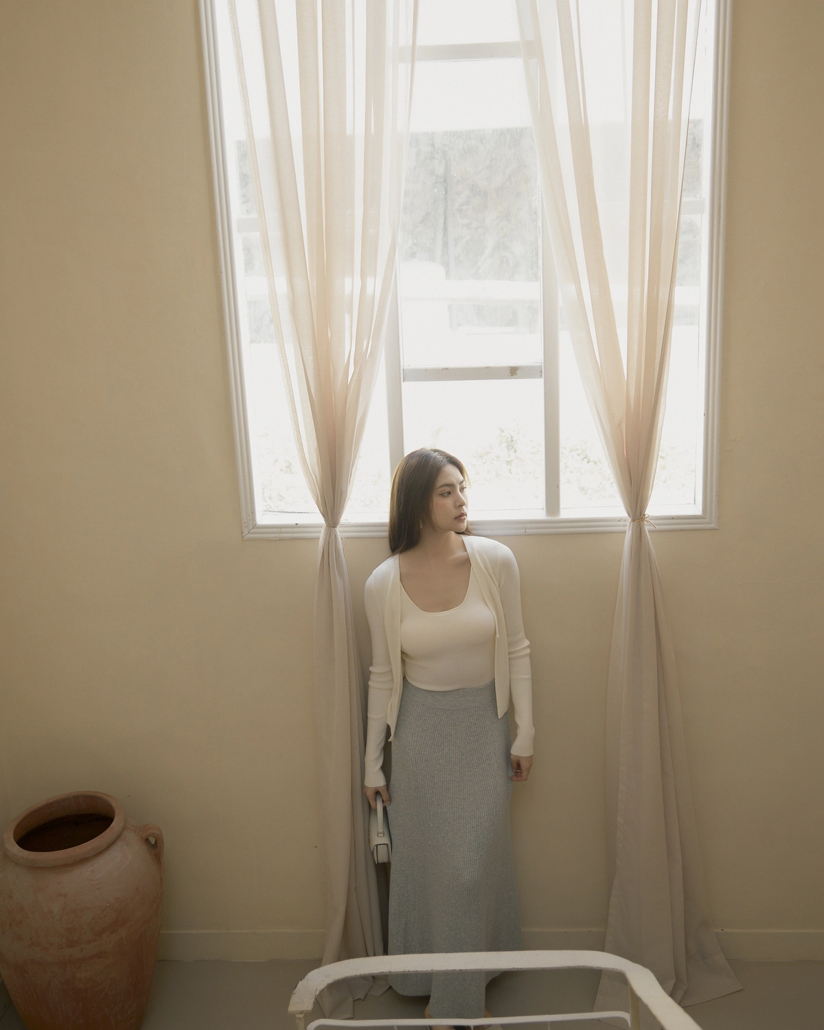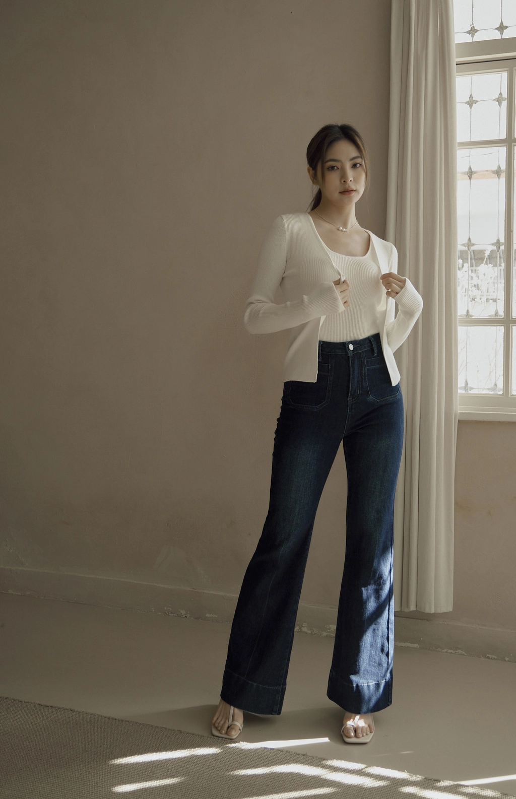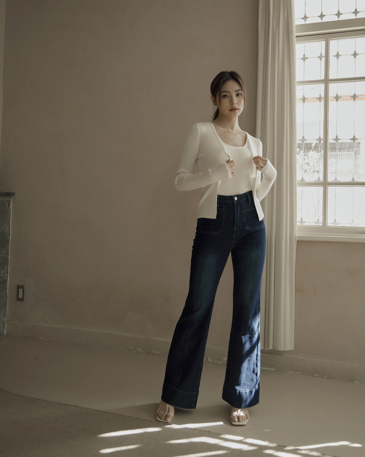 日常開襟針織外套-白