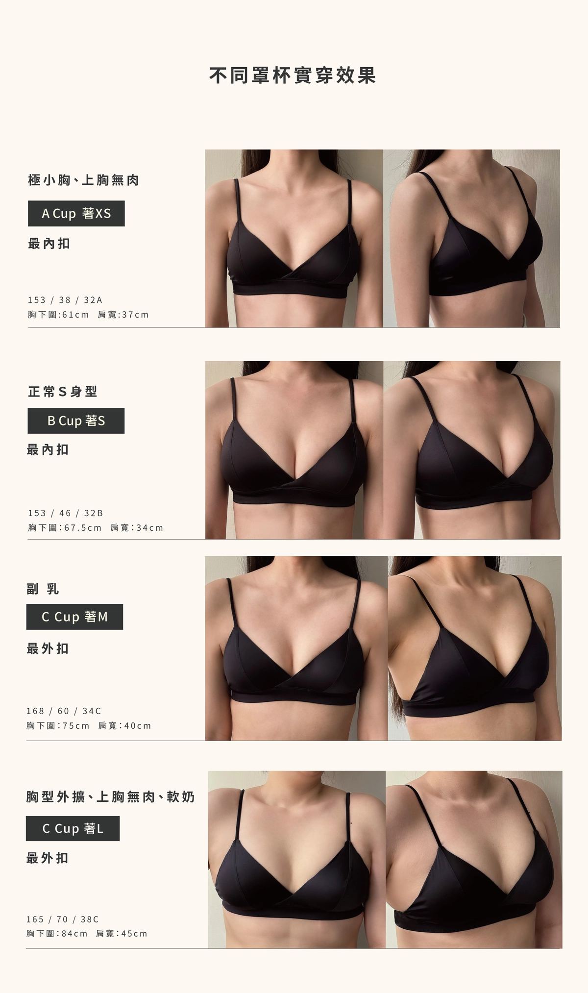 BRA TOP尺寸選購除了要參考罩杯外也需參考身高、體重