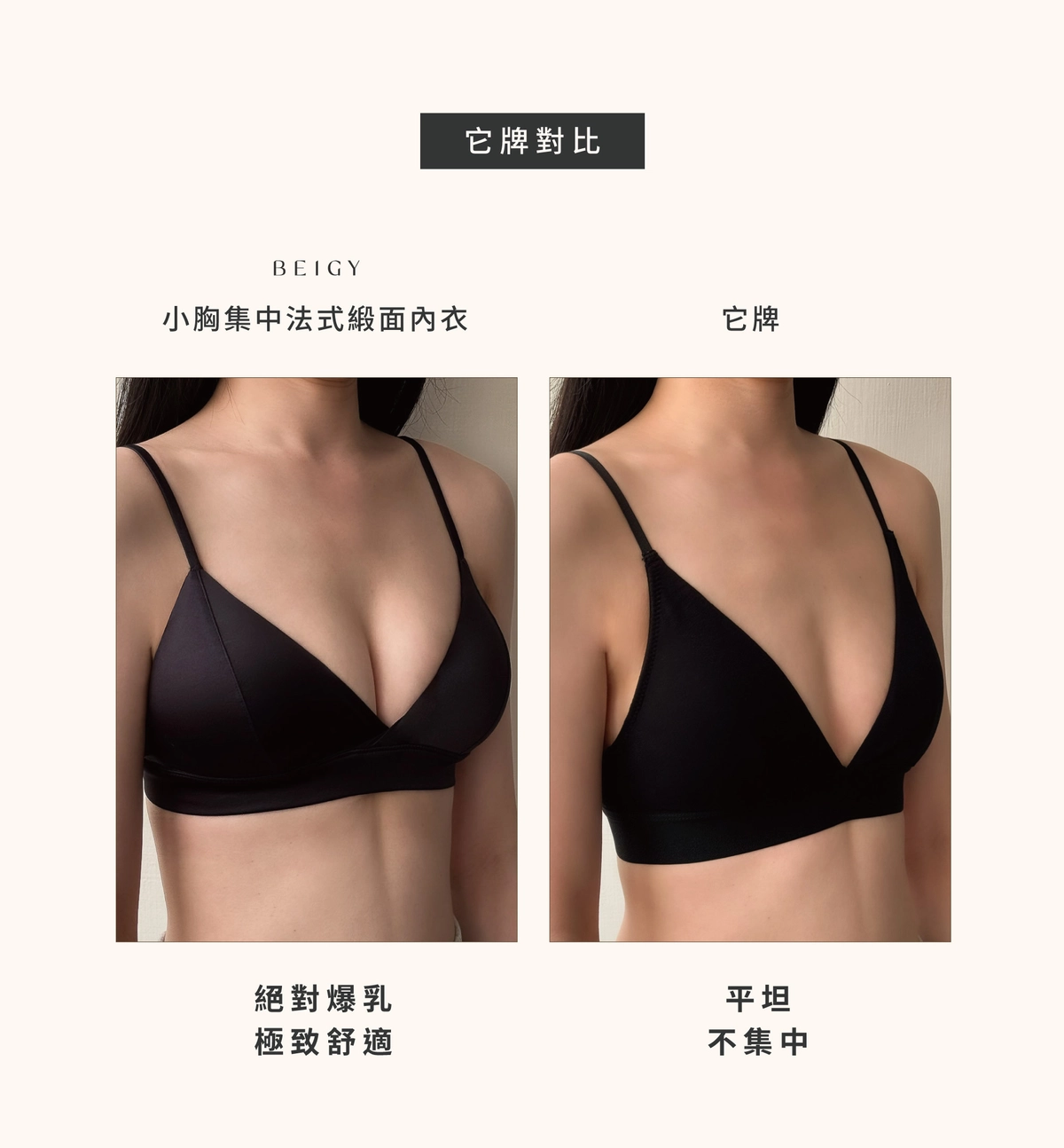 胸托下圍鬆緊設計,胸部/胸墊不易走位、下垂