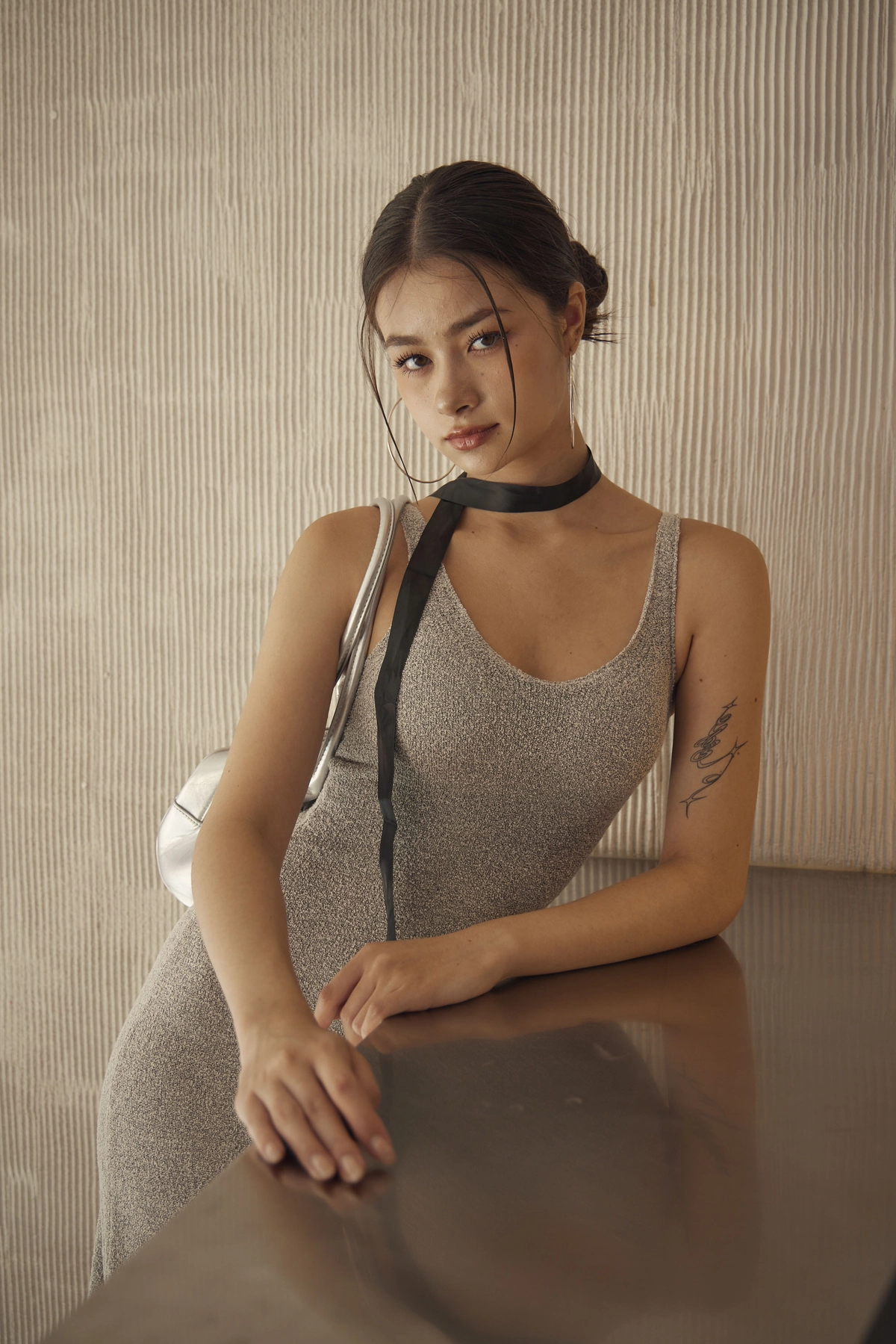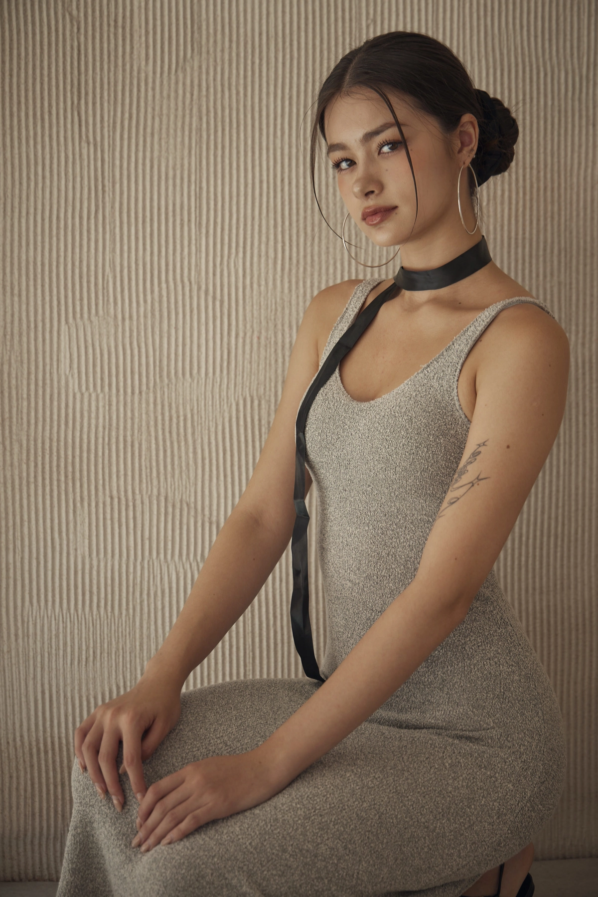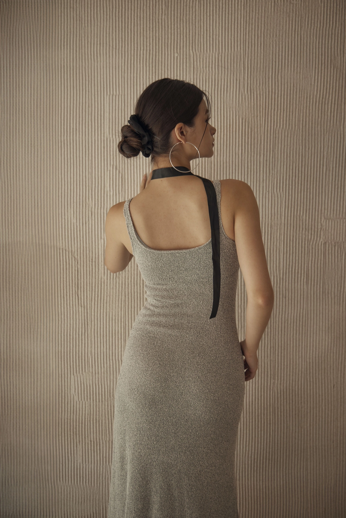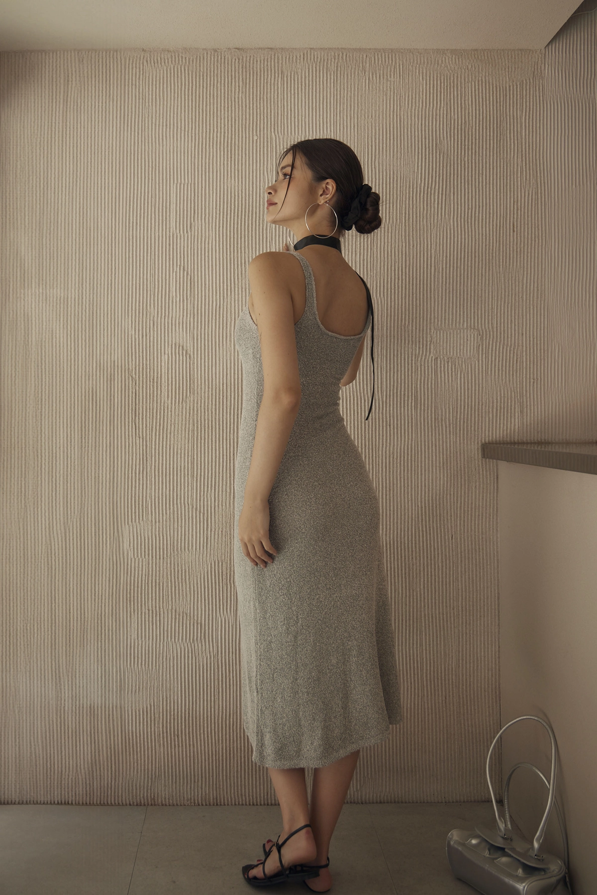超集中V領圈圈紗Bra Dress-灰