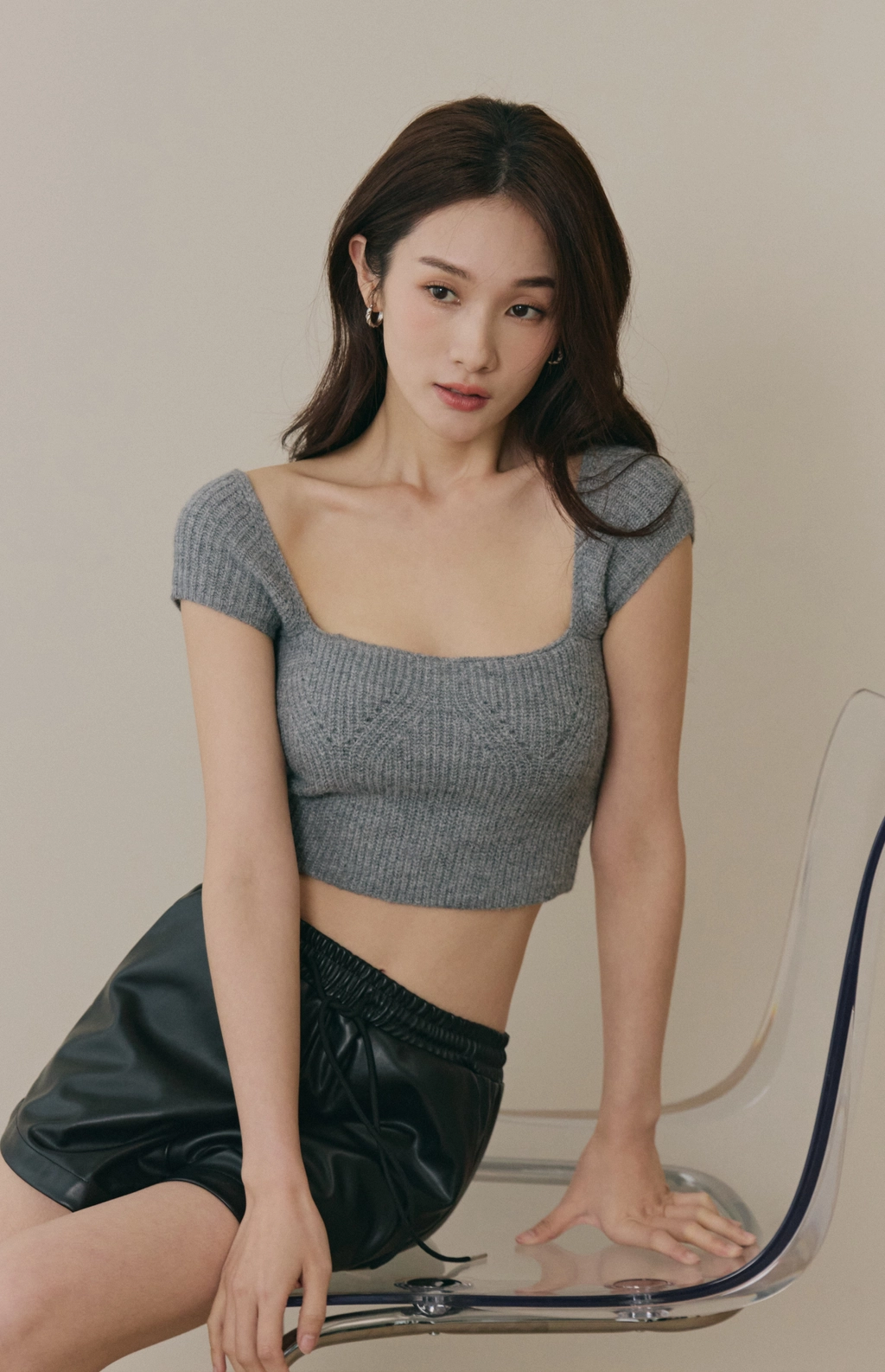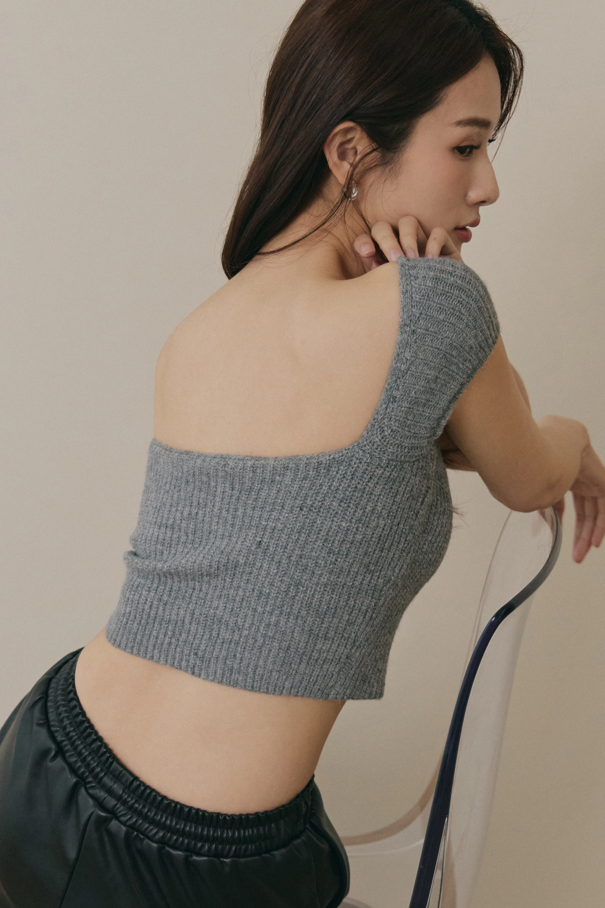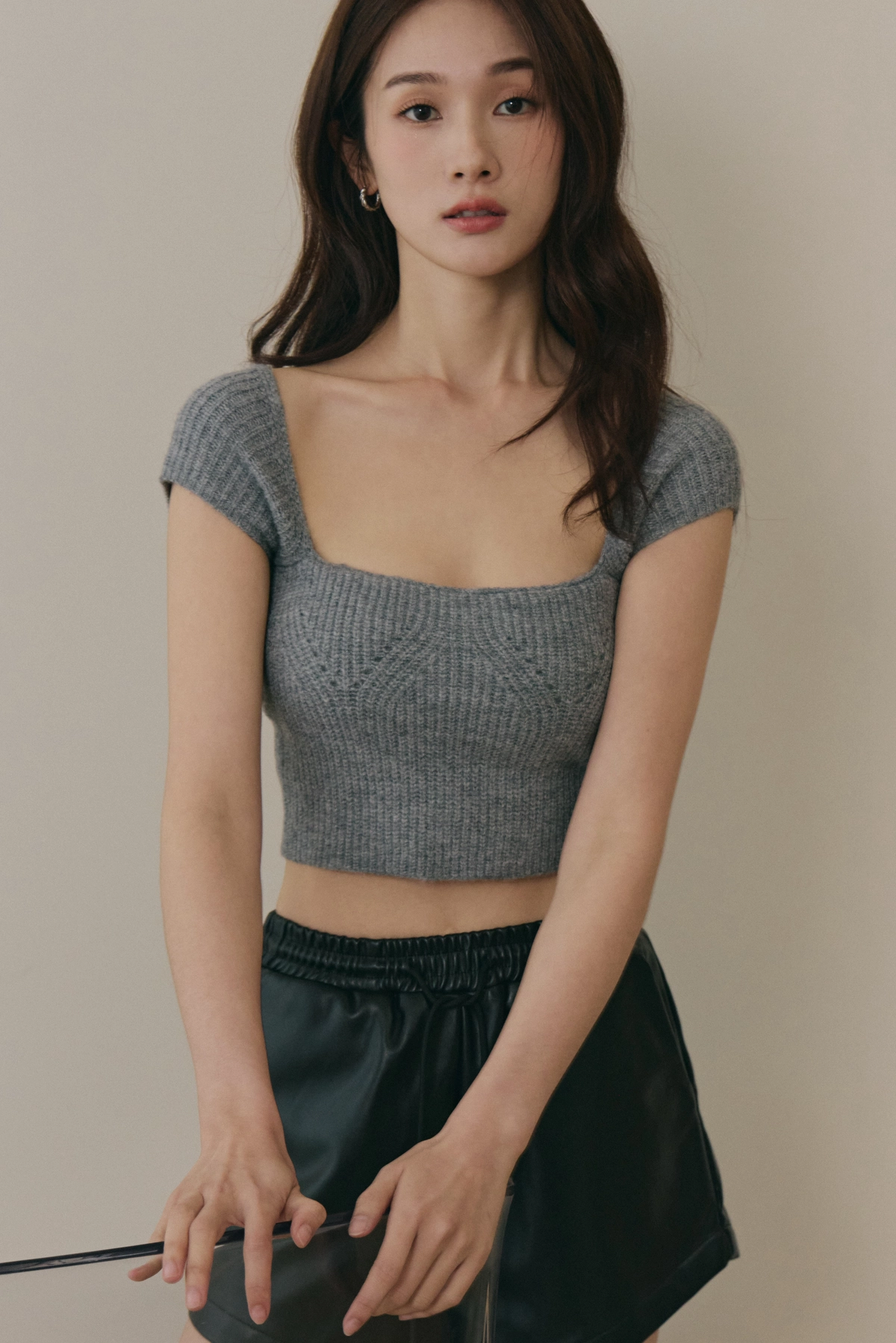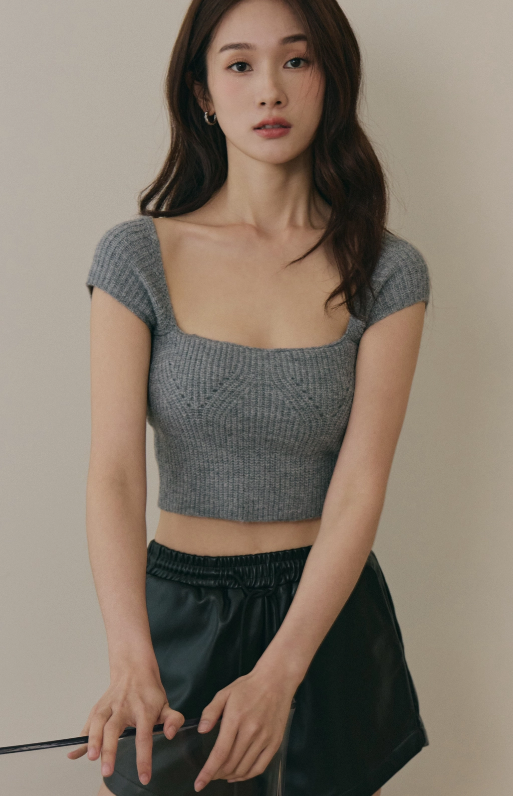 美胸方領毛織Bra Top-灰