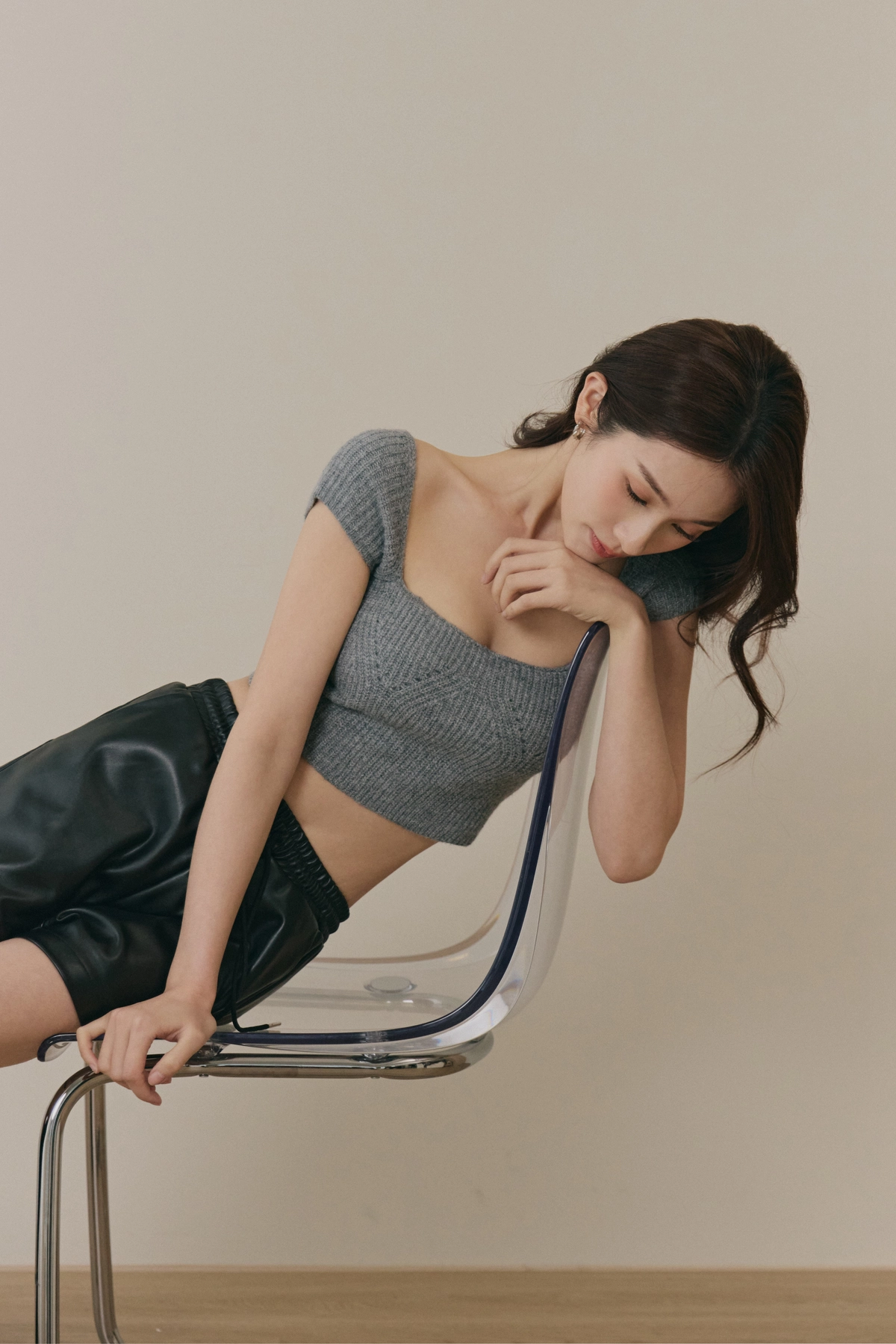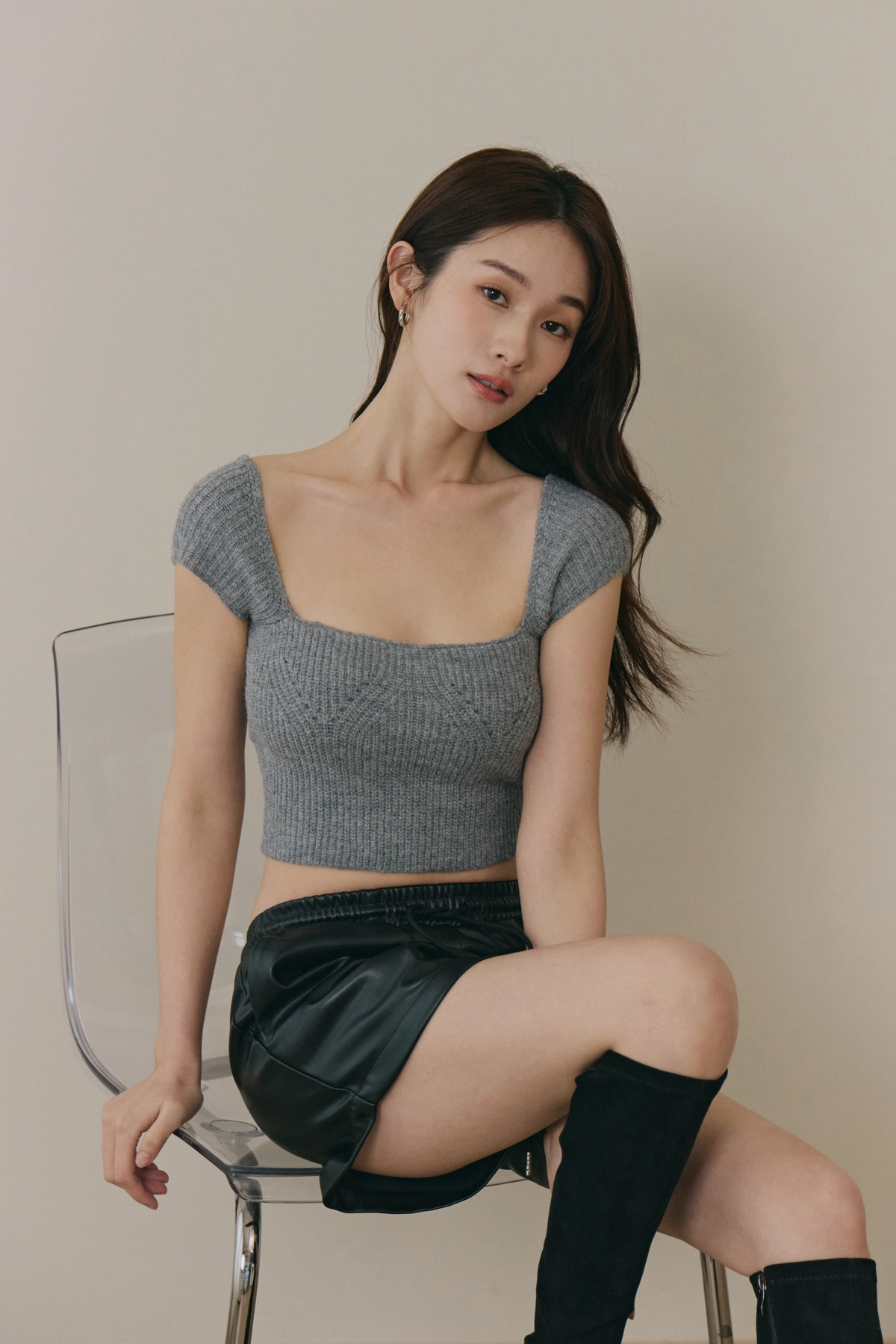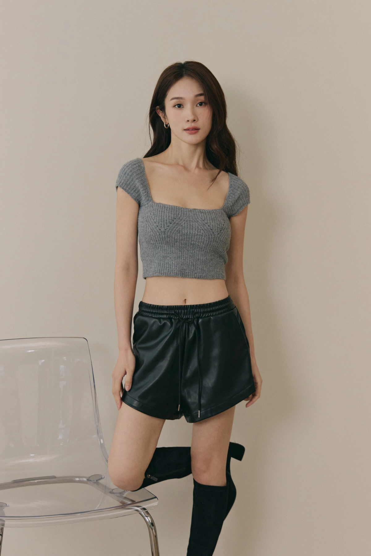 美胸方領毛織Bra Top-灰