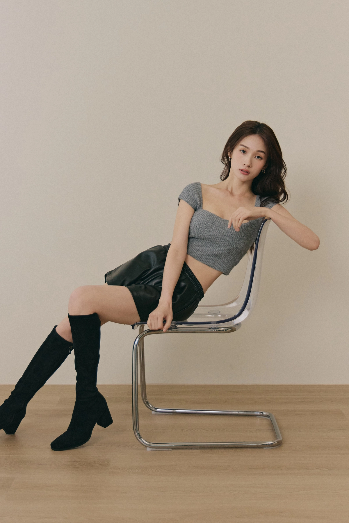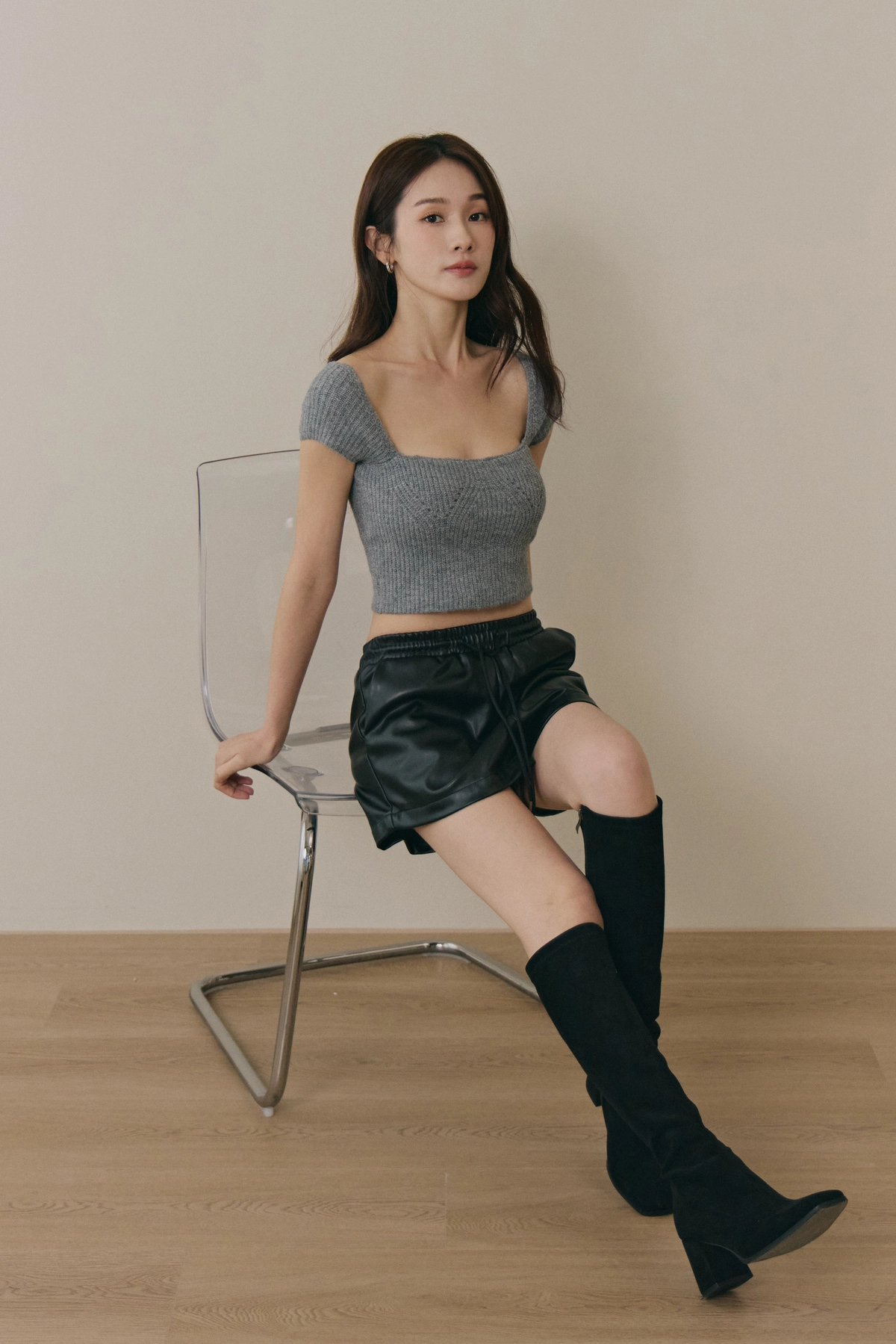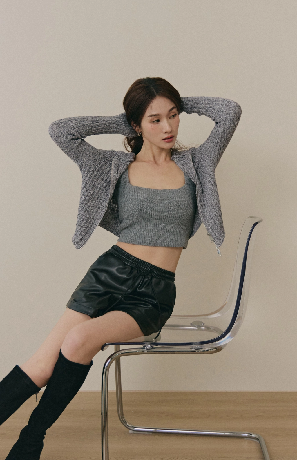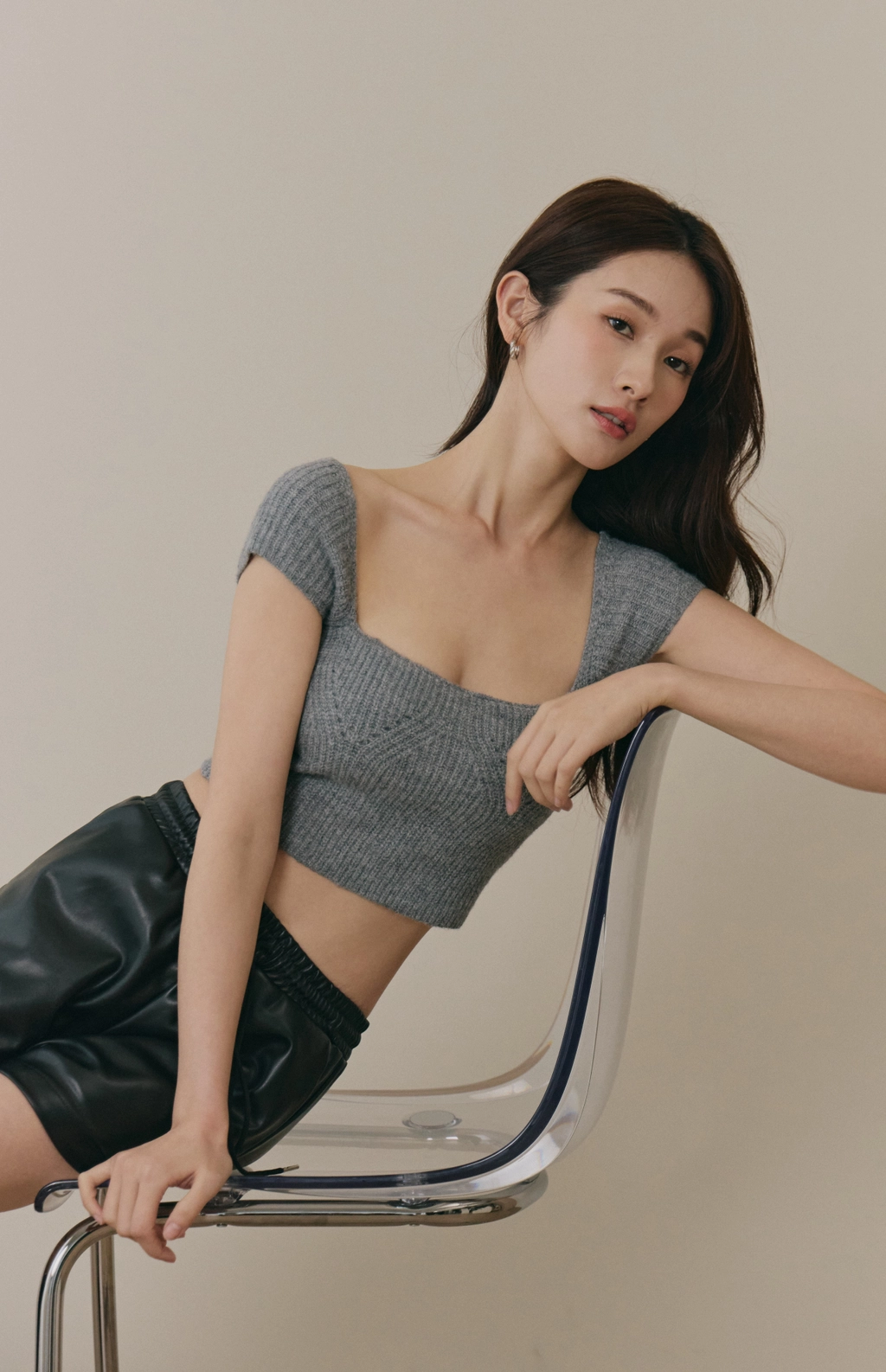 美胸方領毛織Bra Top-灰