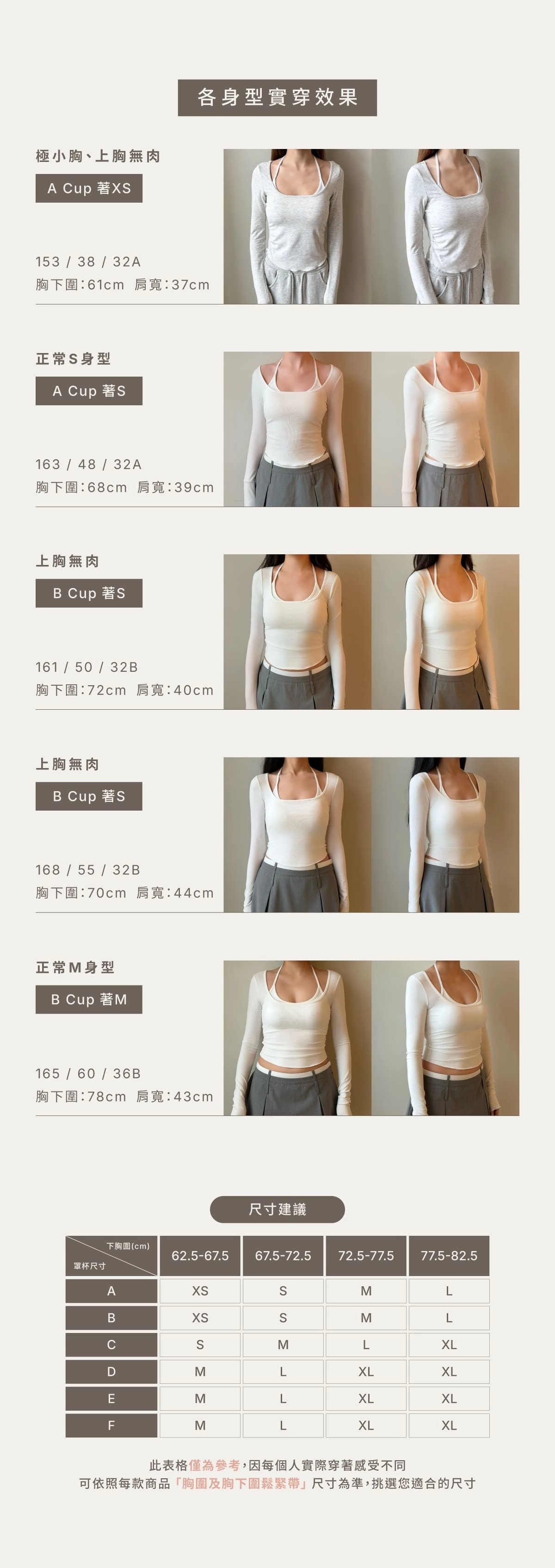 BRA TOP尺寸選購除了要參考罩杯外也需參考身高、體重