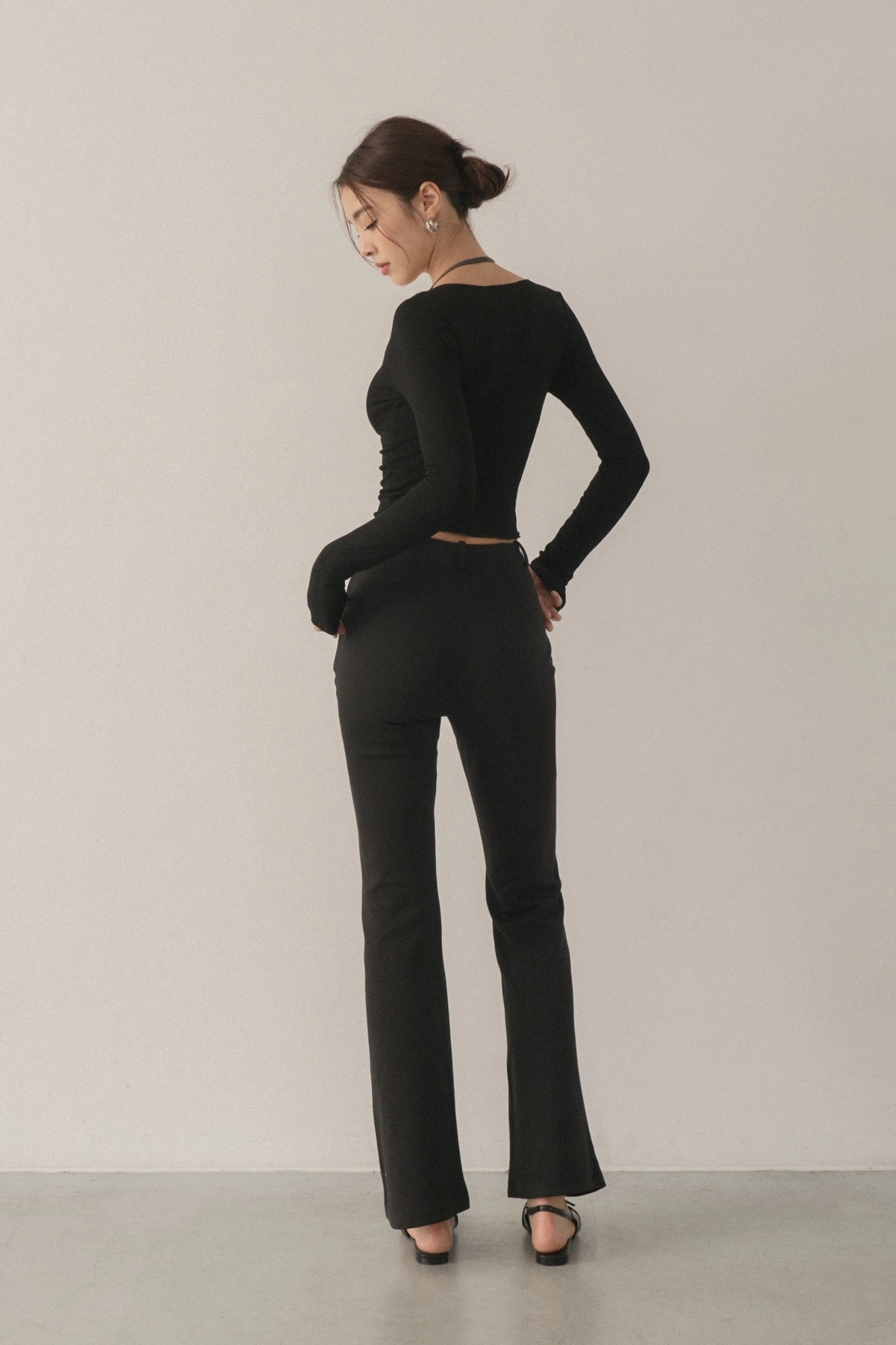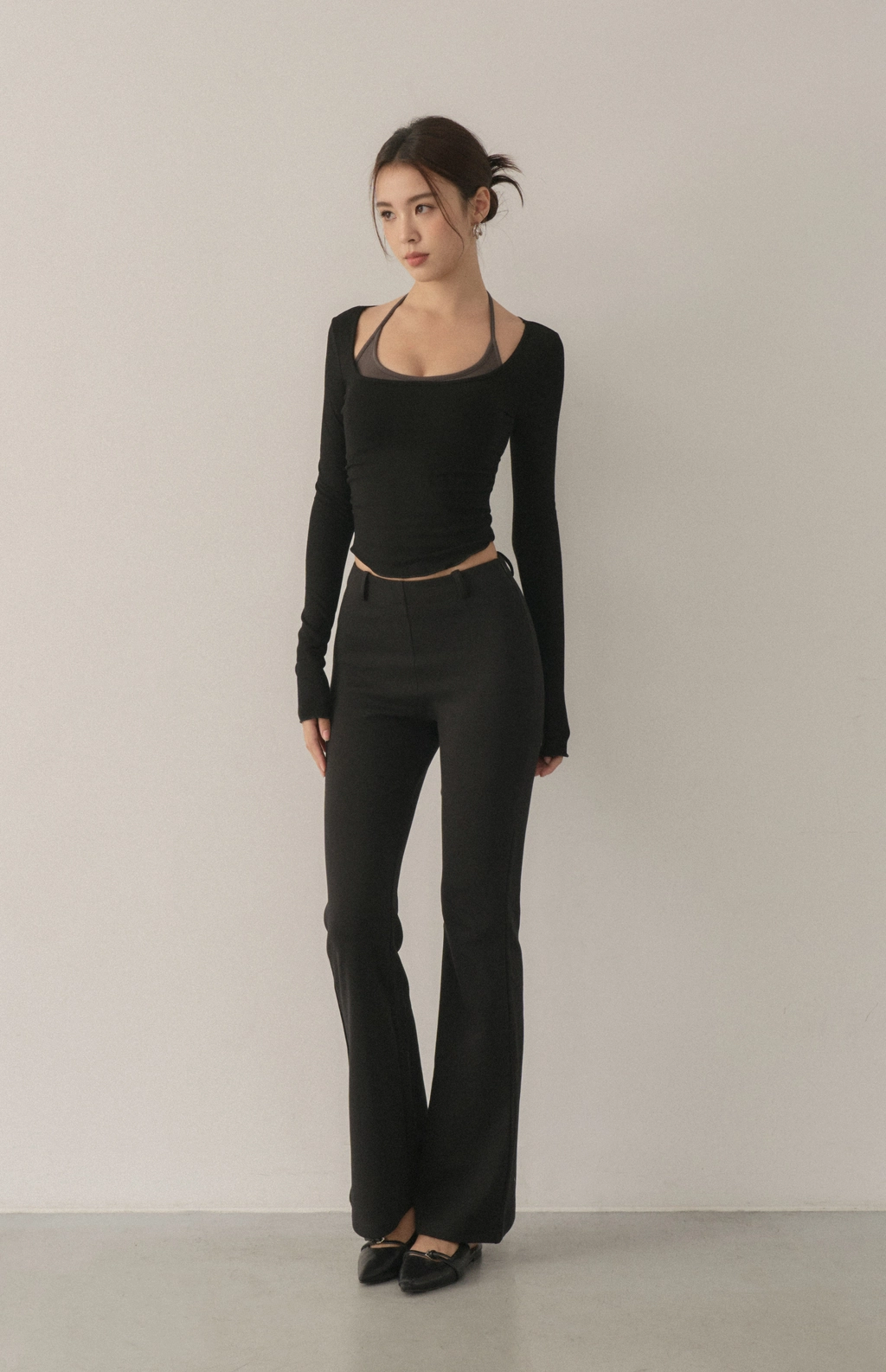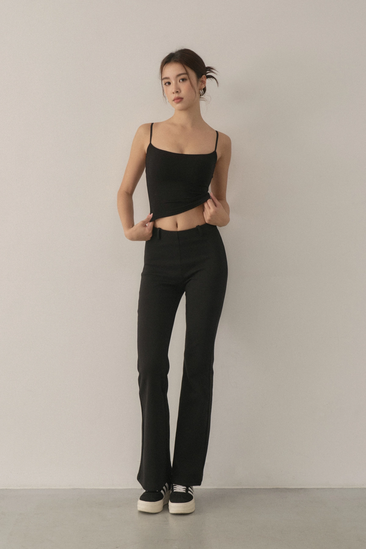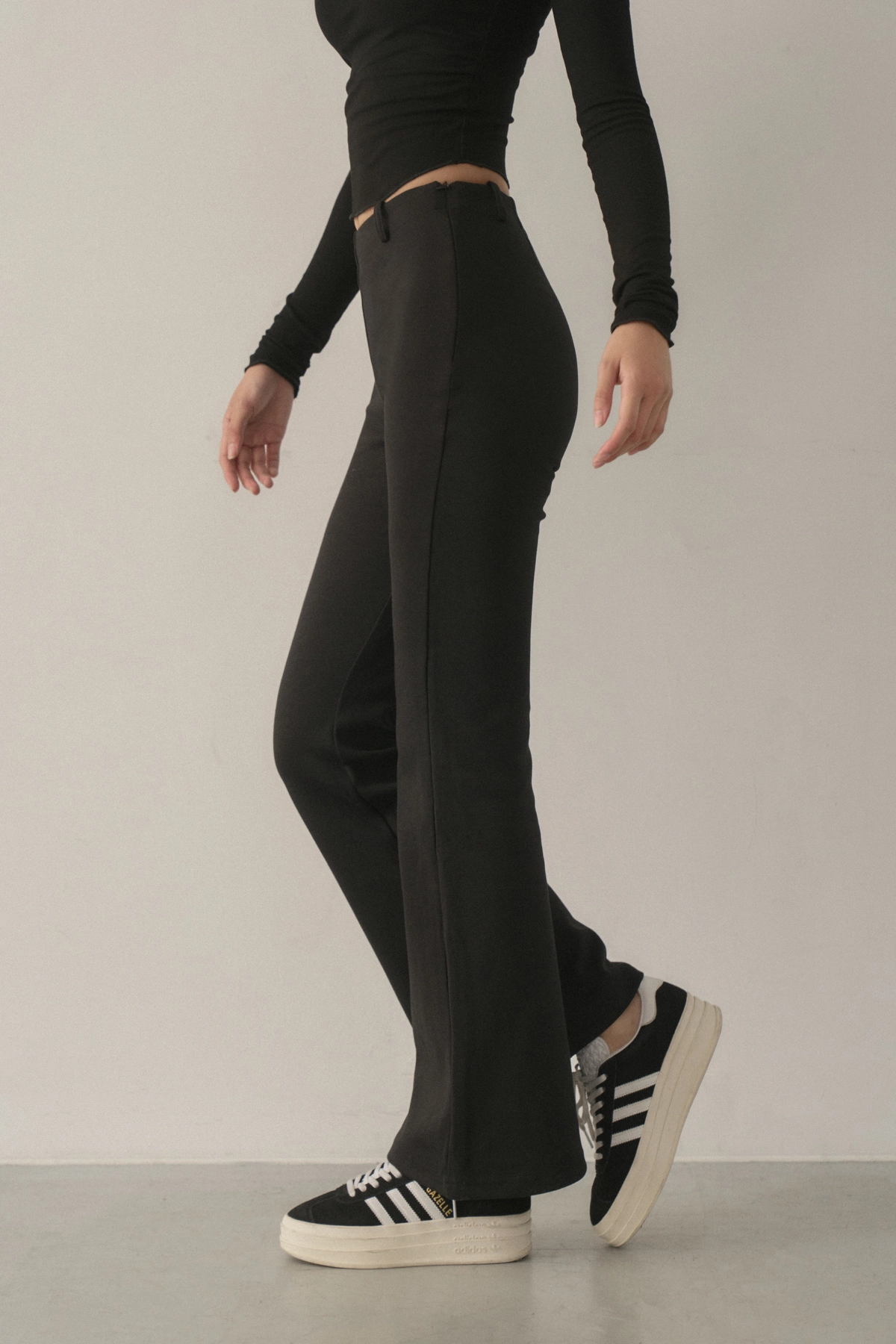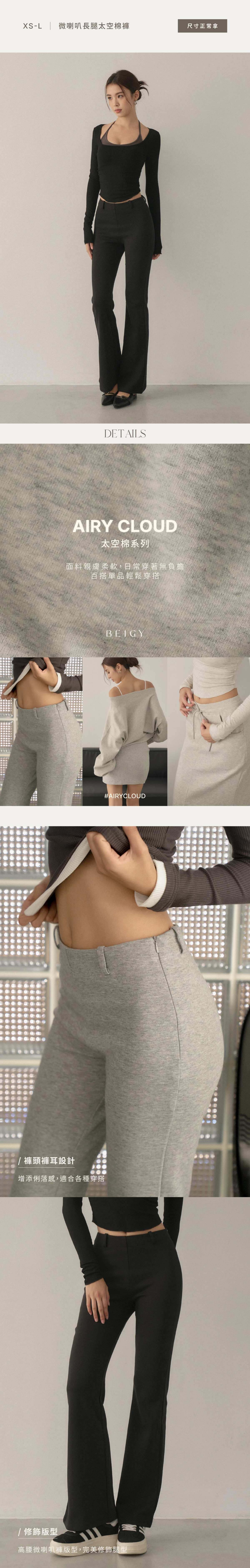 2.高腰微喇叭褲版型,完美修飾腿型
