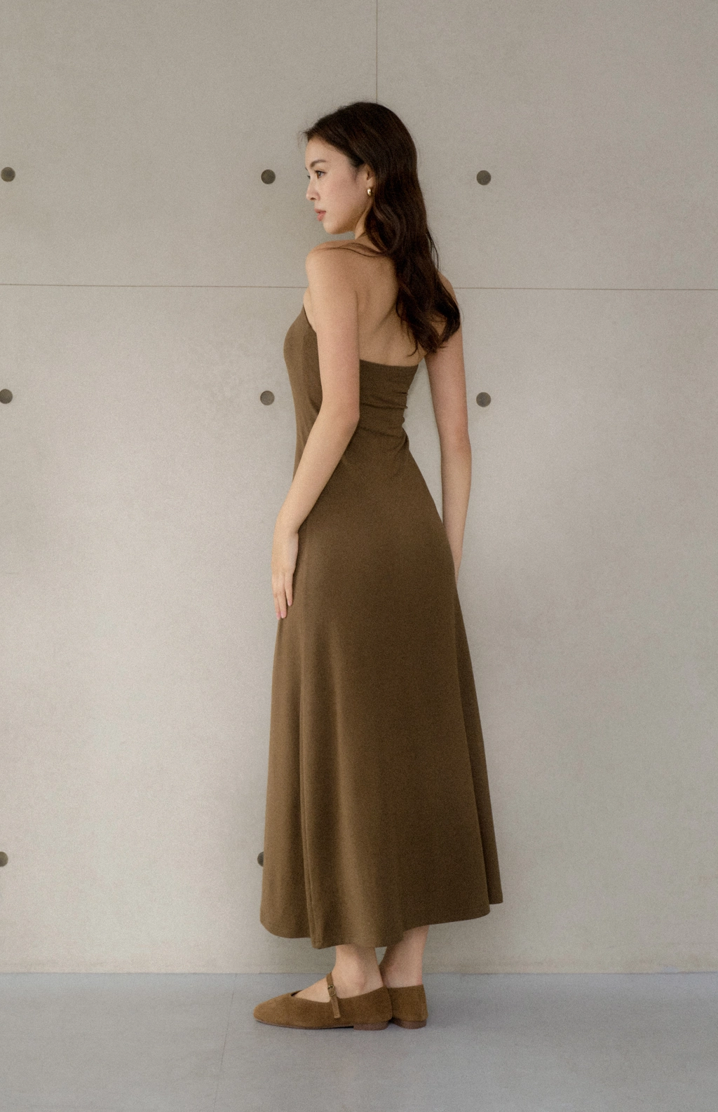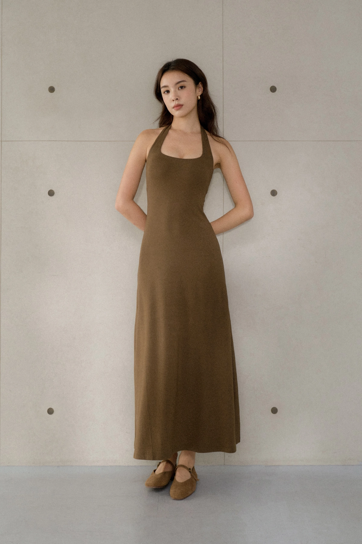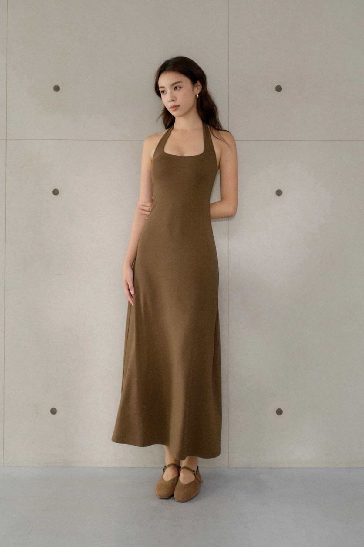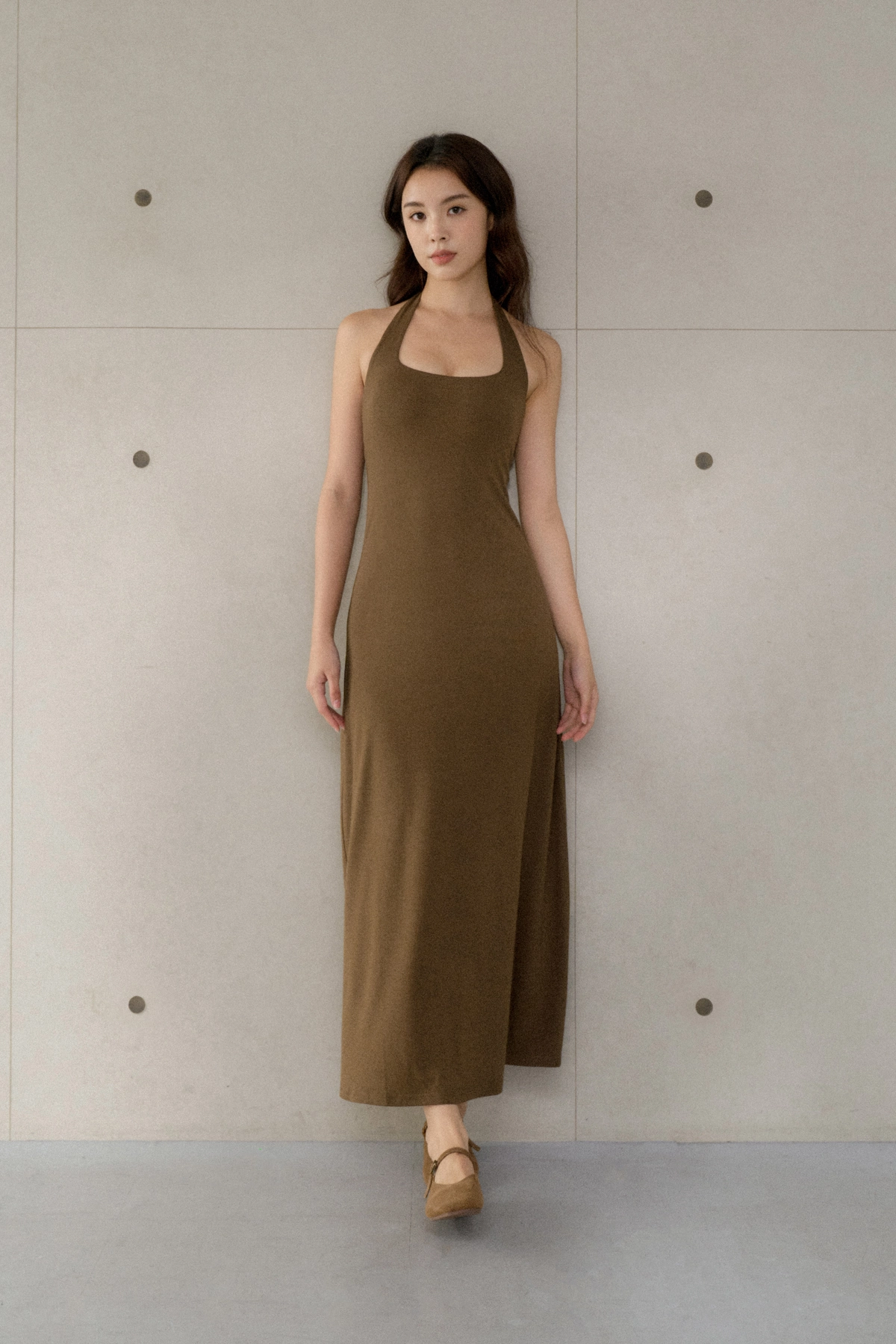 美背繞脖莫代爾Bra Dress-咖綠
