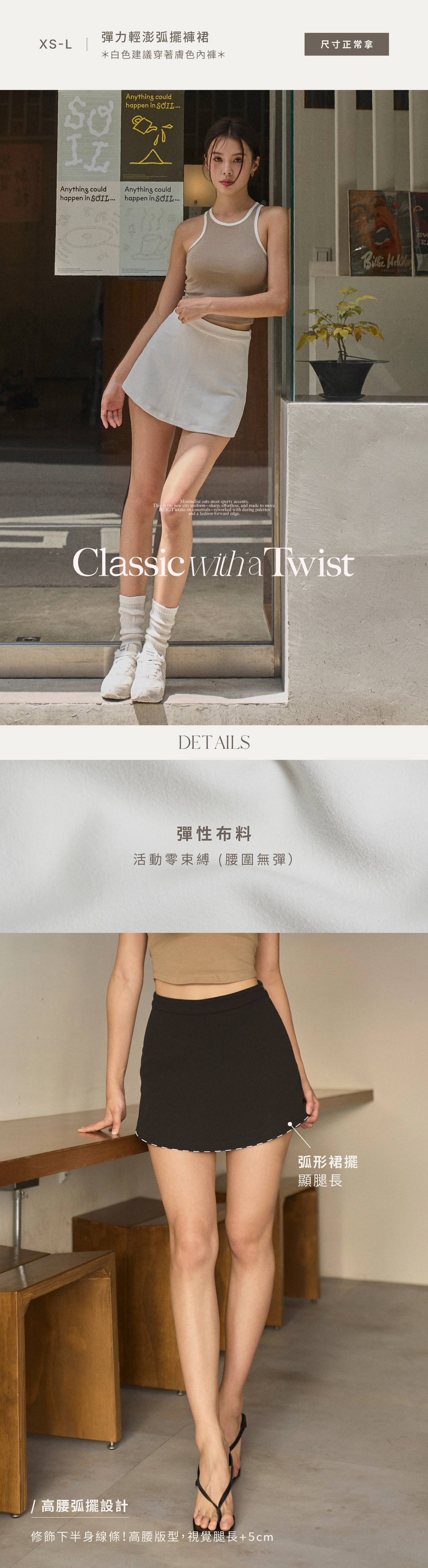 1.高腰弧擺設計修飾下半身線條