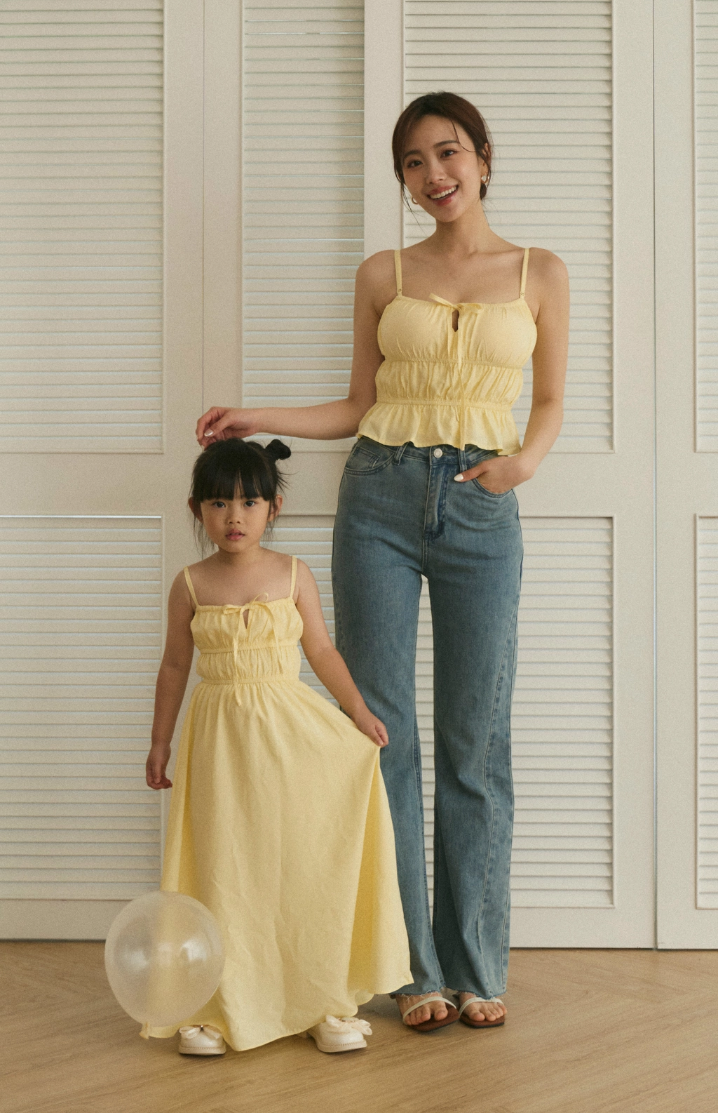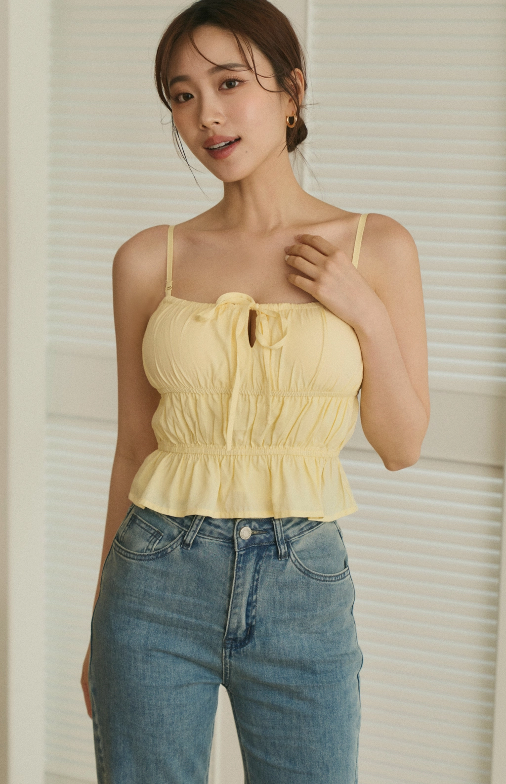 法式棉麻綁帶多穿Bra Top-鵝黃