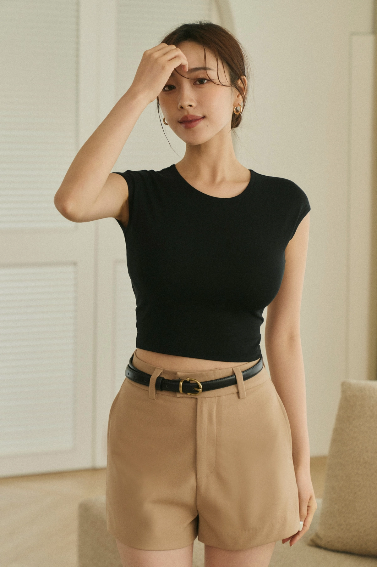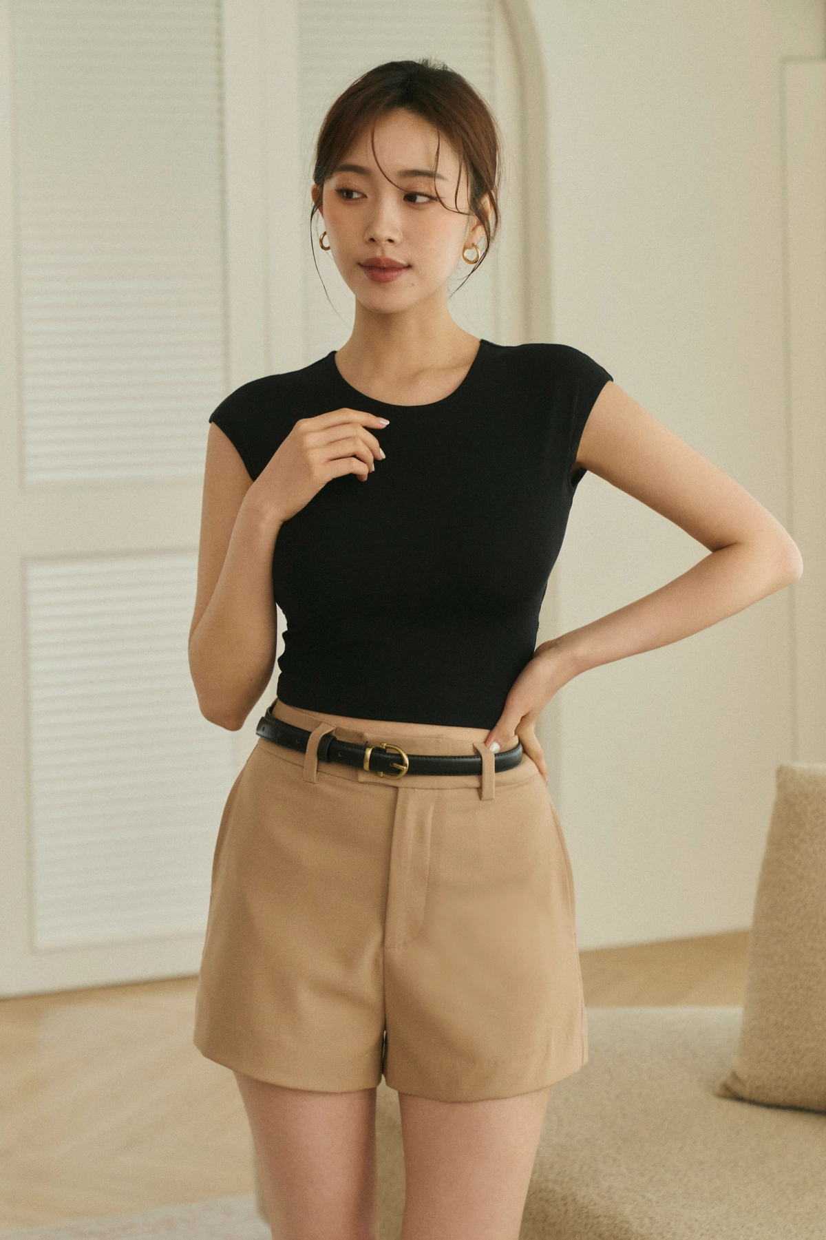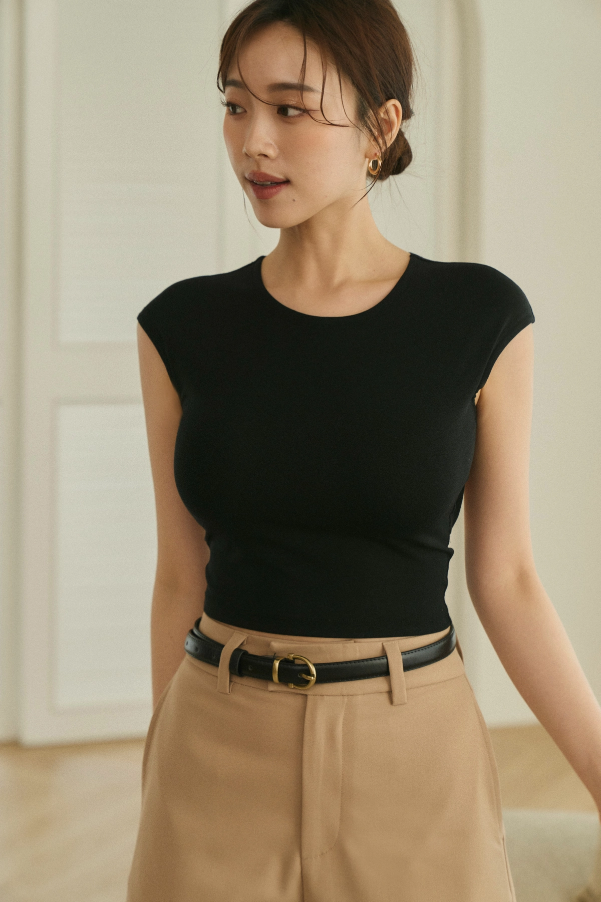 1.極簡小蓋袖設計,修飾肩膀及手臂曲線