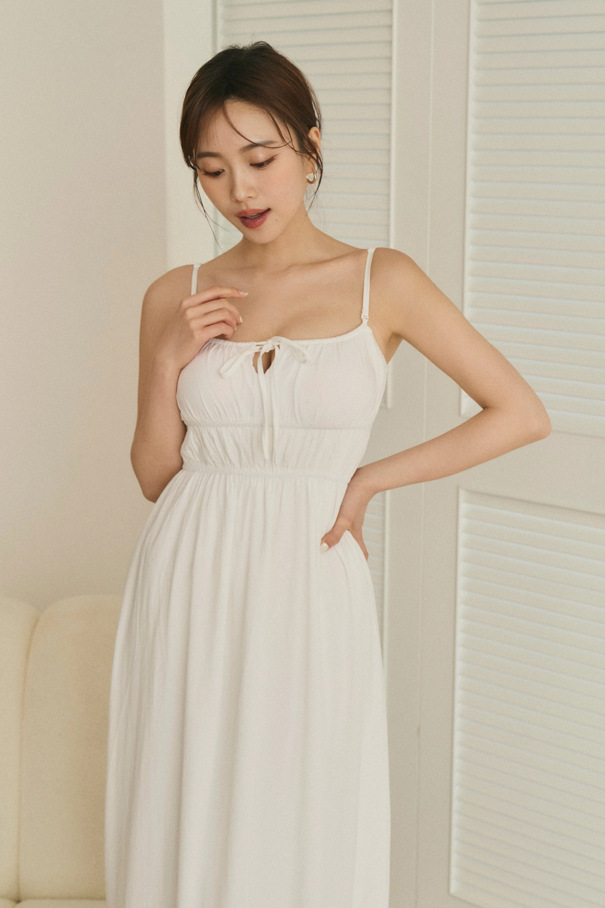 3.胸前抽繩蝴蝶結,增加甜美感,同時微調胸圍