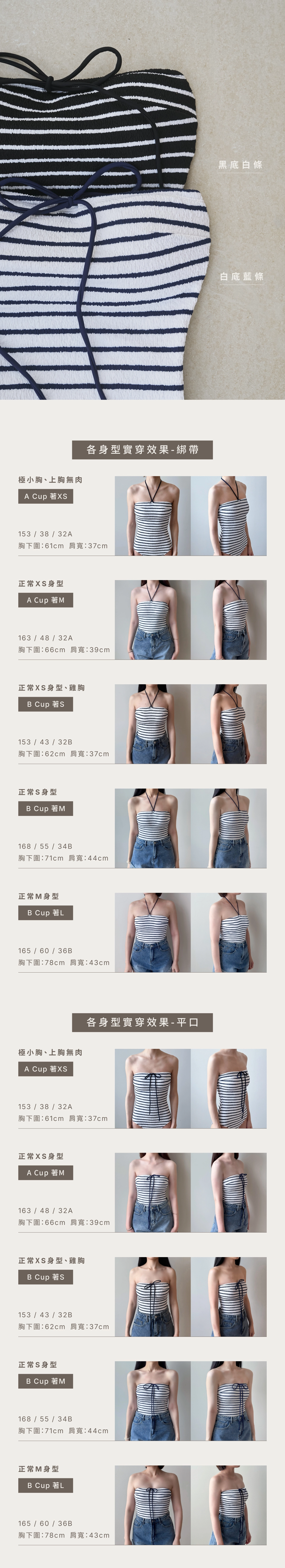BRA TOP尺寸選購除了要參考罩杯外也需參考身高、體重