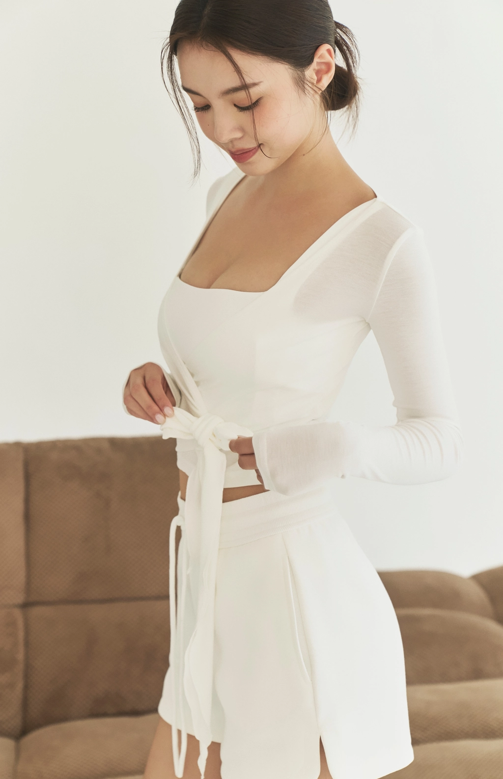 冰肌涼感綁帶罩衫-白