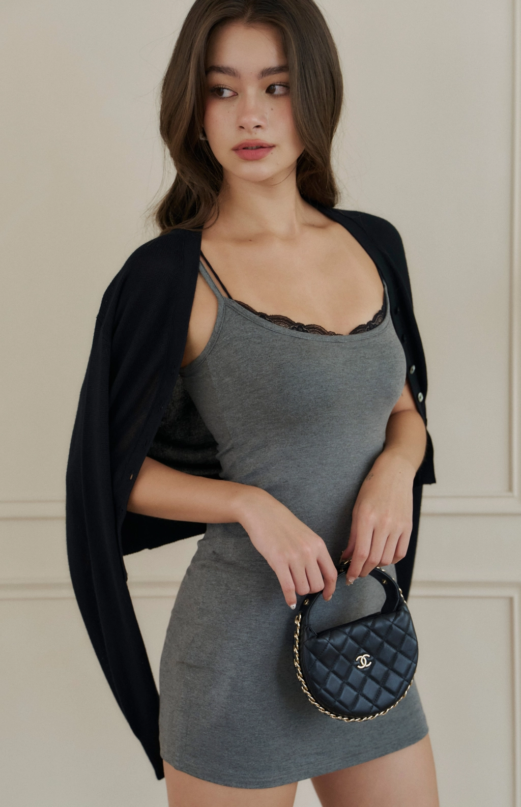 蕾絲假兩件莫代爾短Bra Dress-深花灰