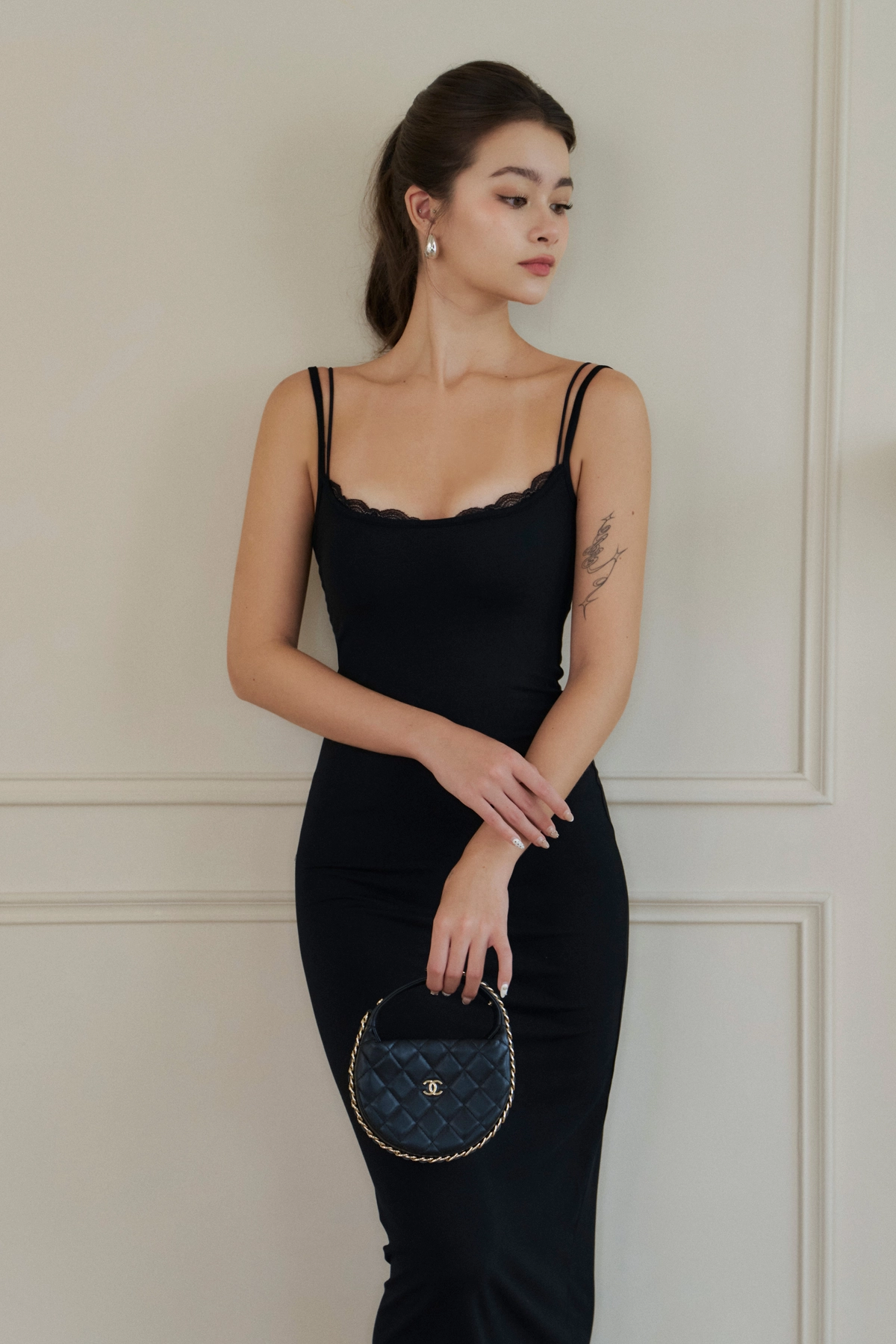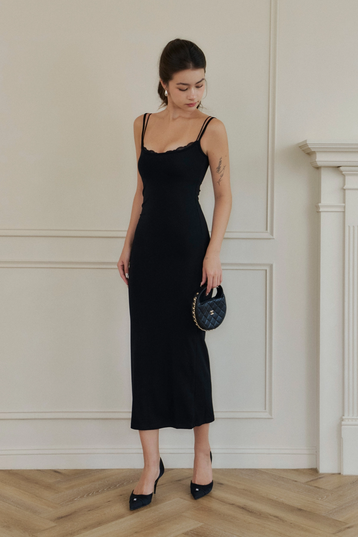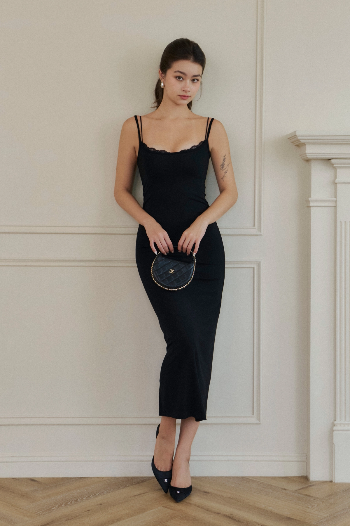 蕾絲假兩件莫代爾長Bra Dress-黑