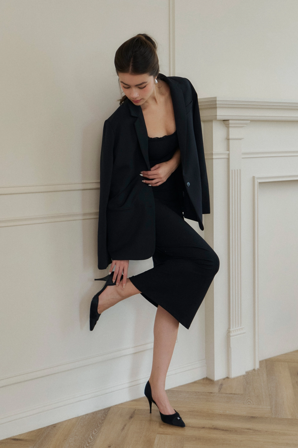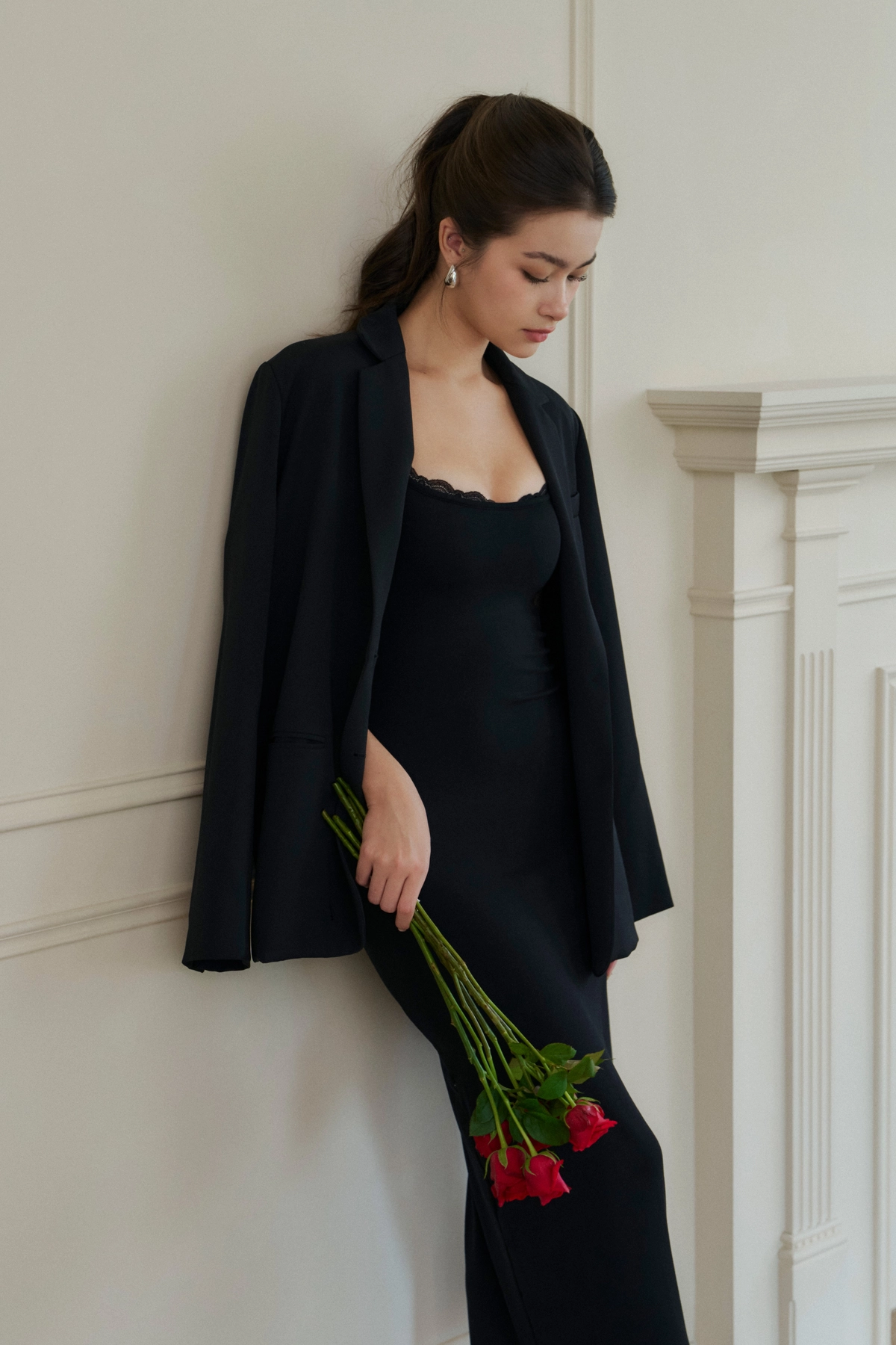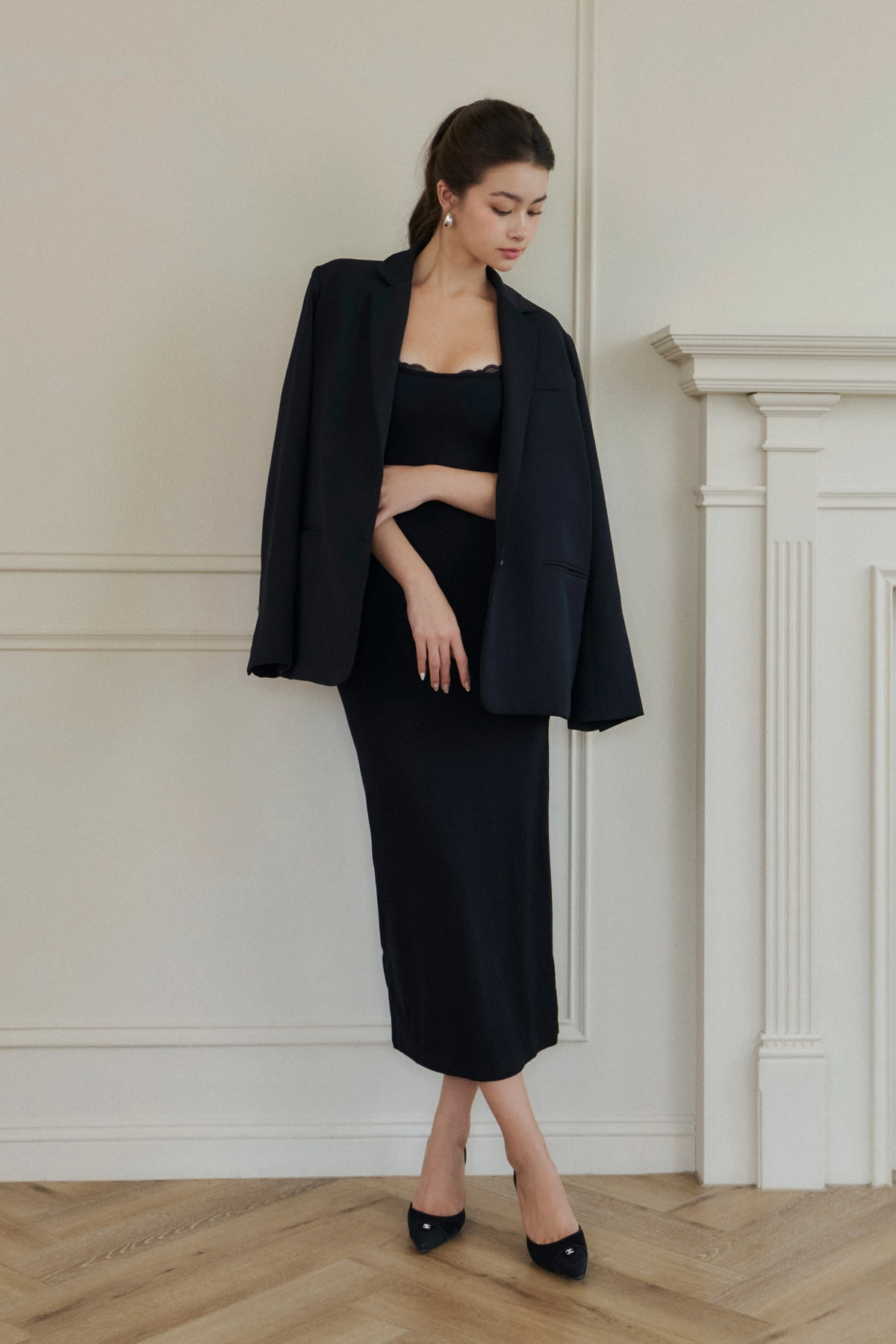 蕾絲假兩件莫代爾長Bra Dress-黑