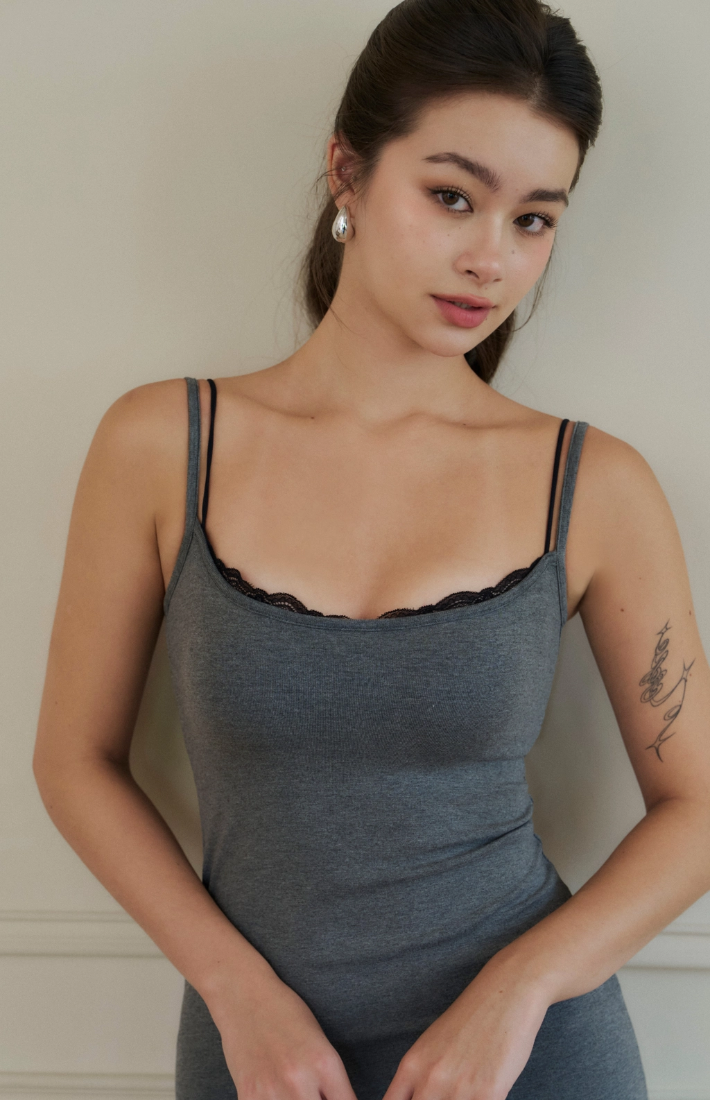 2.胸口拼接細緻蕾絲,營造內搭感層次