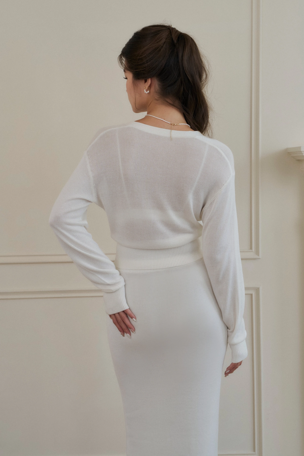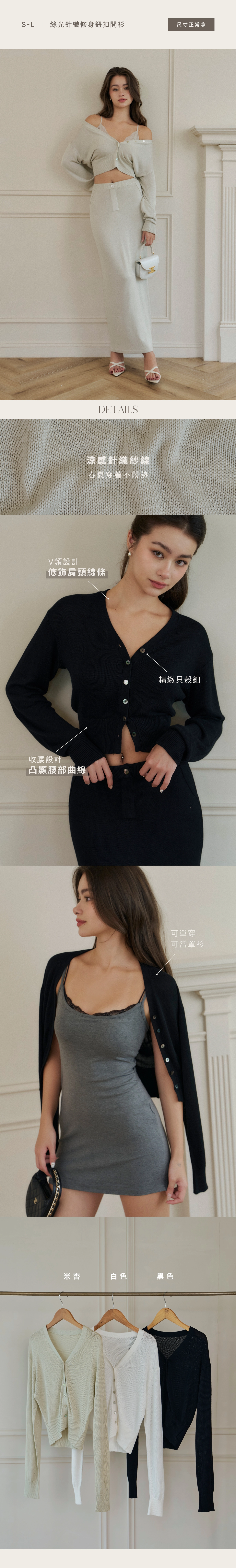 絲光針織修身鈕扣開衫-白