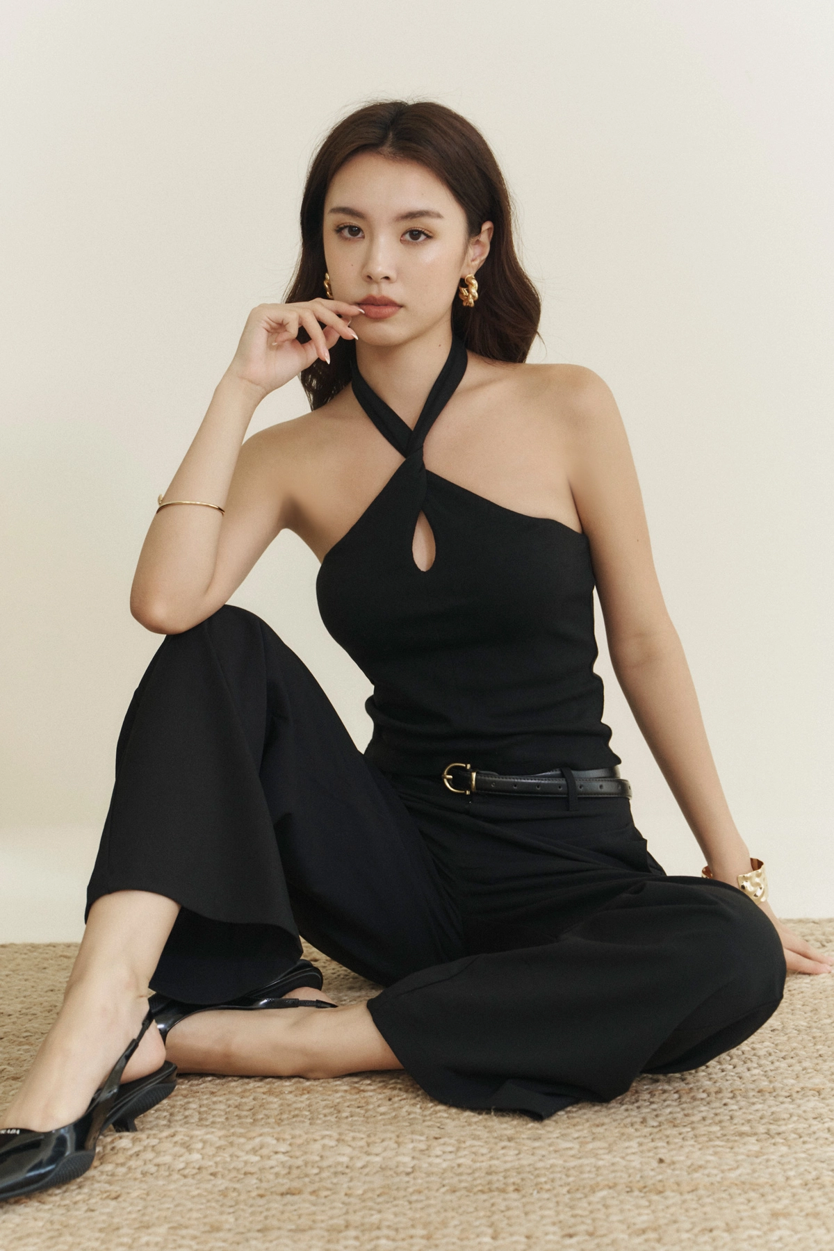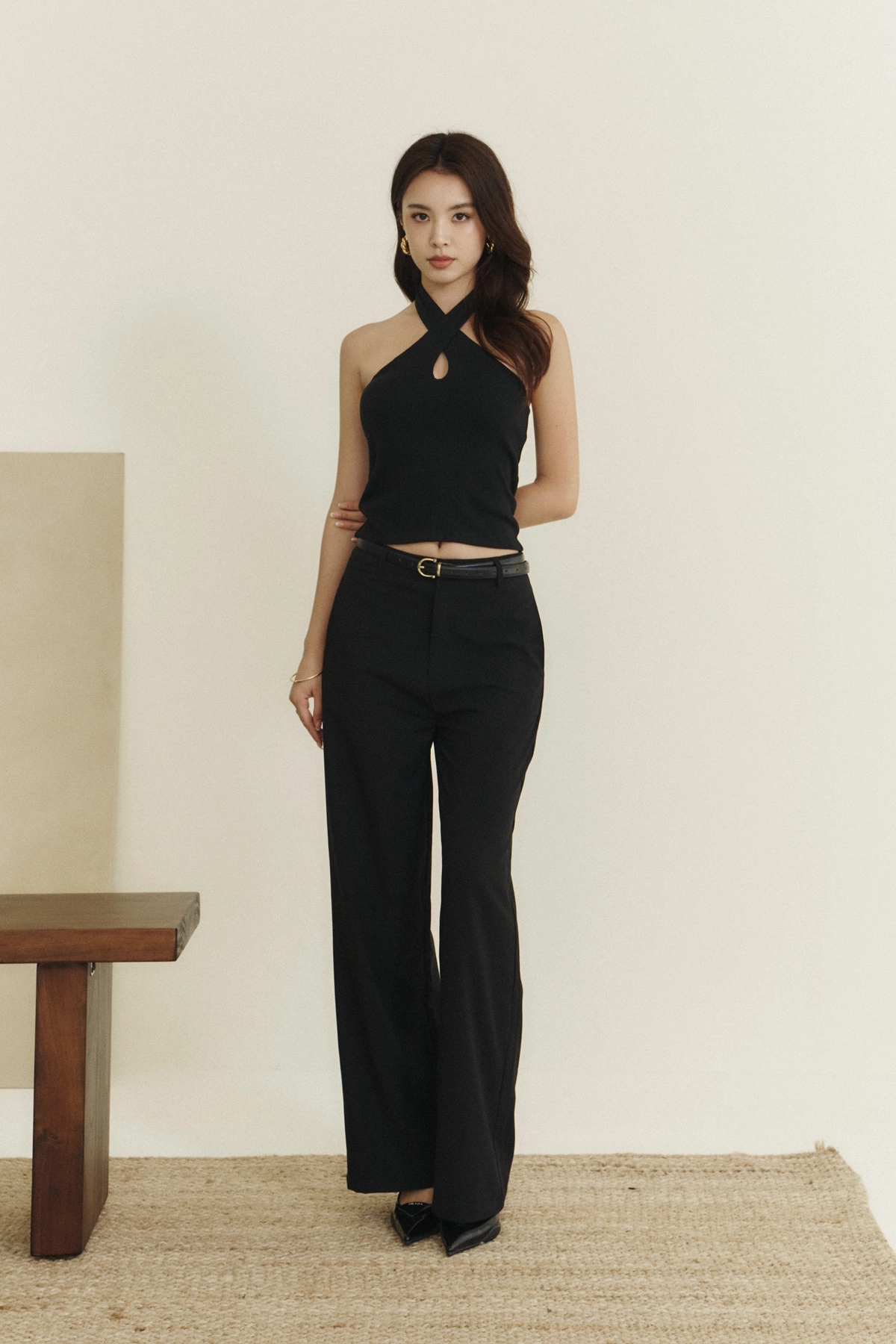 毛呢多穿繞頸綁帶Bra Top-黑