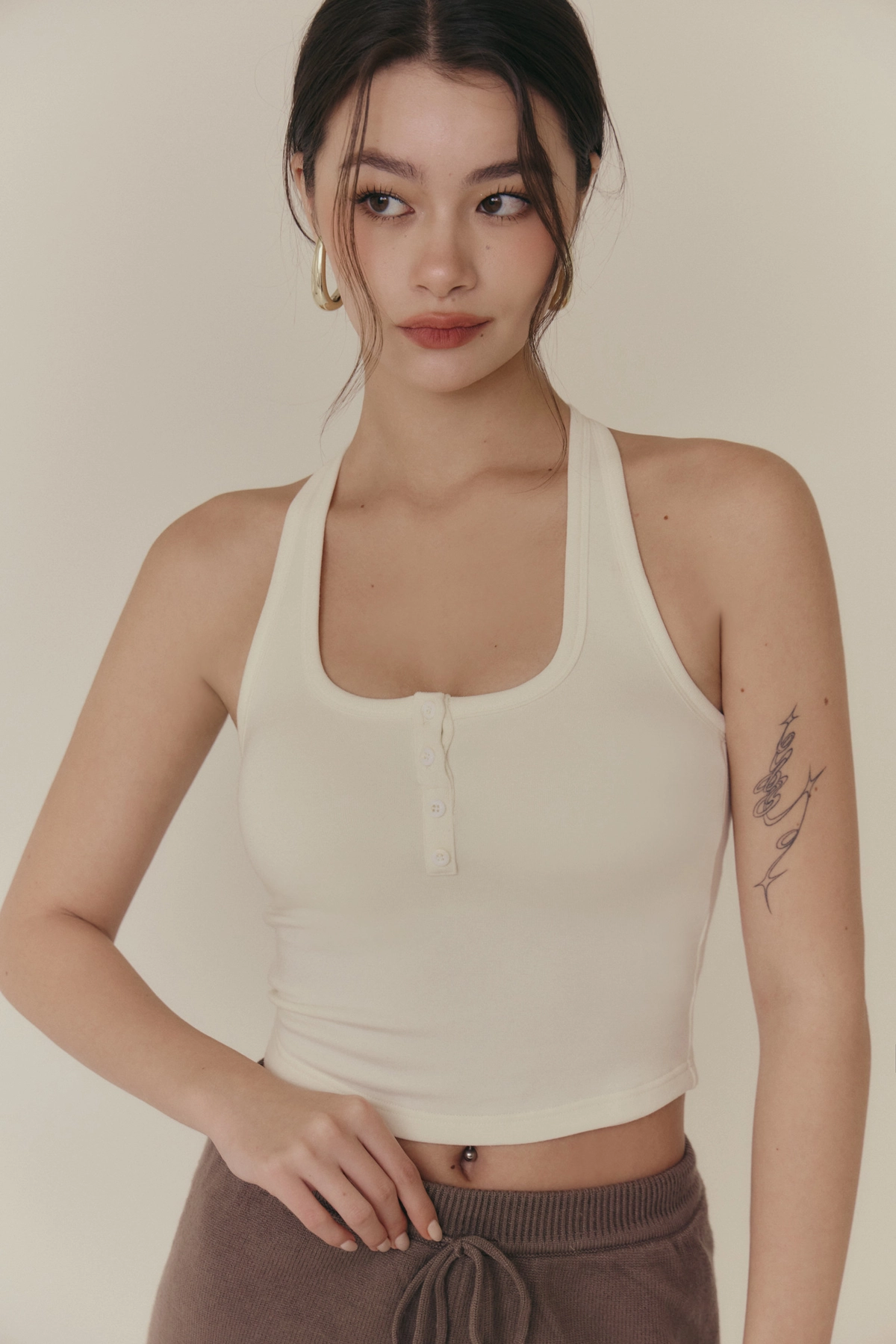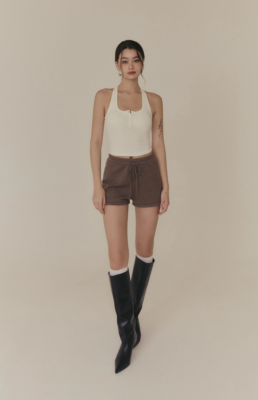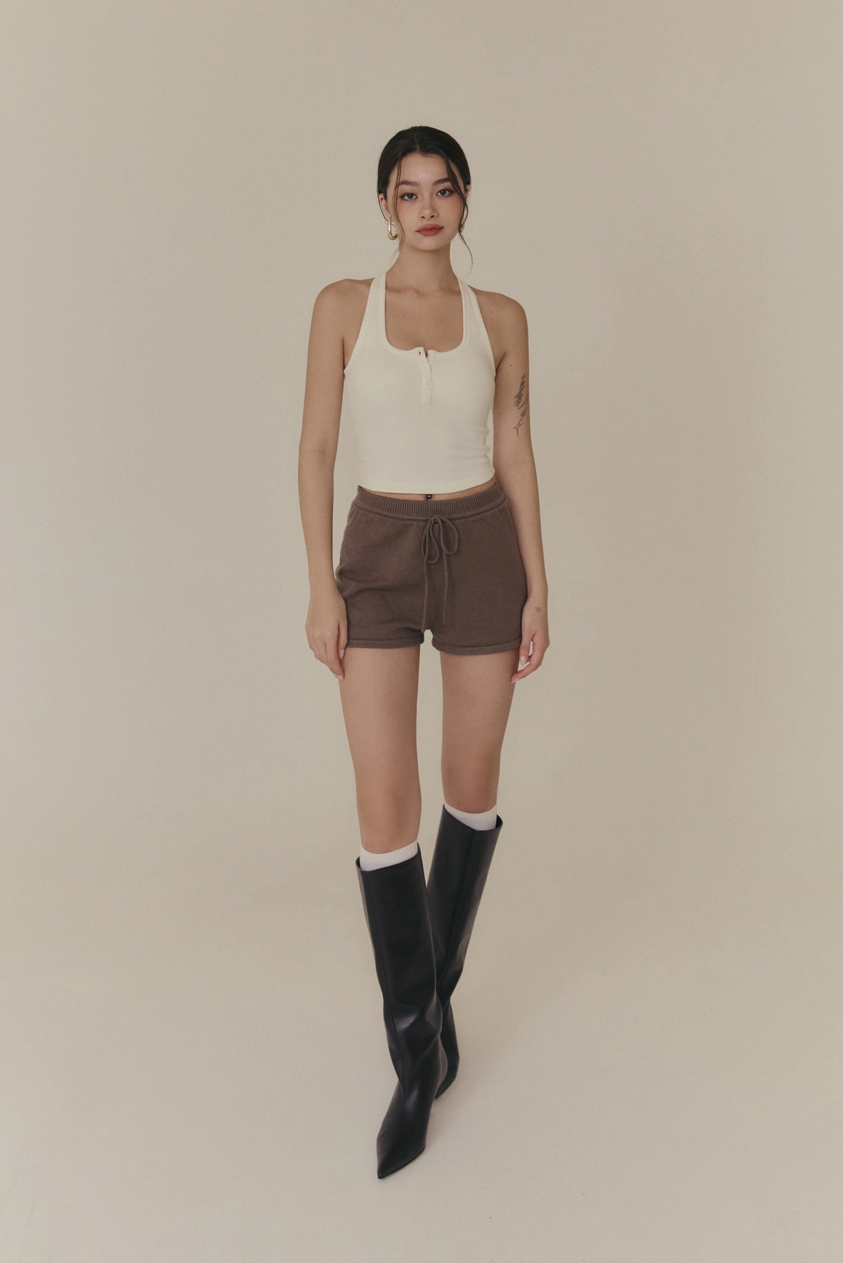 羊毛暖絨方領開釦Bra Top-白