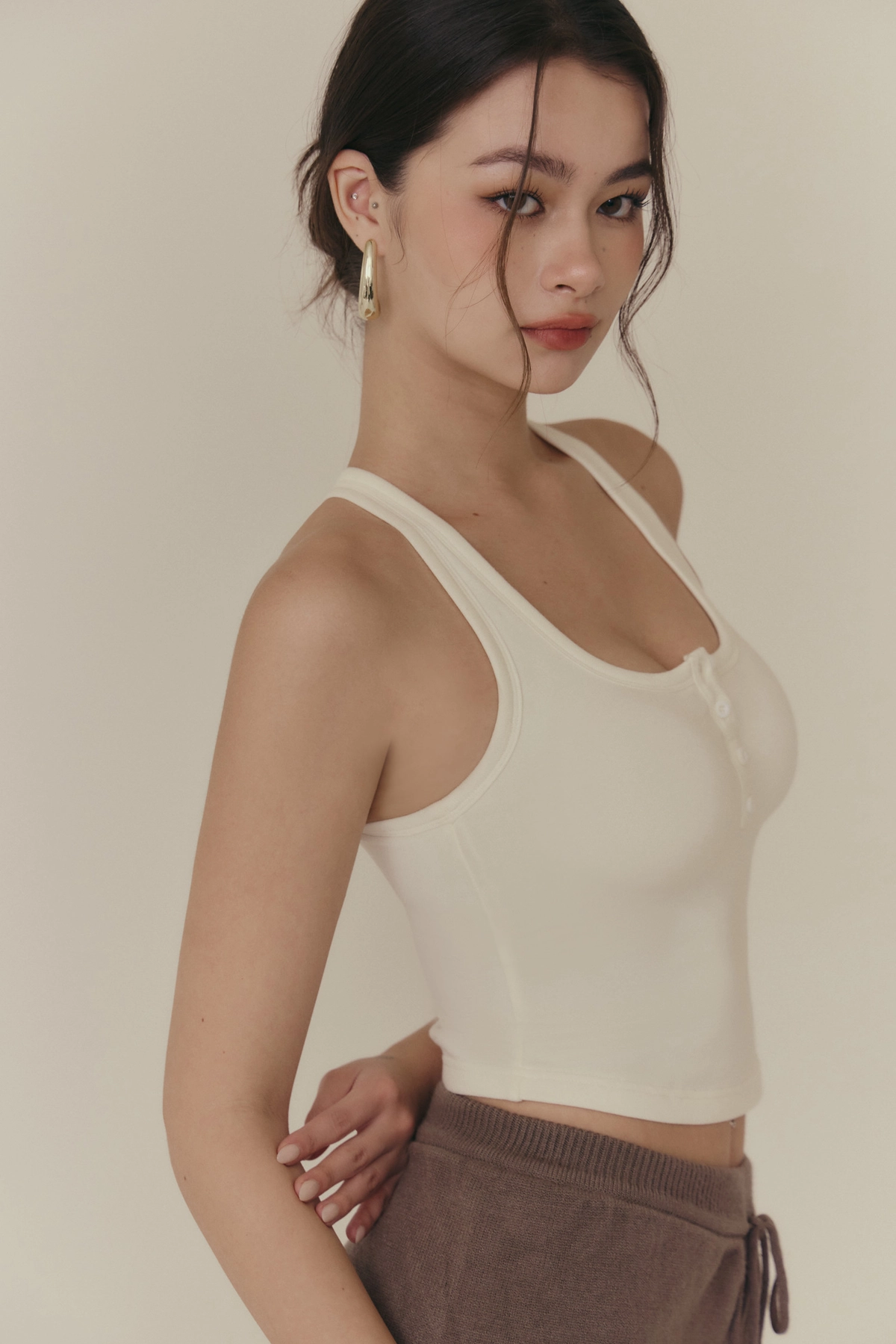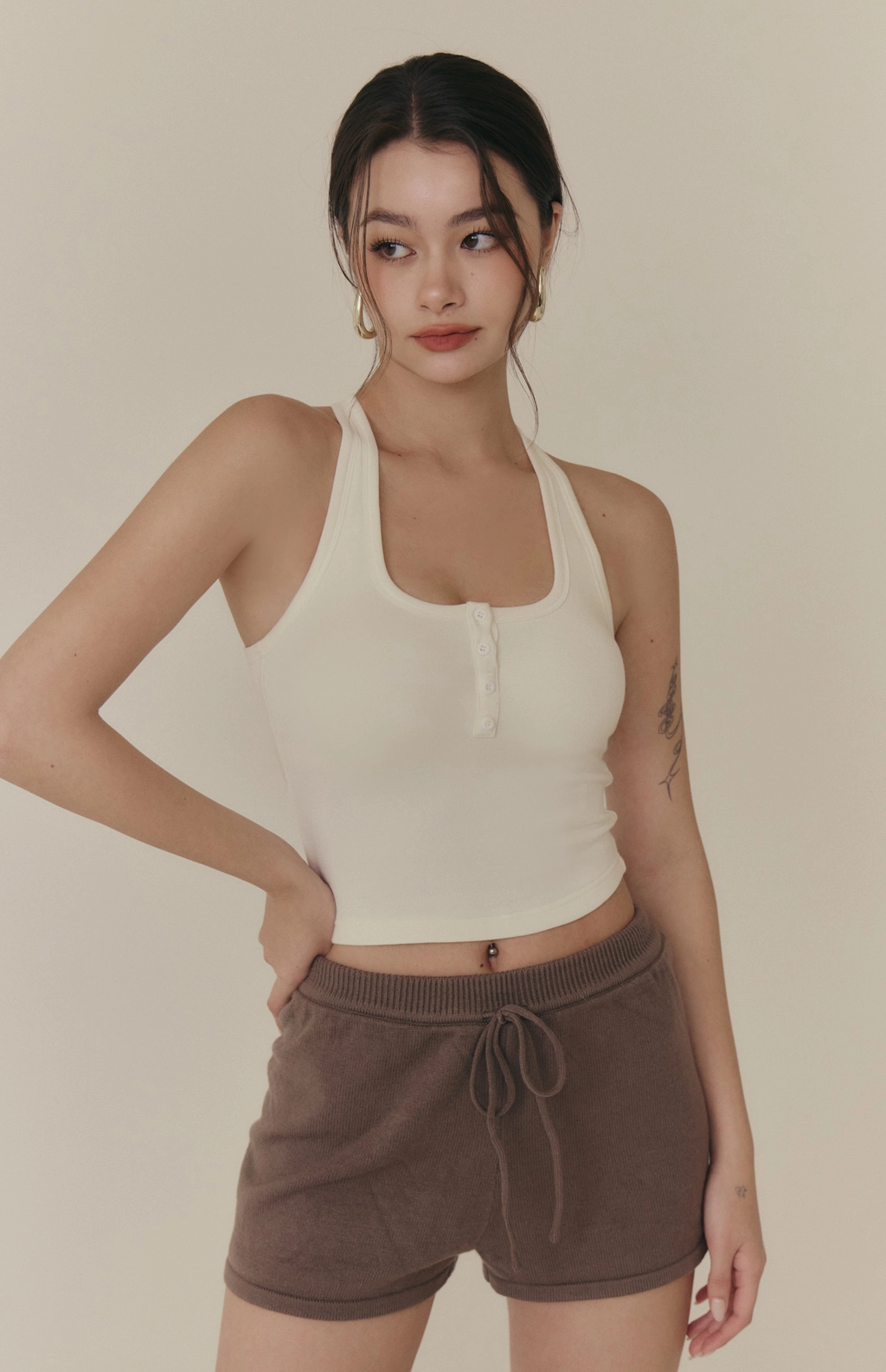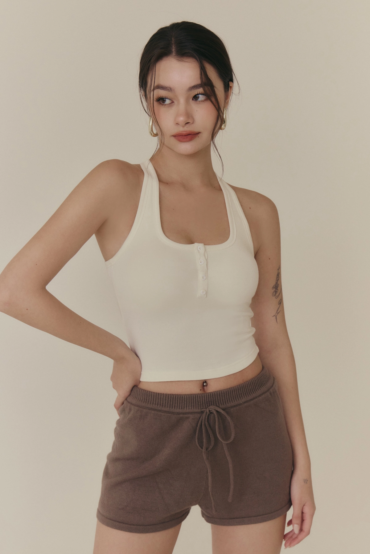 羊毛暖絨方領開釦Bra Top-白