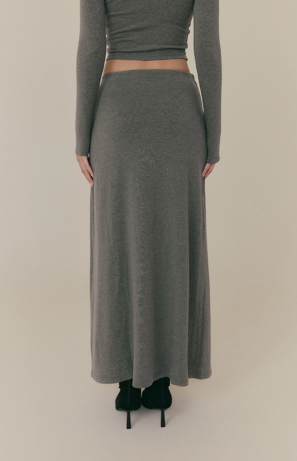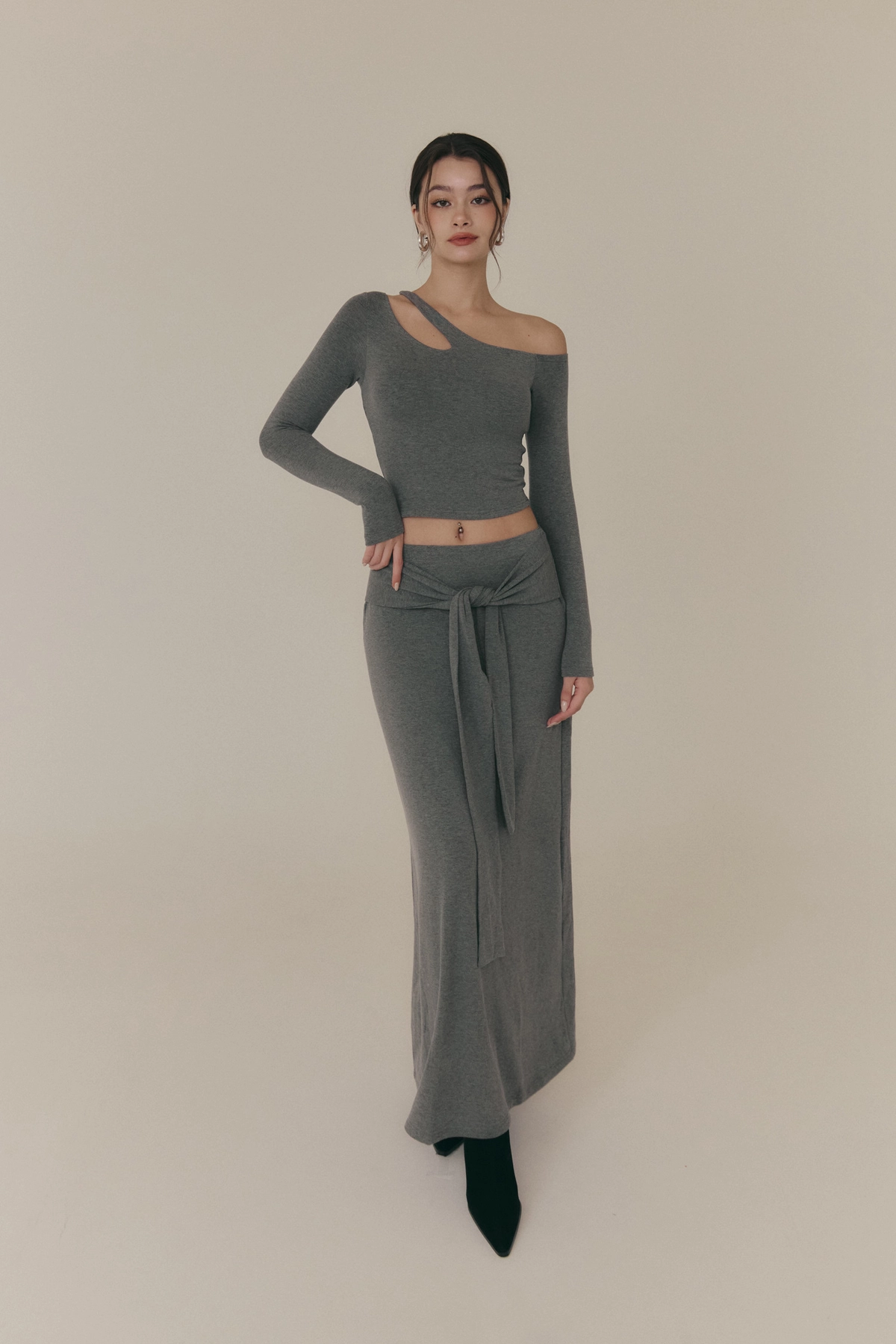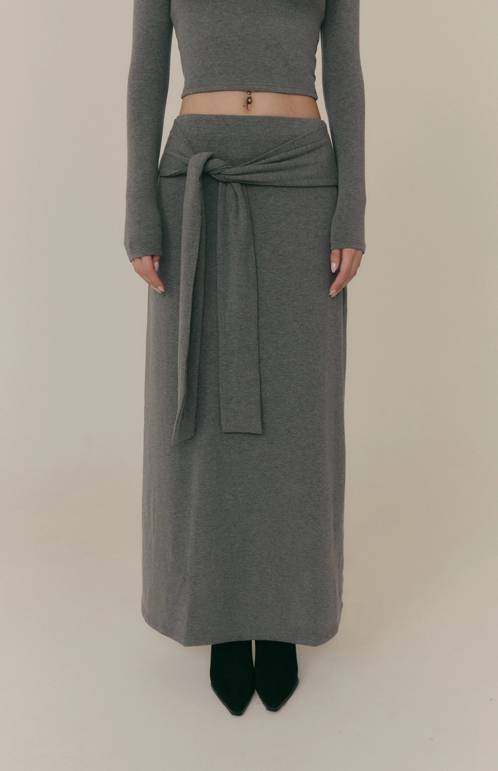 羊毛暖絨假兩件綁帶裙-深花灰