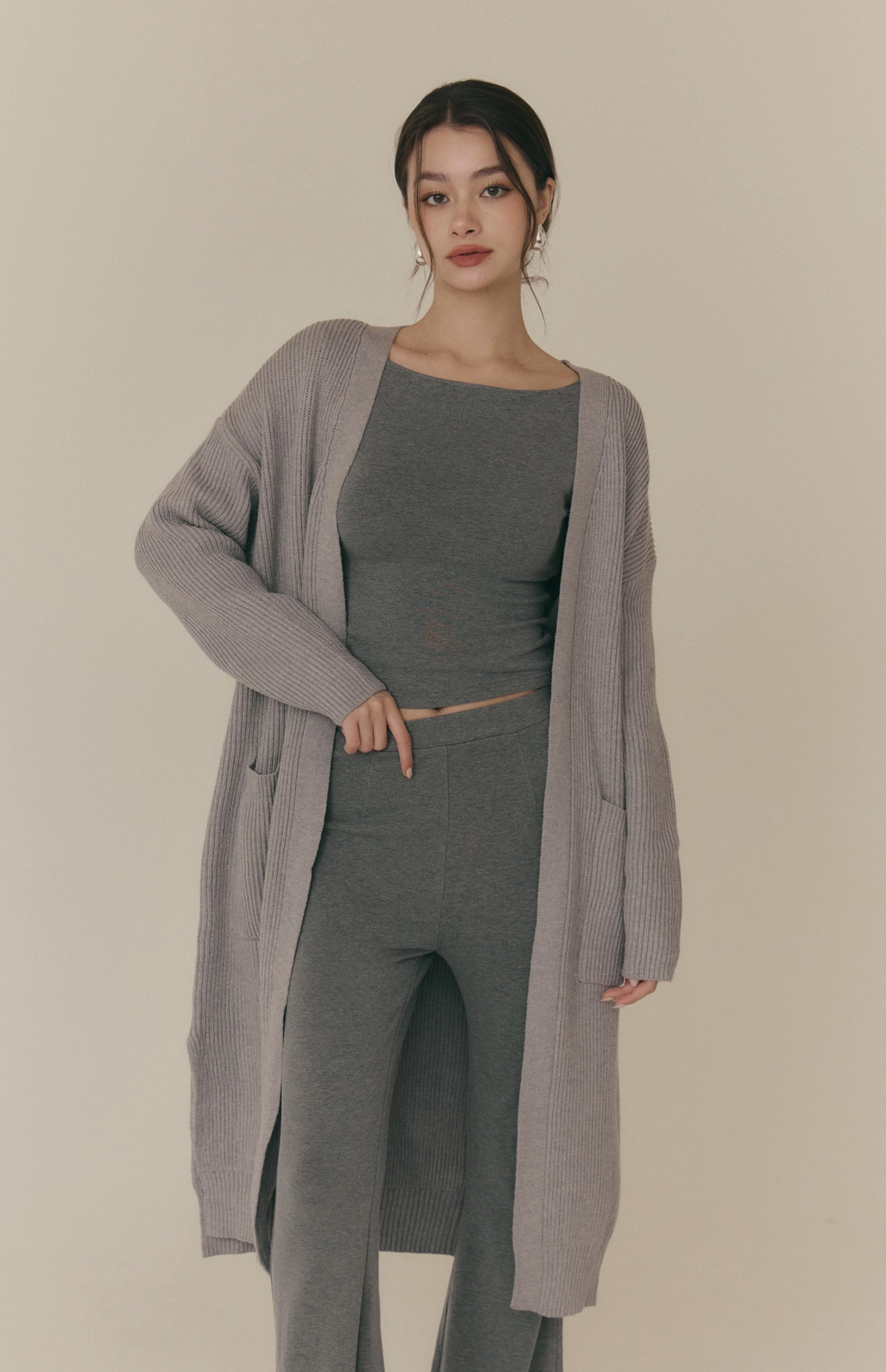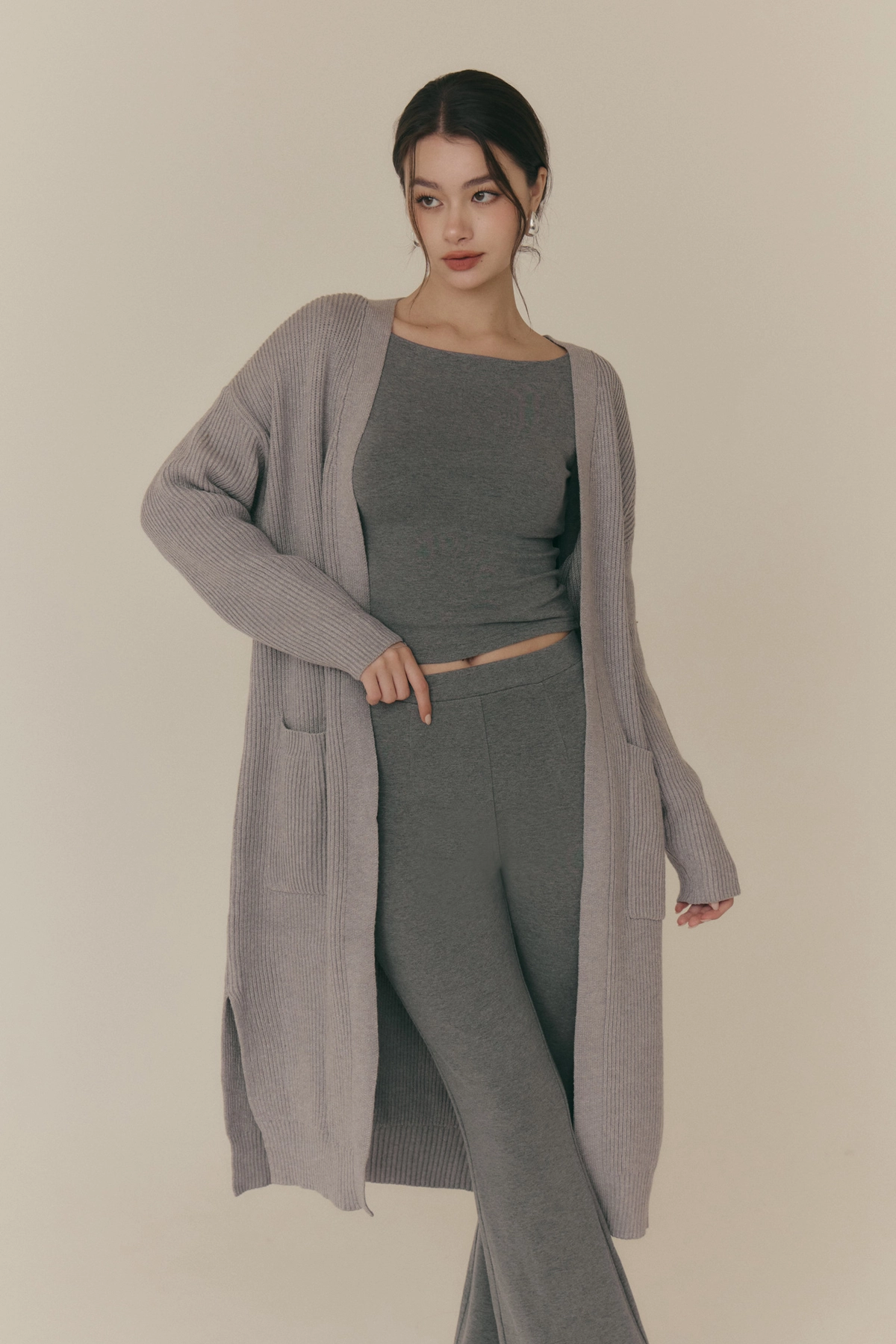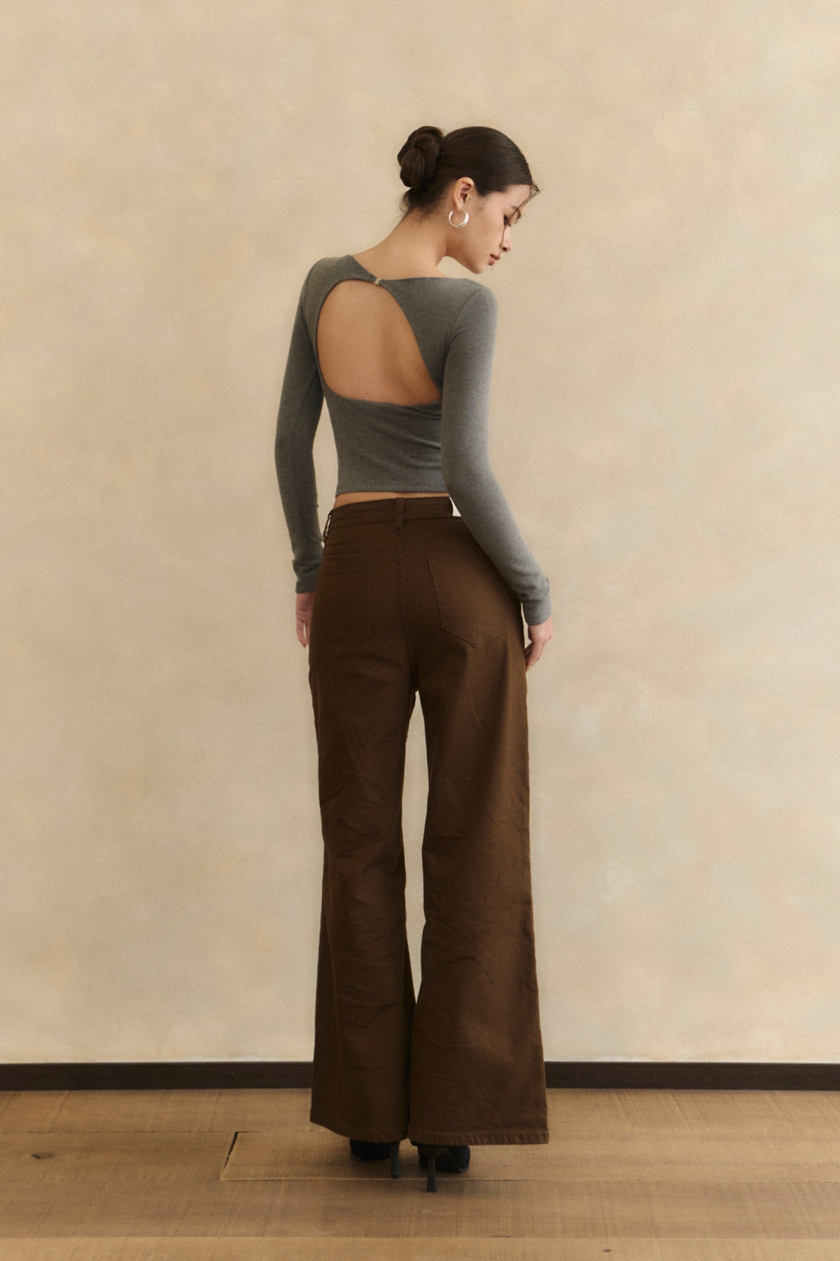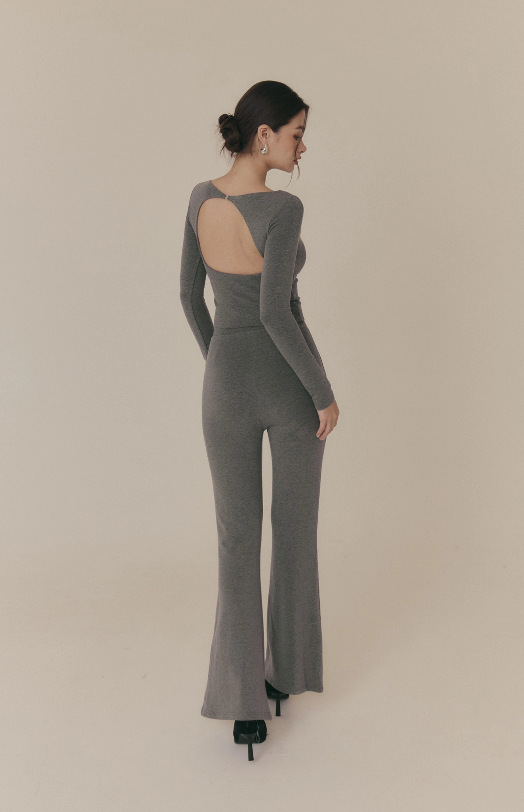 羊毛暖絨船型領美背長袖Bra Top-深花灰