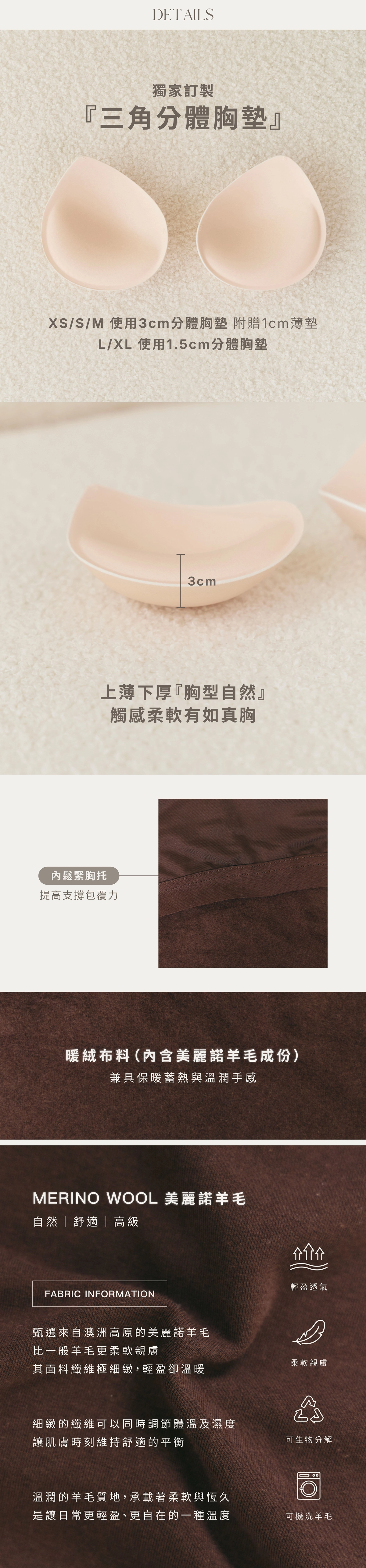 1.選用含美麗諾羊毛成分混紡面料,兼具保暖蓄熱與溫潤手感
