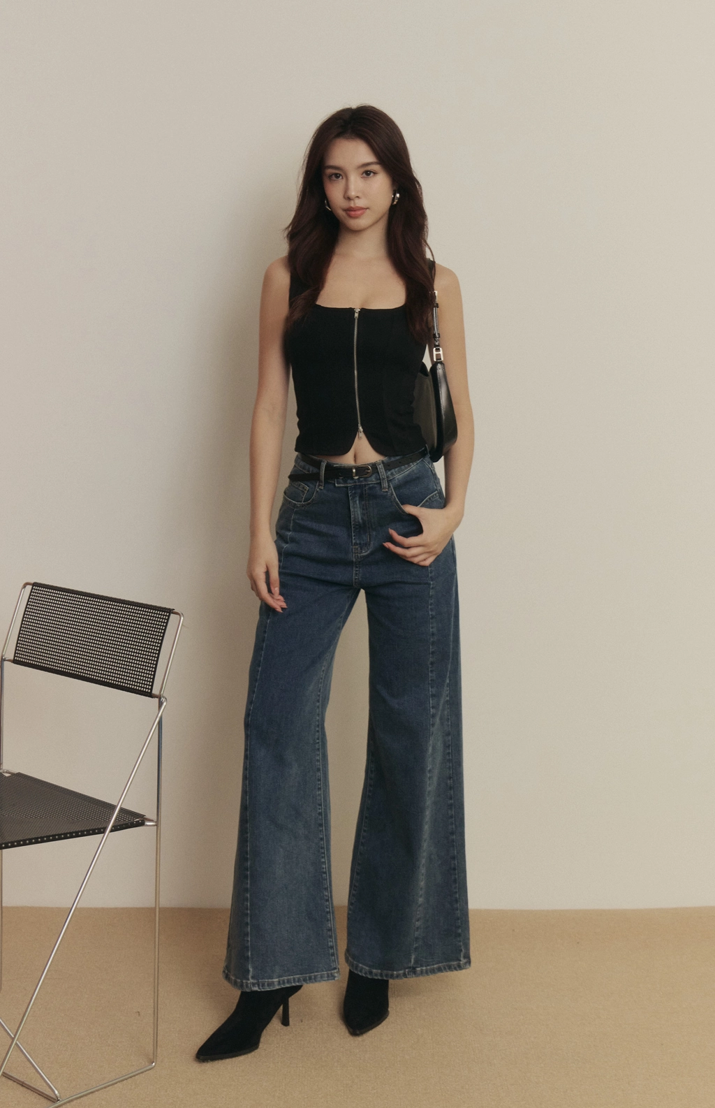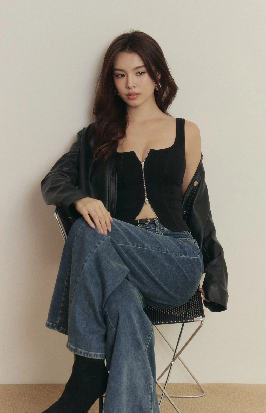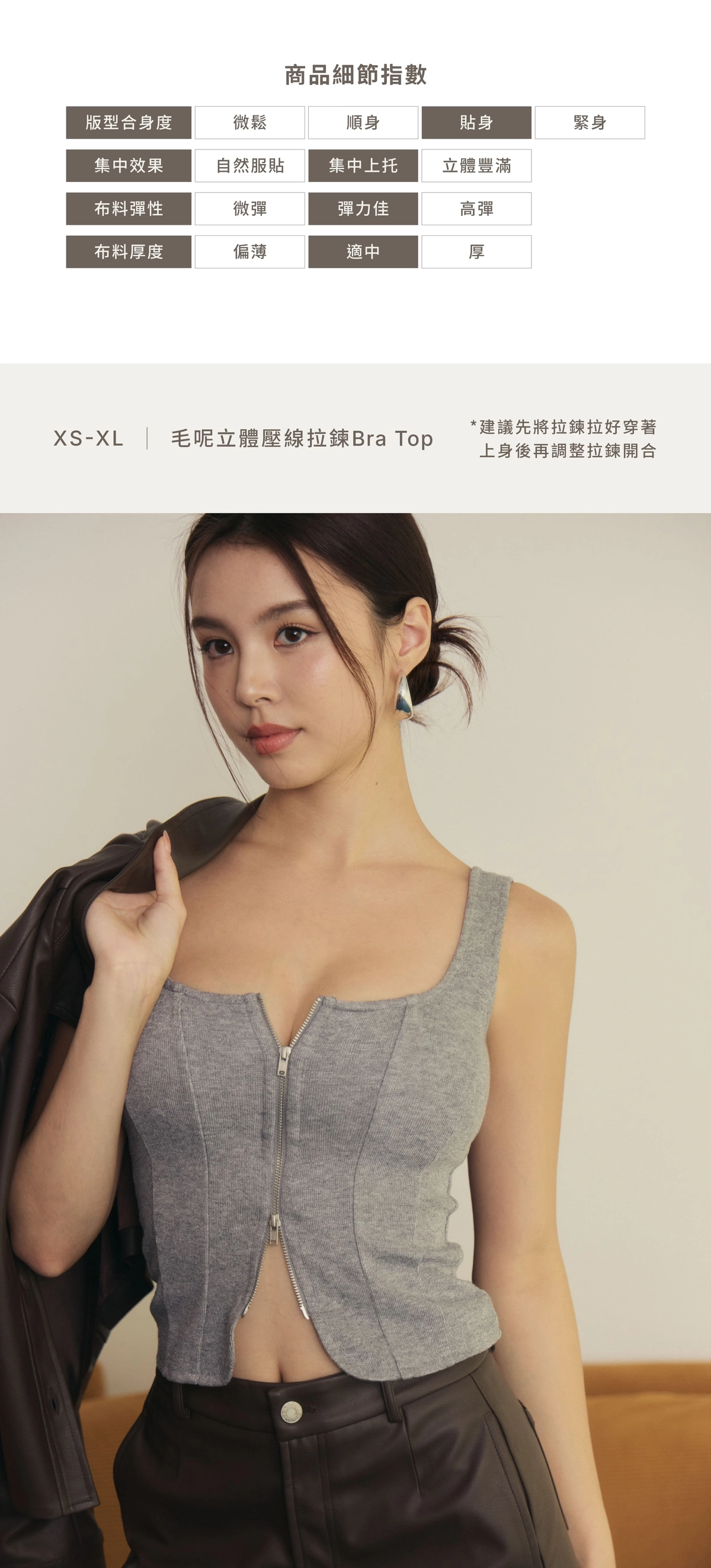 *需將拉鍊拉好穿著,上身後再調整拉鍊開合*