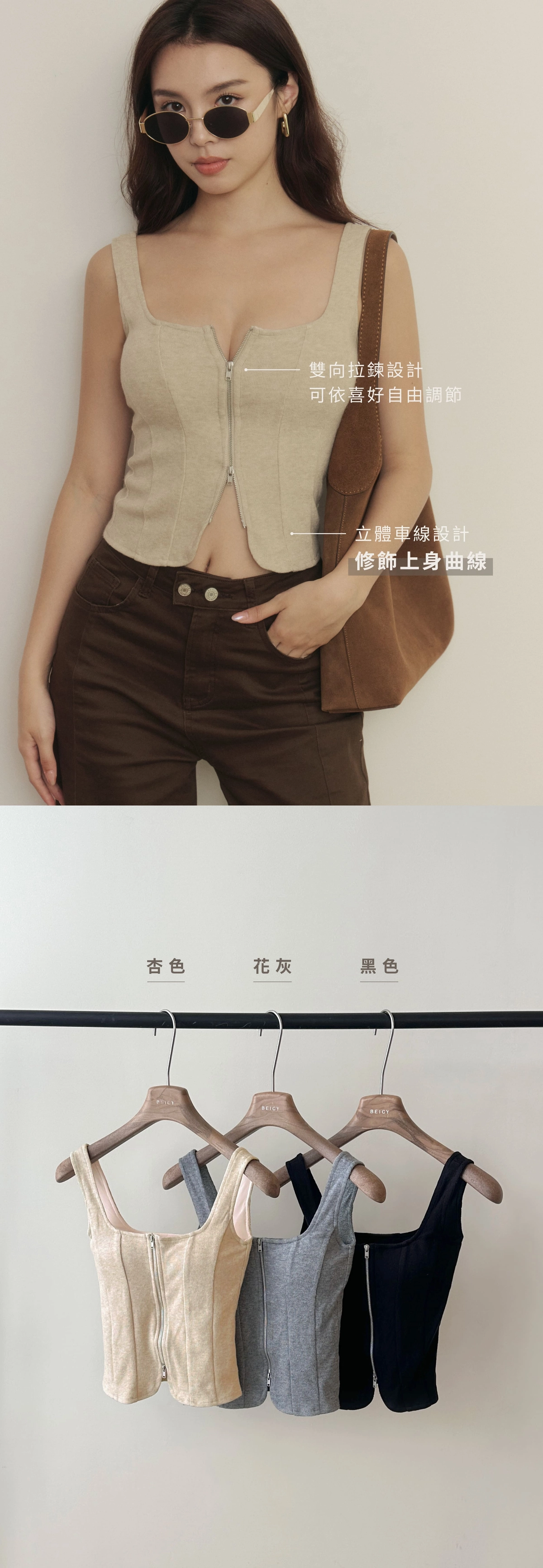 2.雙向拉鍊設計,可依喜好自由調節