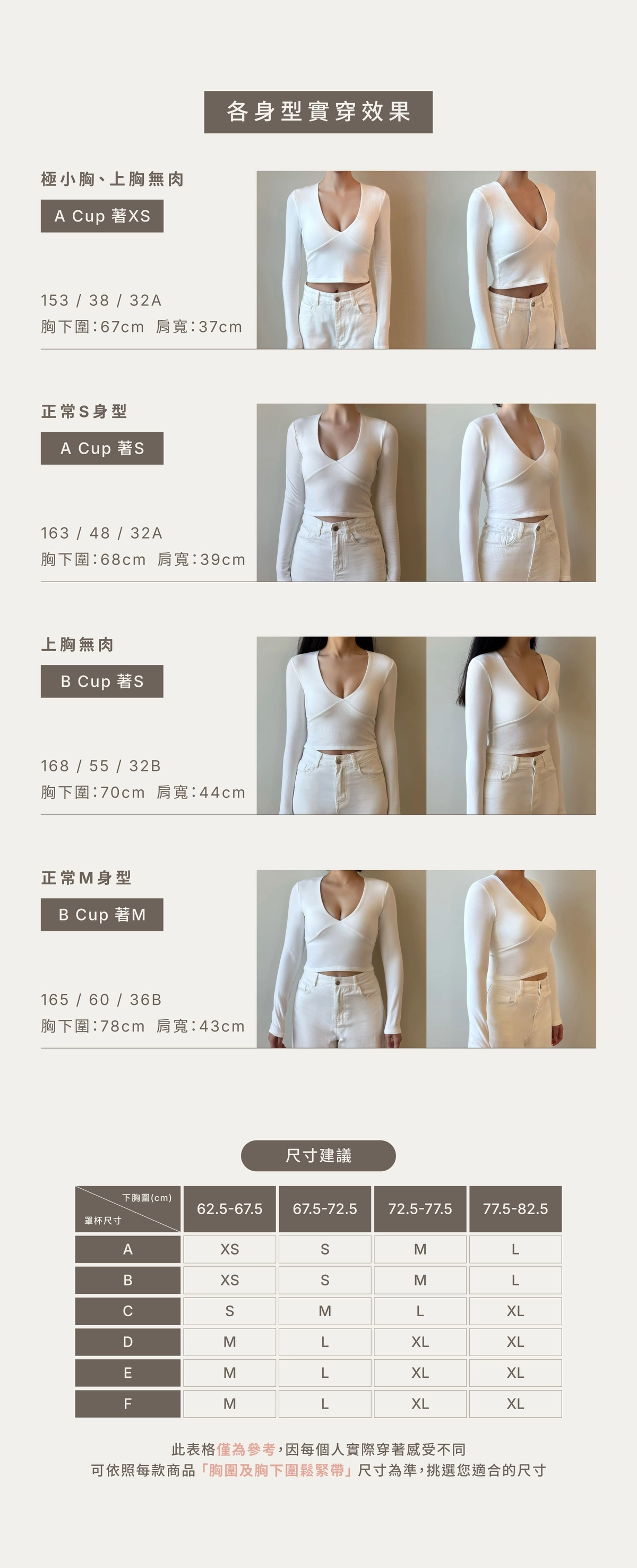 BRA TOP尺寸選購除了要參考罩杯外也需參考身高、體重