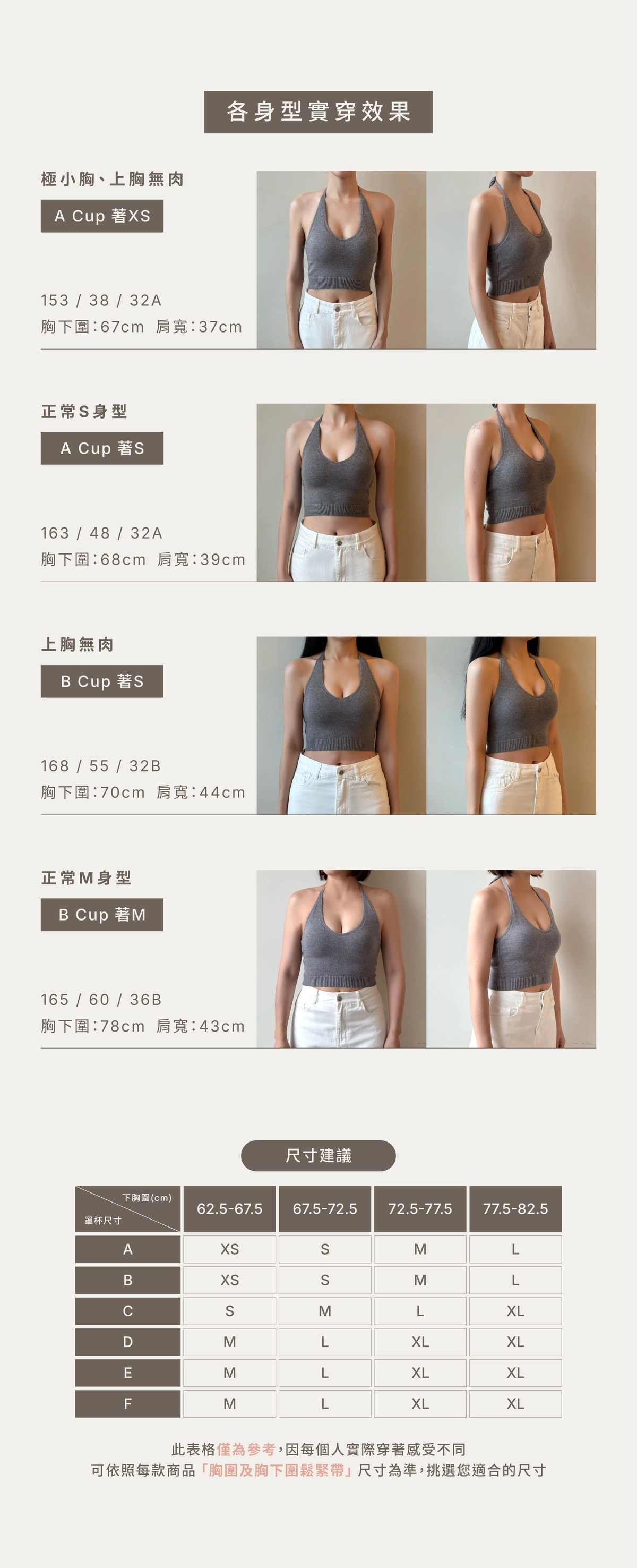 BRA TOP尺寸選購除了要參考罩杯外也需參考身高、體重