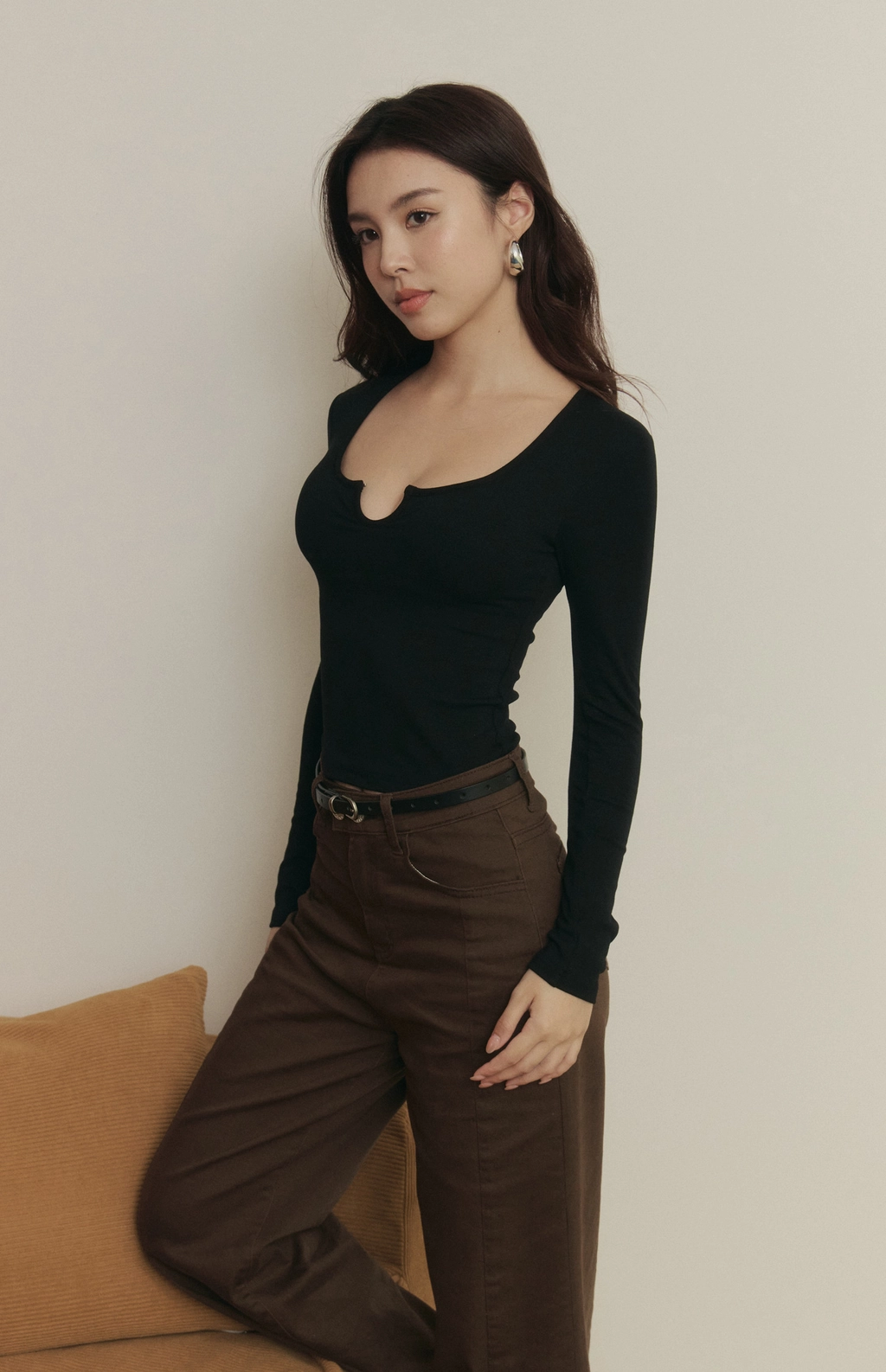 3.領口勾釦可自行調節開合,自由調整集中度