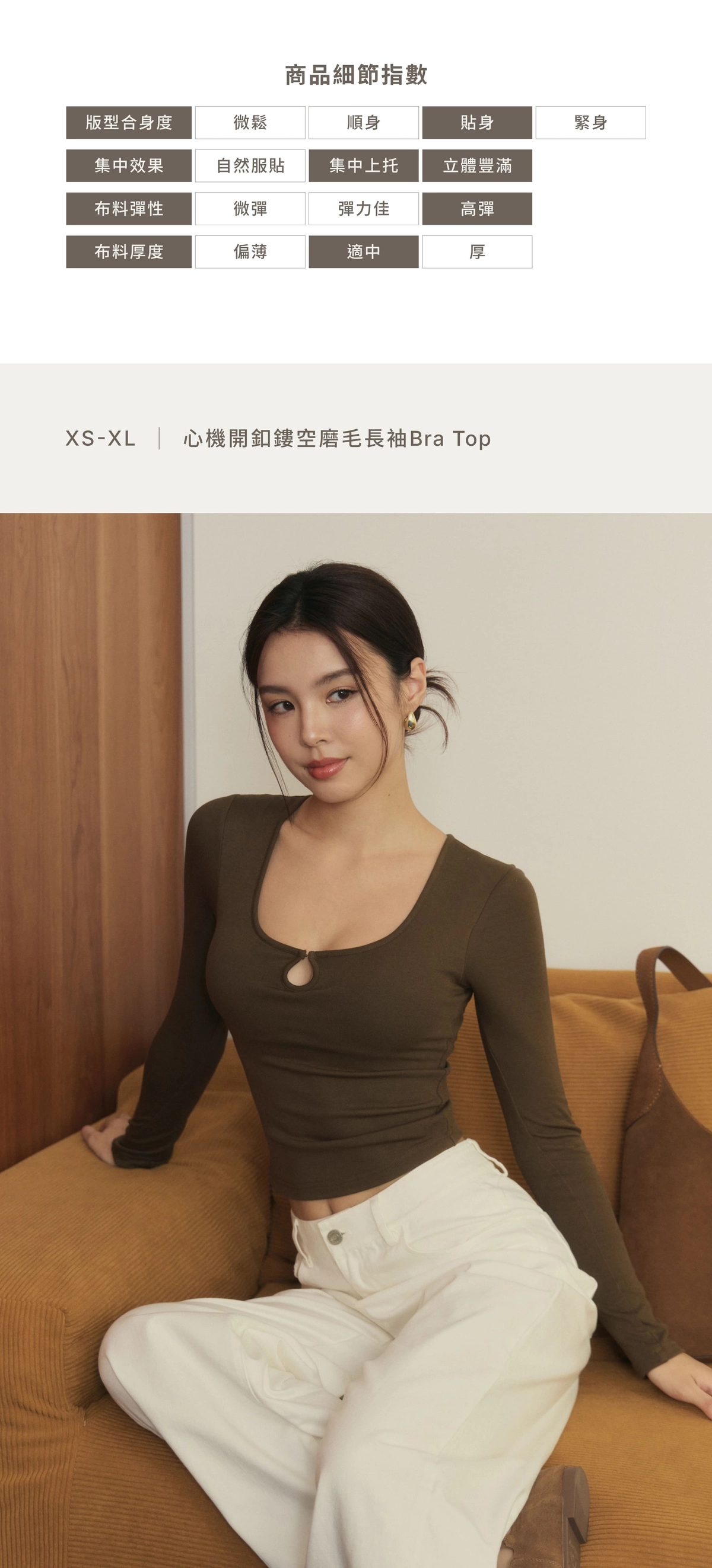 ▲為呈現胸型集中效果,本品牌版型較貼身。
