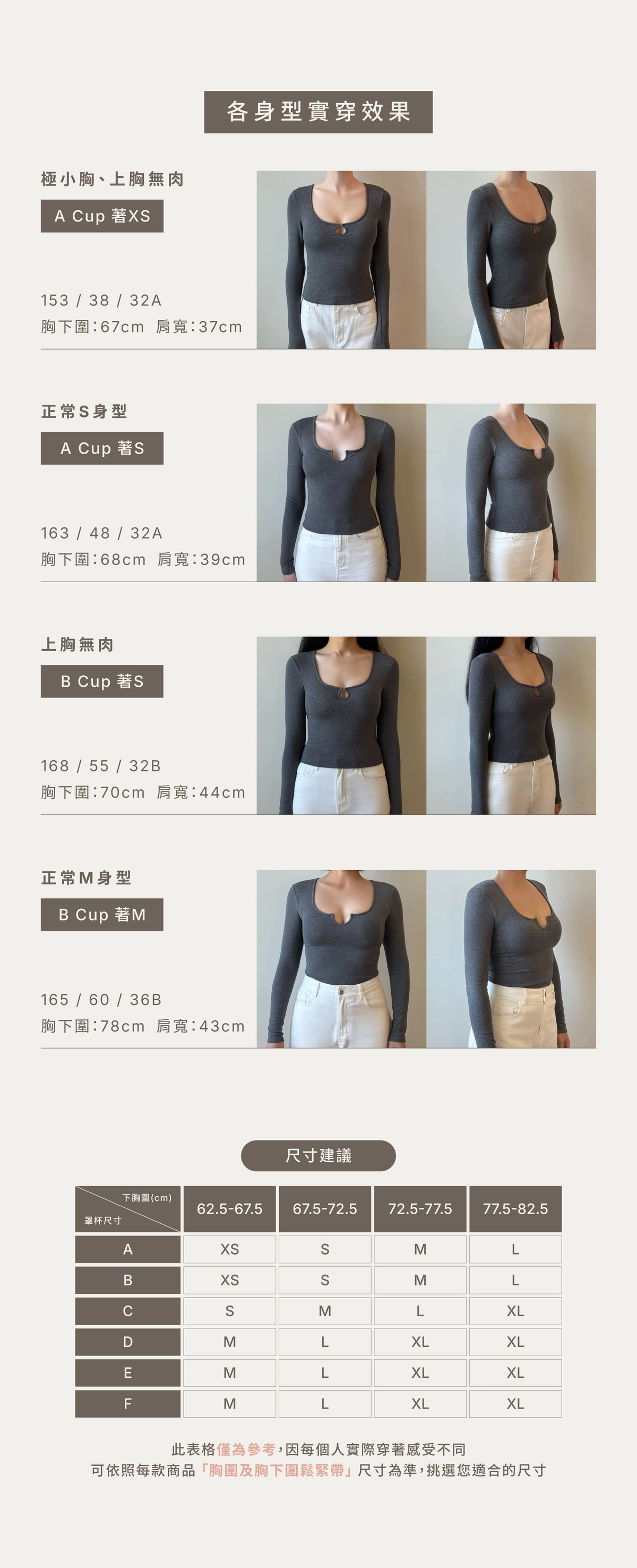 BRA TOP尺寸選購除了要參考罩杯外也需參考身高、體重