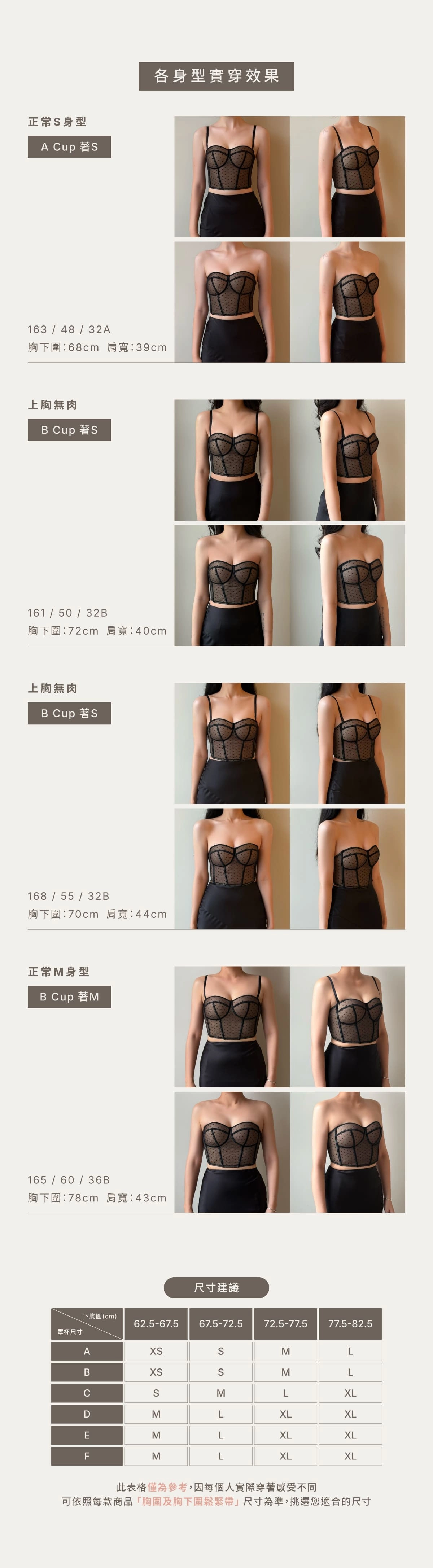 BRA TOP尺寸選購除了要參考罩杯外也需參考身高、體重