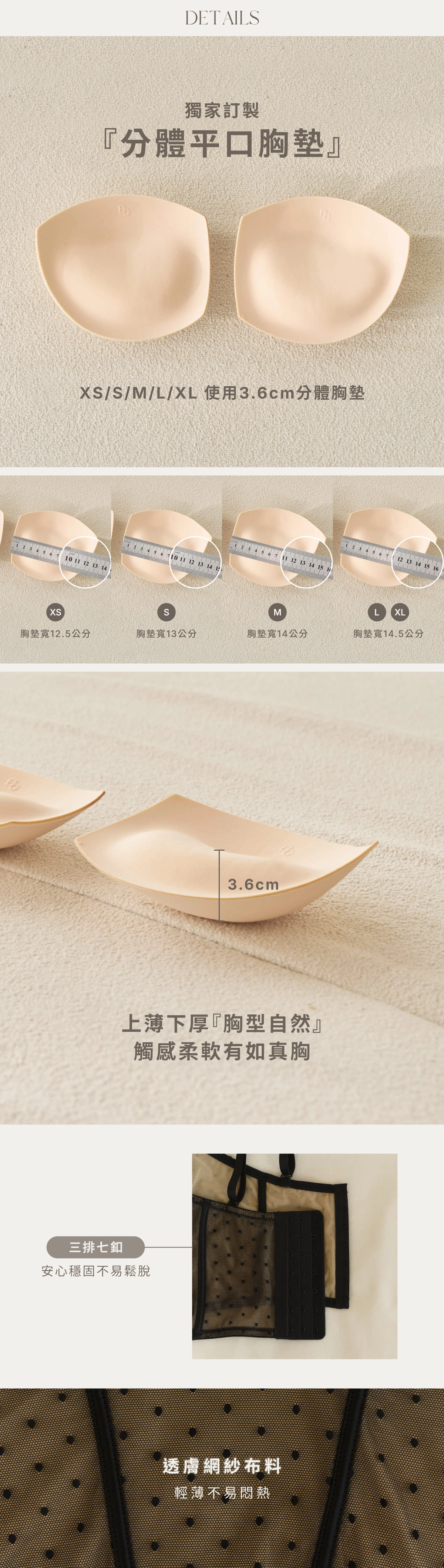 XS-XL貝橘獨家打版3.6cm分體平口胸墊