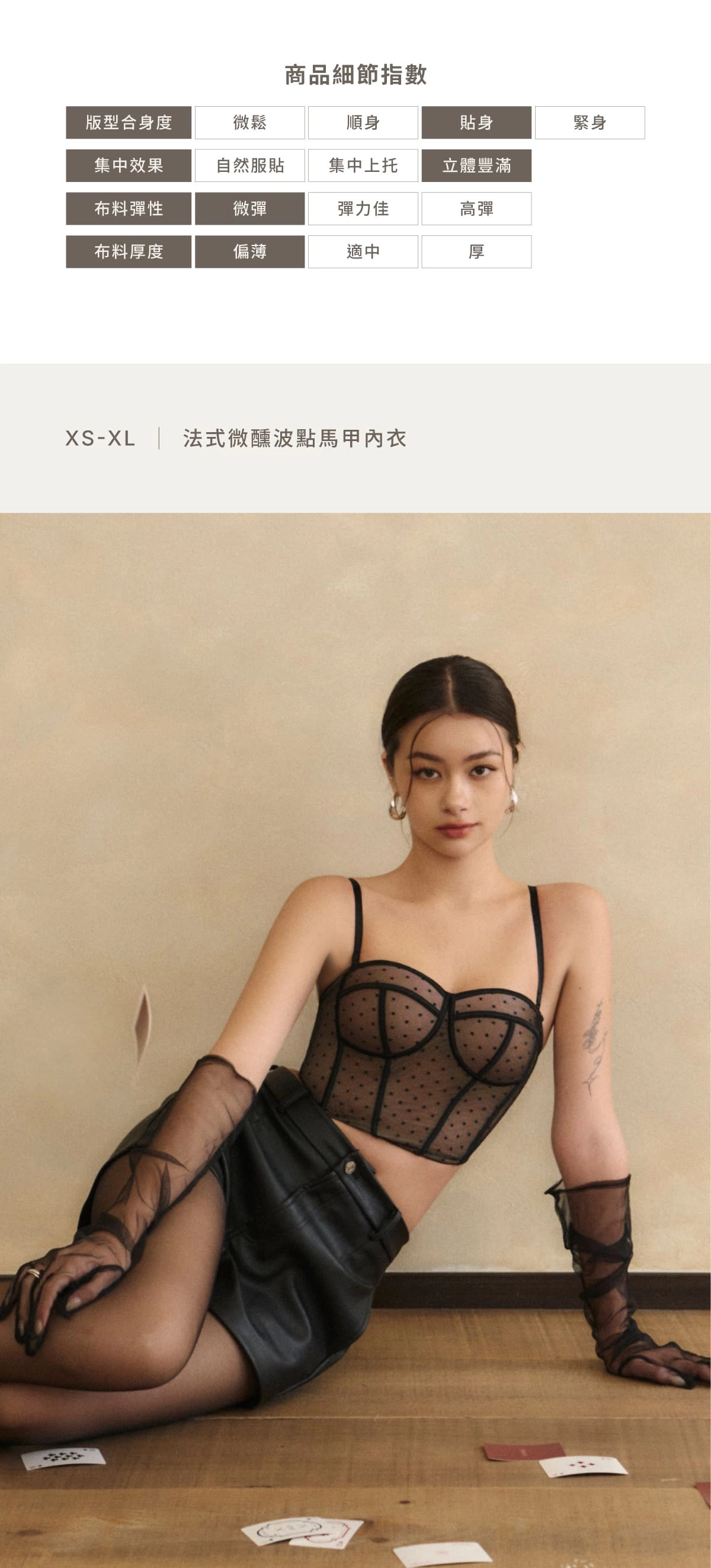 5.立體壓線修飾胸型與上身比例,呈現復古感