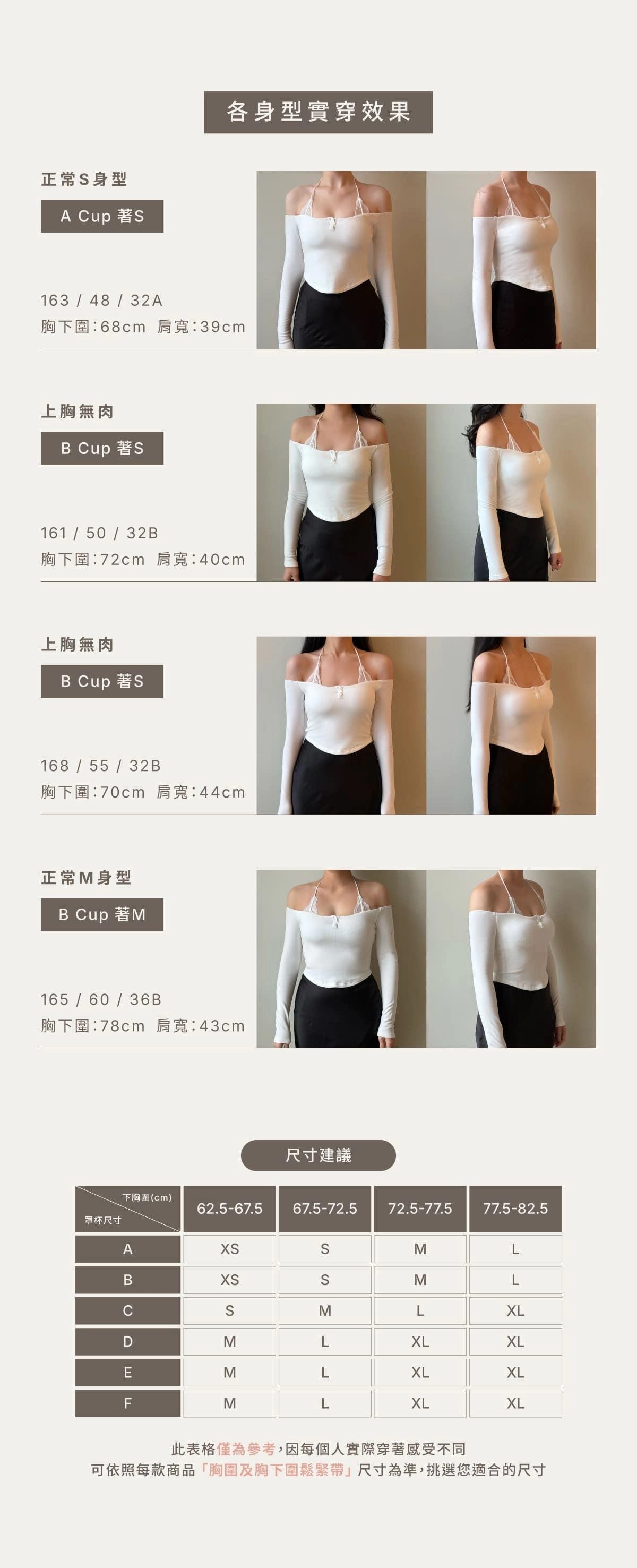 BRA TOP尺寸選購除了要參考罩杯外也需參考身高、體重