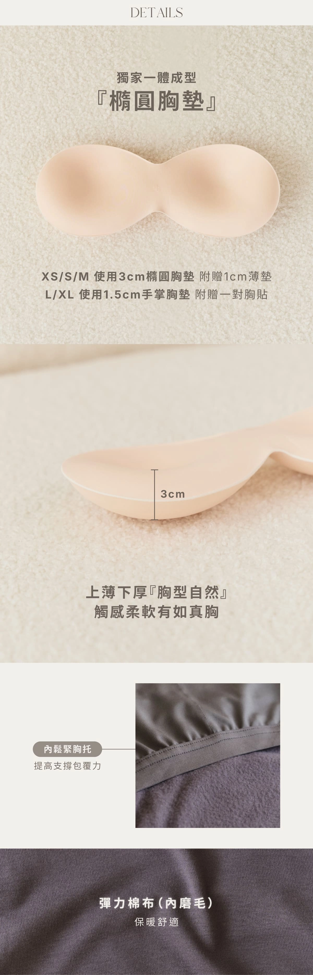 XS-M貝橘獨家打版3cm.1cm橢圓胸墊