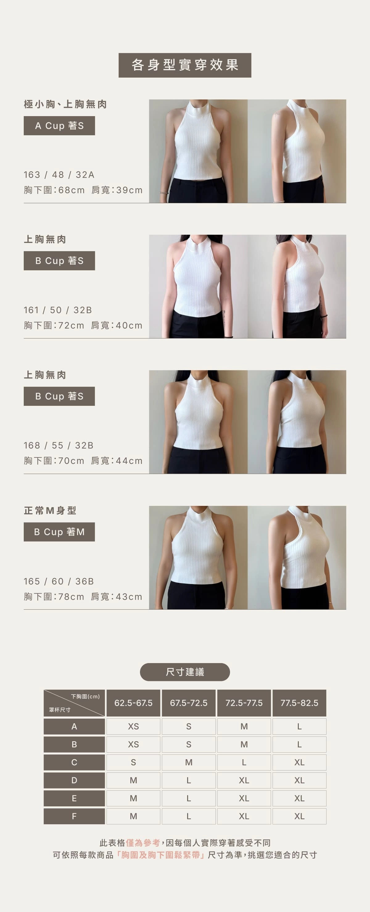 BRA TOP尺寸選購除了要參考罩杯外也需參考身高、體重